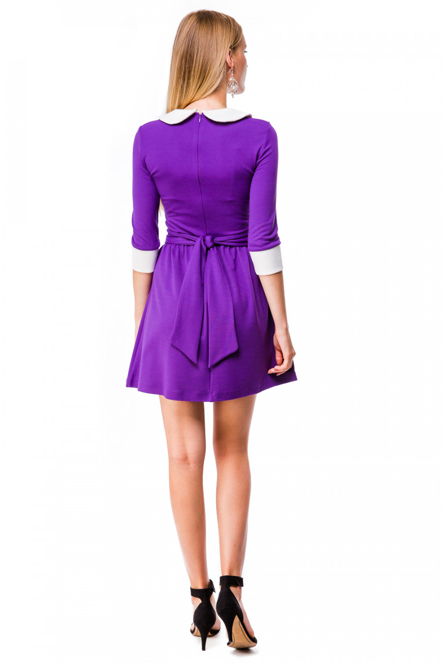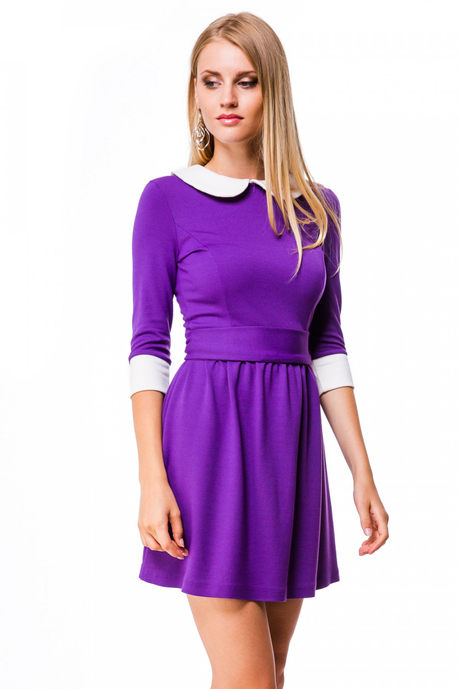Стильное платье в классическом стиле органично впишется в повседневный гардероб. Модель с округлым вырезом горловины и отложным воротником. Рукава 3/4. Юбка модели отрезная от линии талии, расклешенная с небольшими сборками. Длина изделия выше колена. Ворот и манжеты оформлены в контрастном цвете. Модель дополнена широким поясом и застежкой на молнию. Станет замечательным дополнением к Вашему гардеробу.