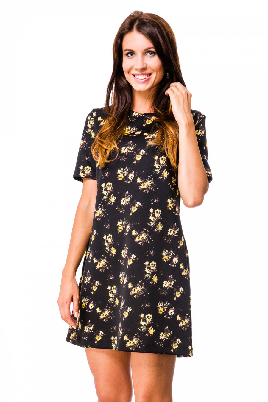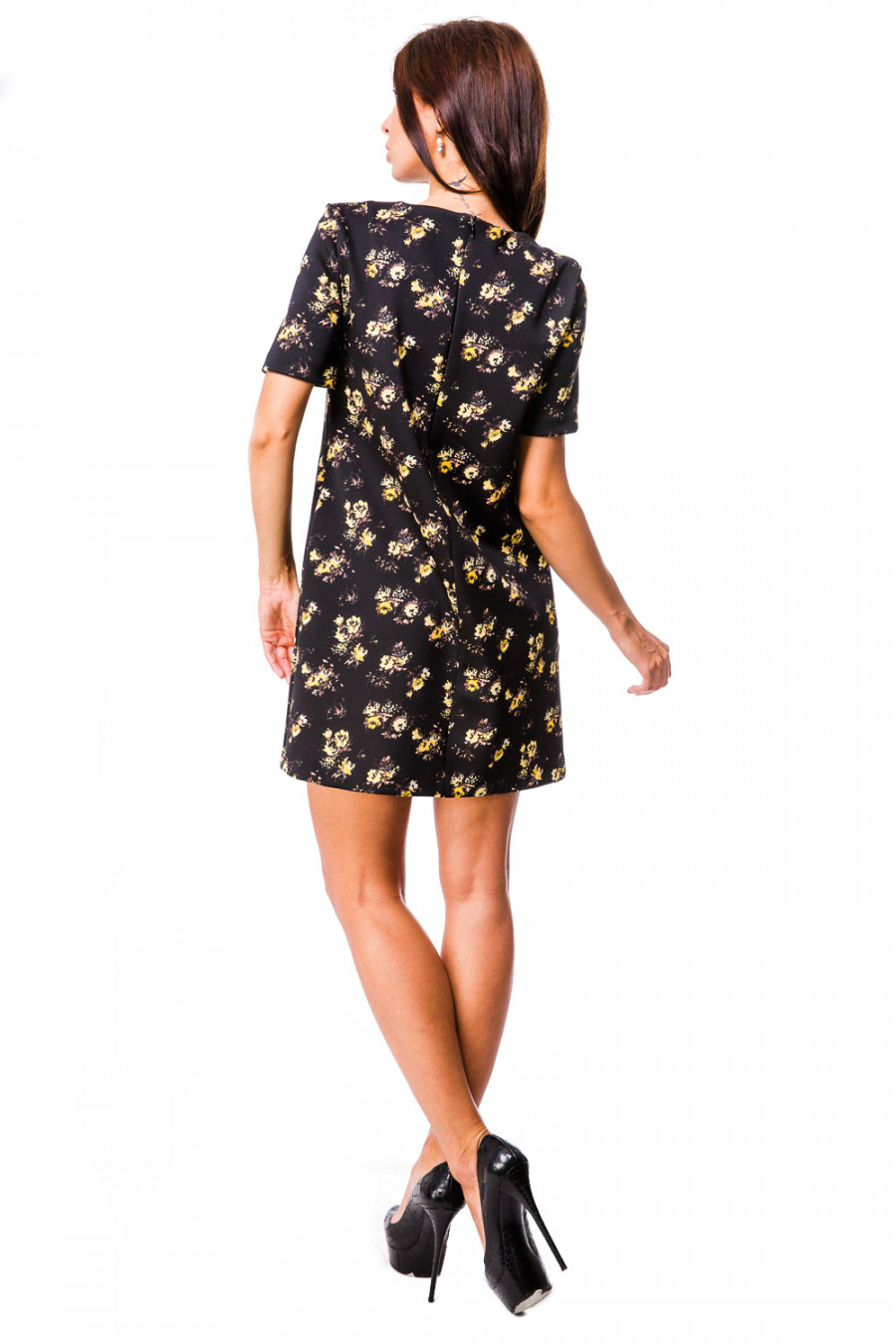 Стильное платье с округлым вырезом горловины и короткими рукавами. Модель прямого силуэта с боковыми карманами, выполнена из качественного материала и украшена оригинальным принтом. Длина изделия выше колена. Лаконичный и изысканный дизайн модели непременно придется Вам по вкусу. Великолепный выбор на любой случай.