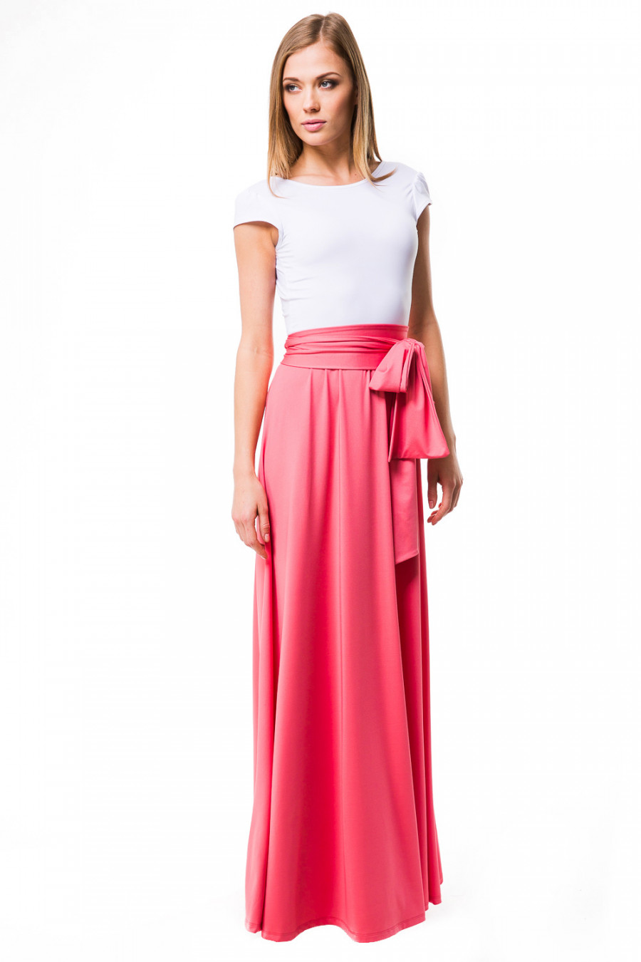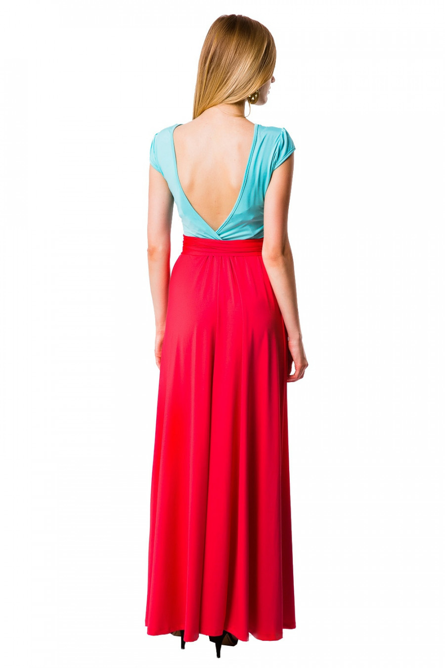 Эффектное платье в пол в коротким рукавом. Модель с округлым вырезом горловины и глубоким вырезом в виде треугольника на спине. Длинное платье выполнено из приятной струящейся ткани высококачественного полотна микрофибры. На талии модель украшена изящным пояском. Платье выполнено в сочетании двух цветов. Изысканный наряд создаст обворожительный неповторимый образ. Приталенный силуэт подчеркивает стройность фигуры.