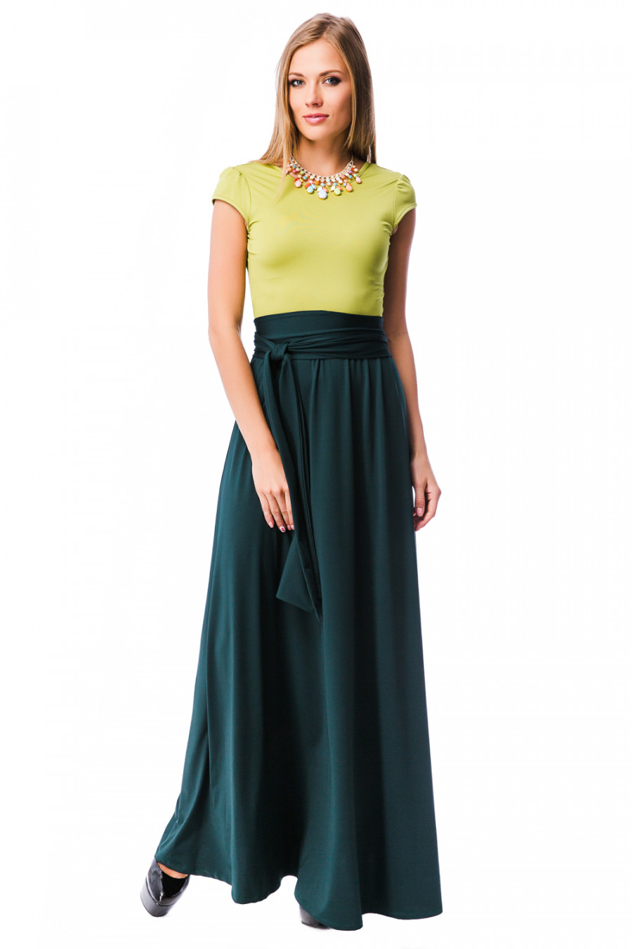 Эффектное платье в пол в коротким рукавом. Модель с округлым вырезом горловины и глубоким вырезом в виде треугольника на спине. Длинное платье выполнено из приятной струящейся ткани высококачественного полотна микрофибры. На талии модель украшена изящным пояском. Платье выполнено в сочетании двух цветов. Изысканный наряд создаст обворожительный неповторимый образ. Приталенный силуэт подчеркивает стройность фигуры.