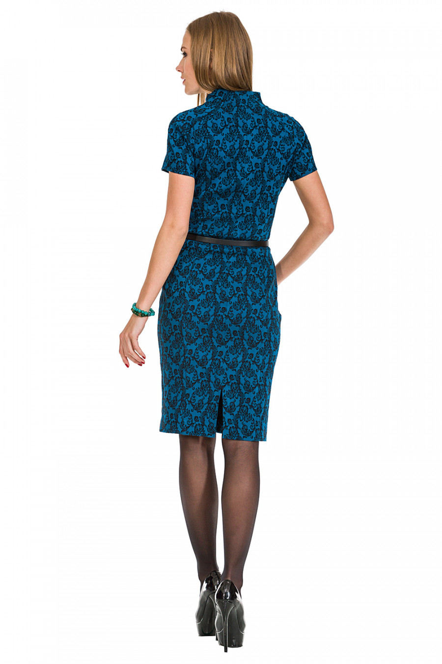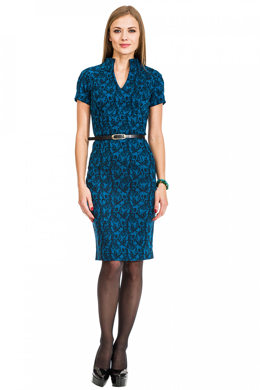 Элегантное платье с коротким рукавом. Платье приталенного силуэта, ворот модели оформлен стойкой и V-образным вырезом. Сзади модель дополнена небольшим разрезом. Выполнено изделие из структурной эластичной ткани с оригинальным объёмным принтом. Платье прекрасно тянется. Актуальный выбор как для праздника, так и на каждый день.