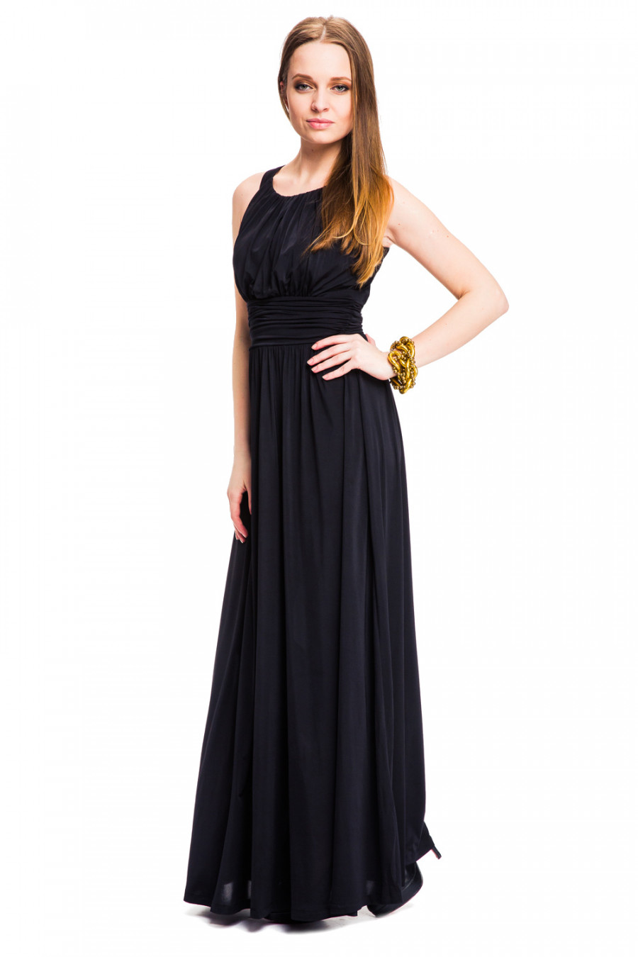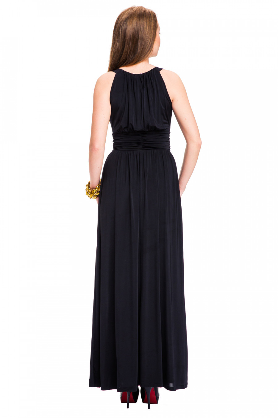 Длинное летнее платье, выполненное в оригинальном дизайне. Модель без рукавов приталенного покроя. Верхняя часть до линии талии драпирована мелкими складками, на талии широкая вставка-имитация пояса, также декорированная складками. Нижняя часть- юбка в пол. Модель выполнена из качественного струящегося материала. Изящная и нарядная модель для создания женственного образа.