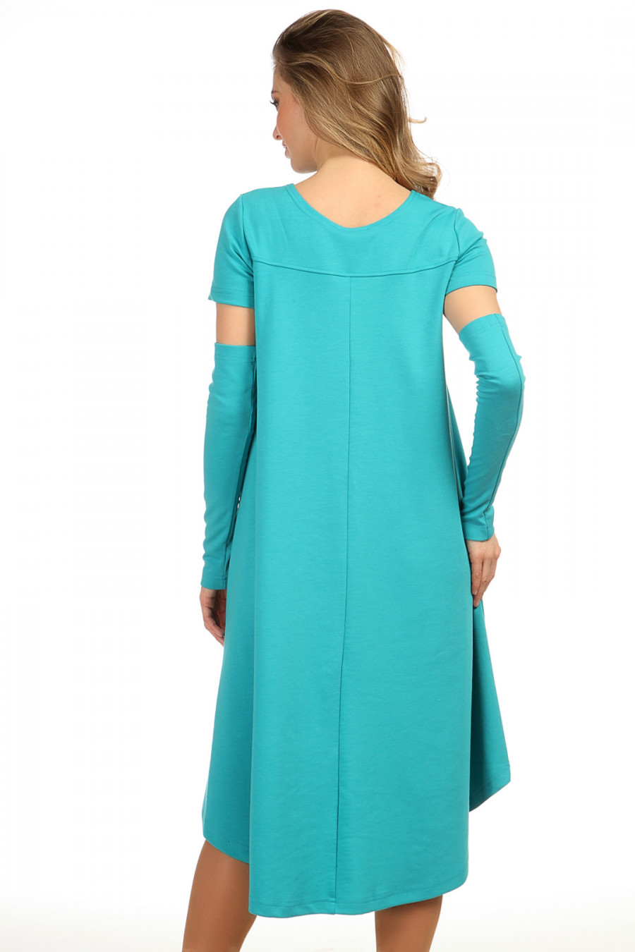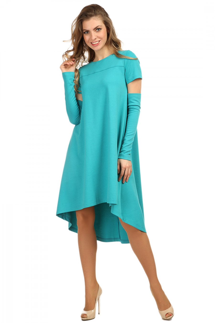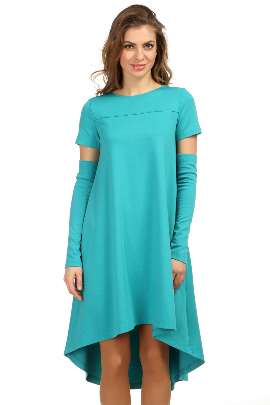 Легкое трикотажное платье с коротким рукавом свободного покроя.