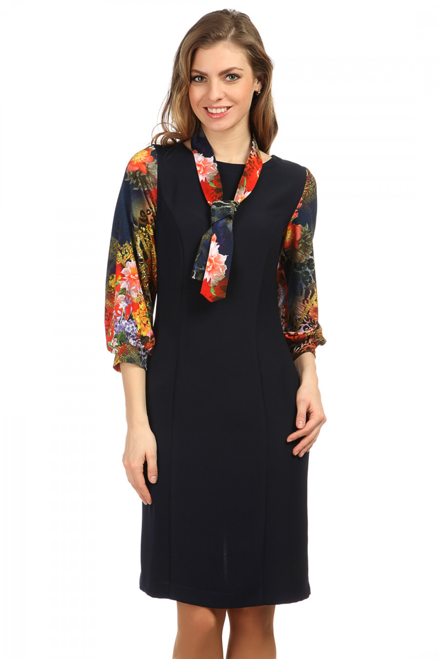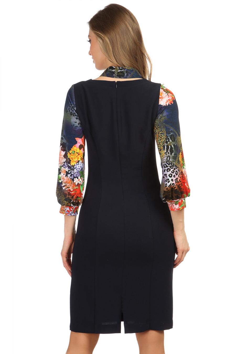 Оригинальное деловое платье с рукавом-фонарь 3/4.