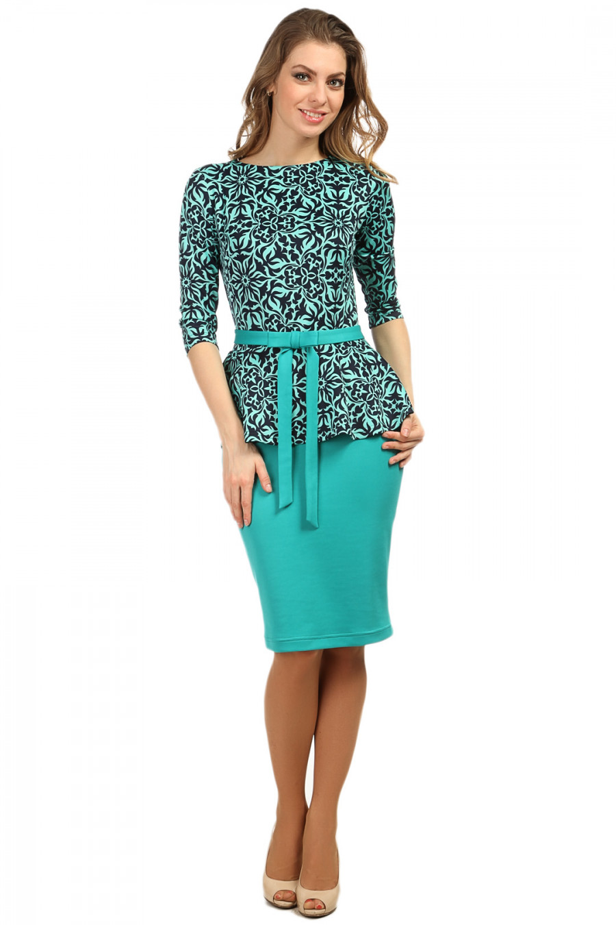 Платье, комбинированное из двух разных тканей контрастных оттенков. Имитация двойки: удлиненный жилет выполнен из плотного простеганного трикотажа , низ платья, рукава и съемный воротник- из мягкого струящегося.