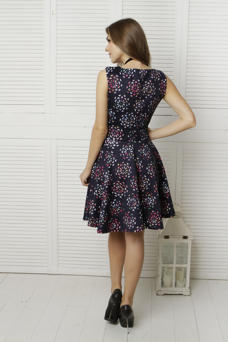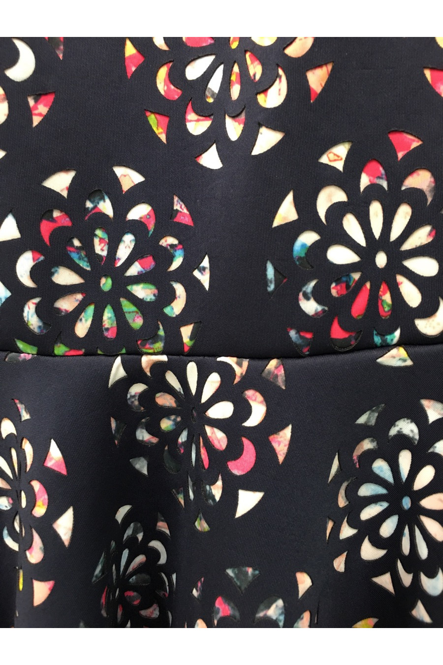 Платье из плотного трикотажа с перфорированным цветочным узором всегда выглядят очень необычно и современно. Отрезное по линии талии с расклешенной юбкой .Облегающий верх на подкладке из мягкого трикотажа , без застежки .