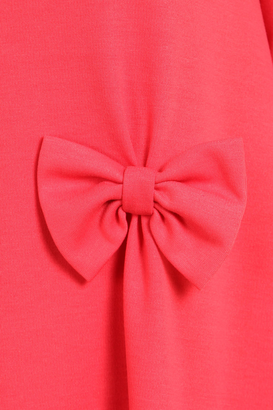 Платье свободного кроя с длинным рукавом. Спереди декорировано бантом.