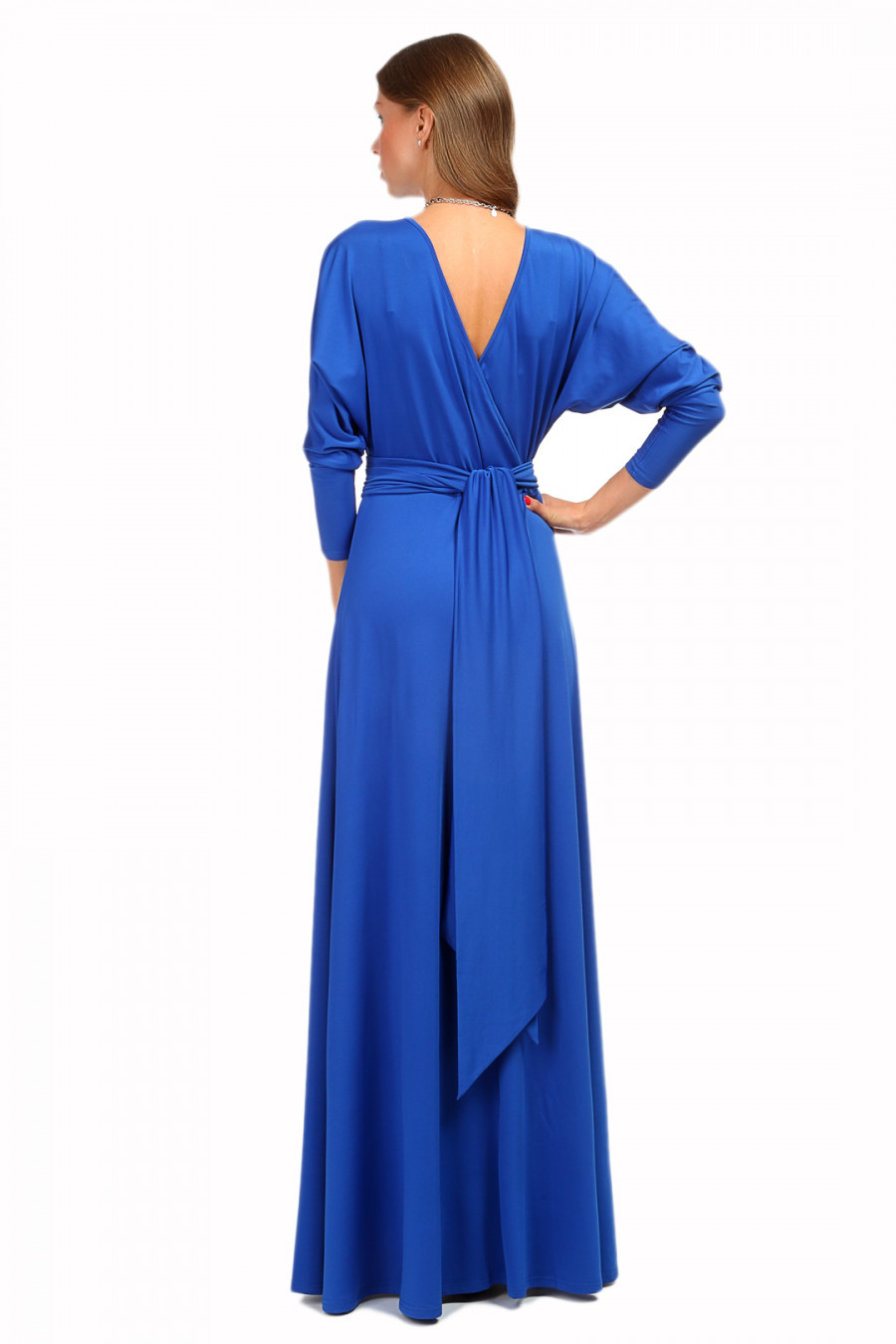 Вечернее платье из мягкой струящейся ткани делает ваш образ элегантным. Широкий пояс-шарф заостряет внимание на талии, свободный крой рукавов смягчает линию плеч, а глубокий треугольный вырез на спине подчеркнет королевскую осанку и придаст пикантности. Это платье гармонично можно дополнить изящными туфельками и бижутерией