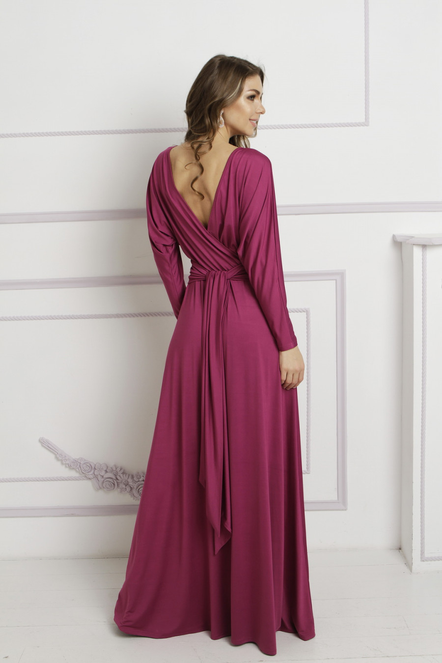 Вечернее платье из мягкой струящейся ткани делает ваш образ элегантным. Широкий пояс-шарф заостряет внимание на талии, свободный крой рукавов смягчает линию плеч, а глубокий треугольный вырез на спине подчеркнет королевскую осанку и придаст пикантности. Это платье гармонично можно дополнить изящными туфельками и бижутерией