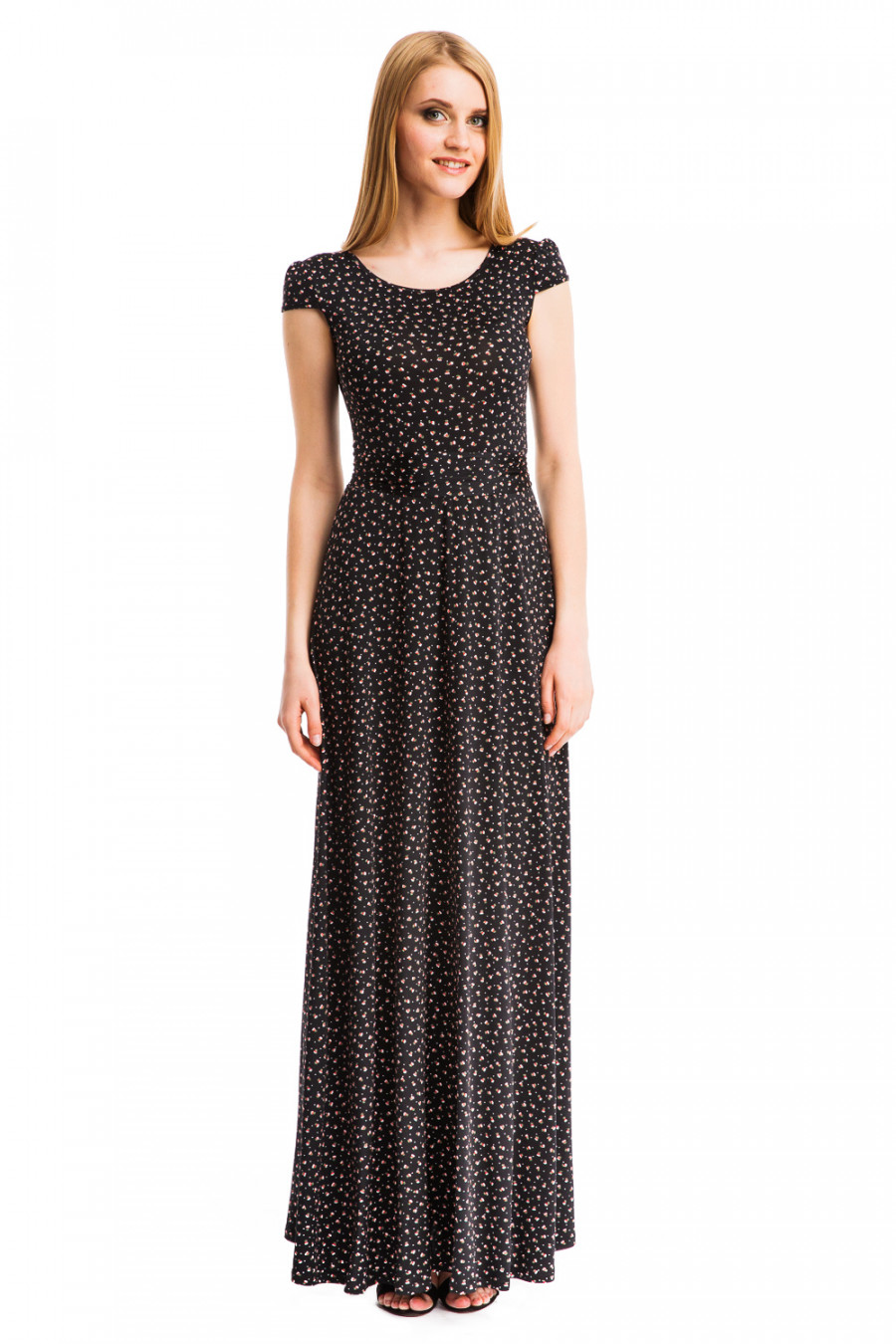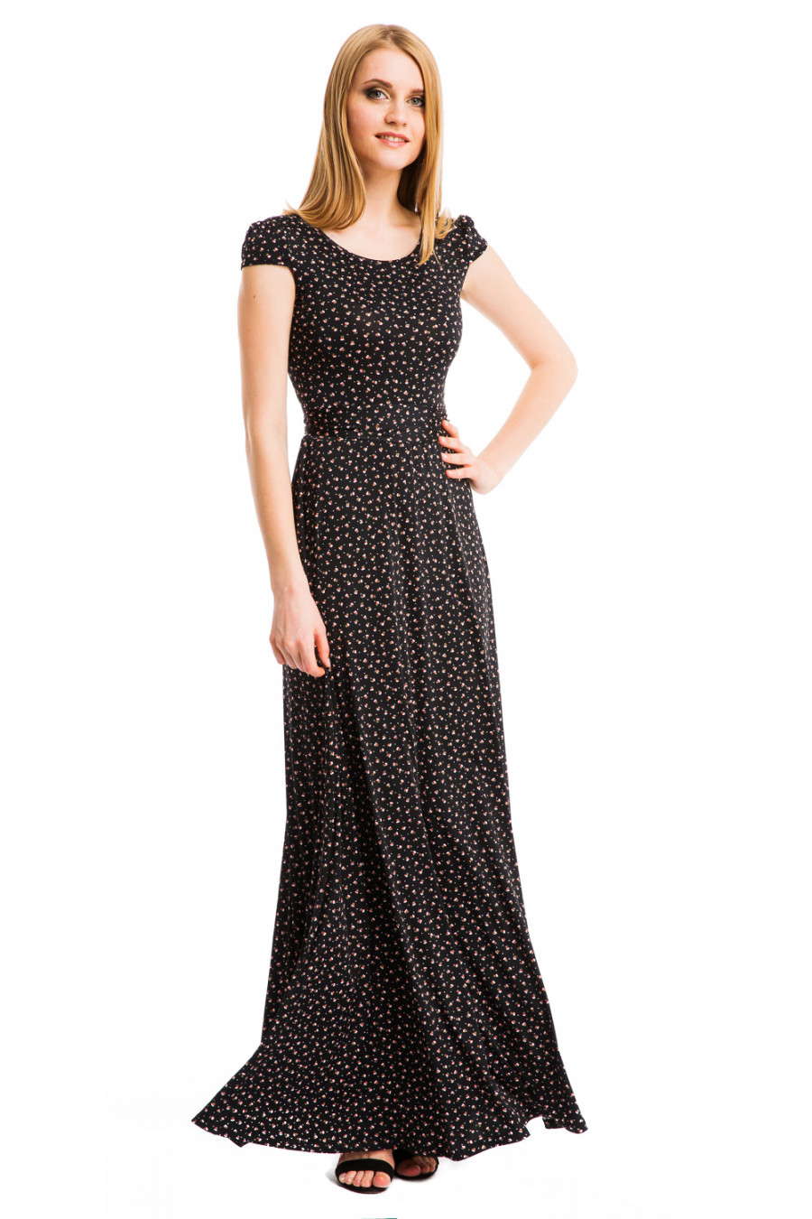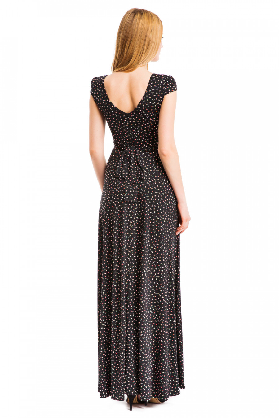 Нарядное платье в пол с коротким рукавом. Модель с округлым вырезом горловины и глубоким вырезом в виде треугольника на спине. Длинное платье выполнено из приятной струящейся ткани высококачественного полотна микрофибры. На талии модель украшена изящным пояском. Изысканный наряд создаст обворожительный неповторимый образ. Приталенный силуэт подчеркивает стройность фигуры.