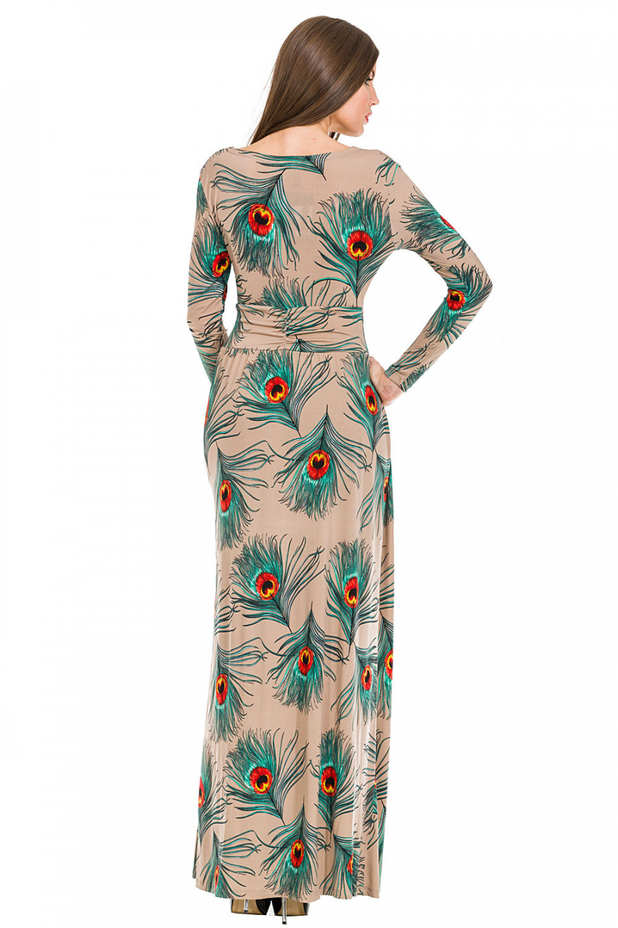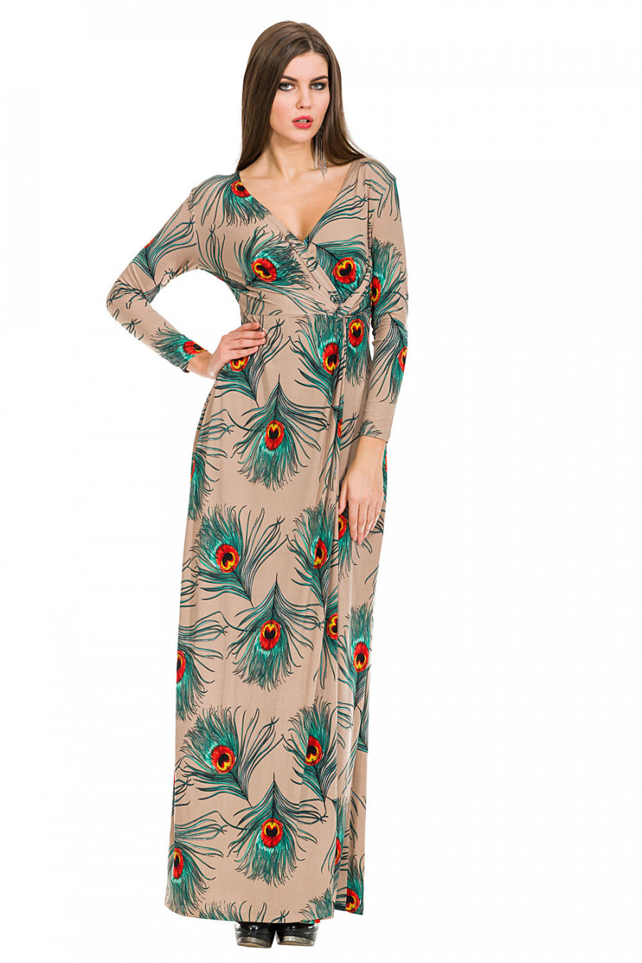 Изящное платье с длинным рукавом и V-образным вырезом горловины. Модель выполнена в оригинальном дизайне и украшена принтом , сбоку на линии талии платье украшено драпировкой. Главной деталью модели является разрез, который красиво оголяет ногу. Отличный способ создать женственный образ и подчеркнуть Вашу индивидуальность.