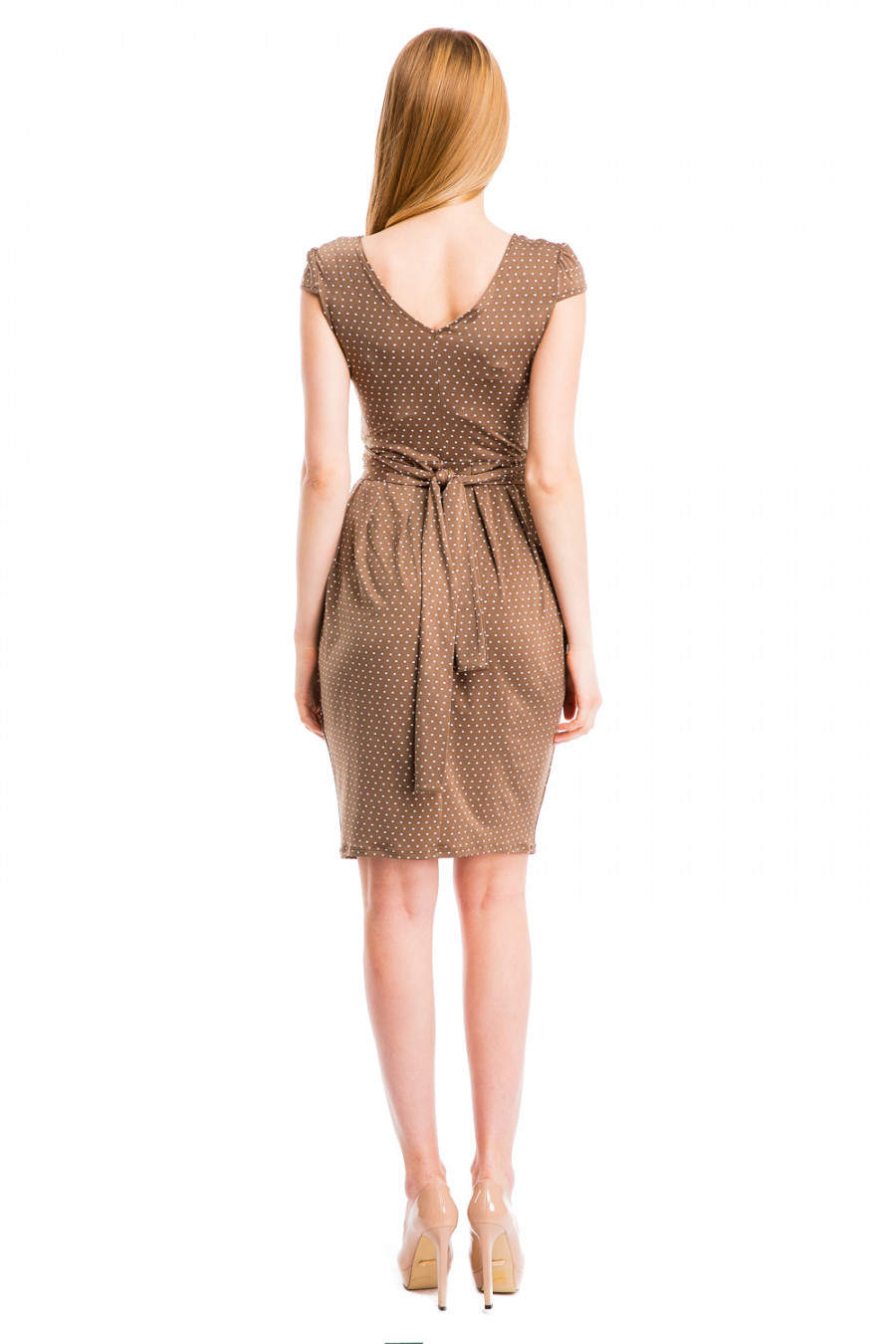 Оригинальная модель создаст утонченный образ. Прекрасное платье, оформленное очаровательным рисунком. Изделие с округлым вырезом горловины и короткими рукавами, на талии украшено аккуратным поясом. Приталенный силуэт и длина выгодно подчеркнут все достоинства Вашей фигуры. Модель станет замечательным дополнением к Вашему гардеробу.