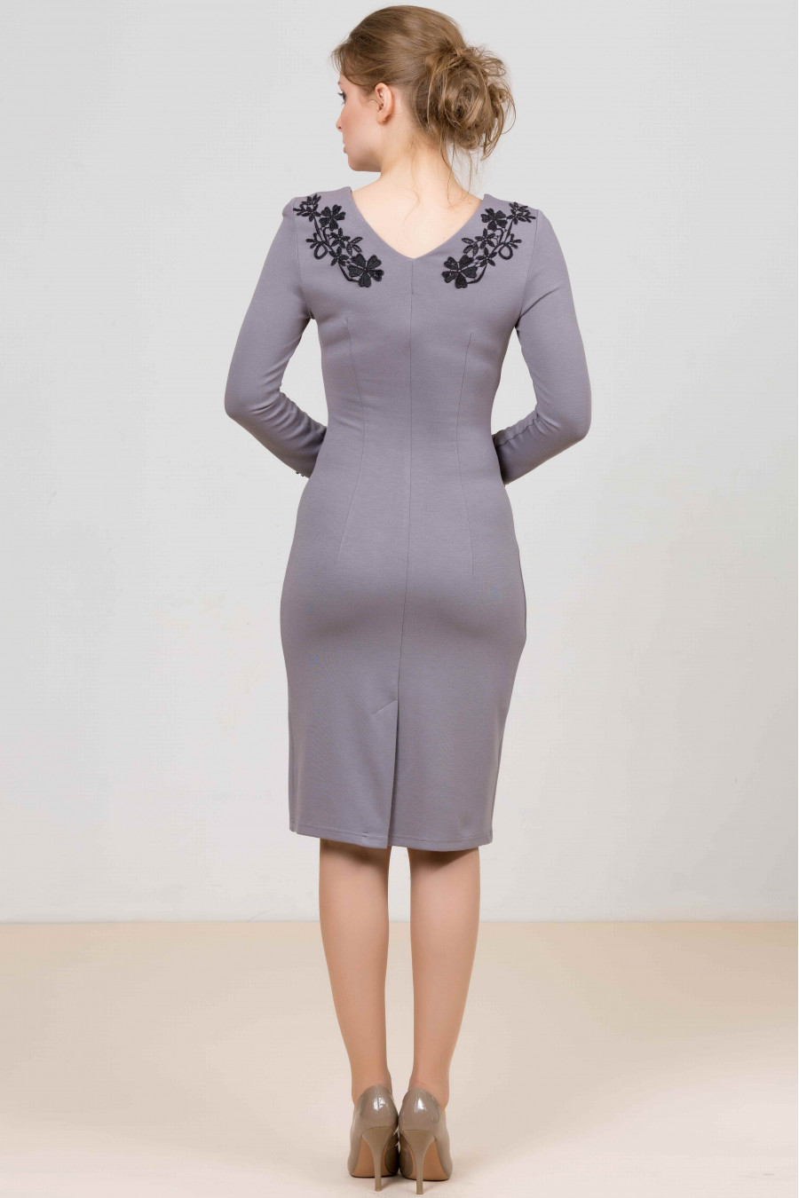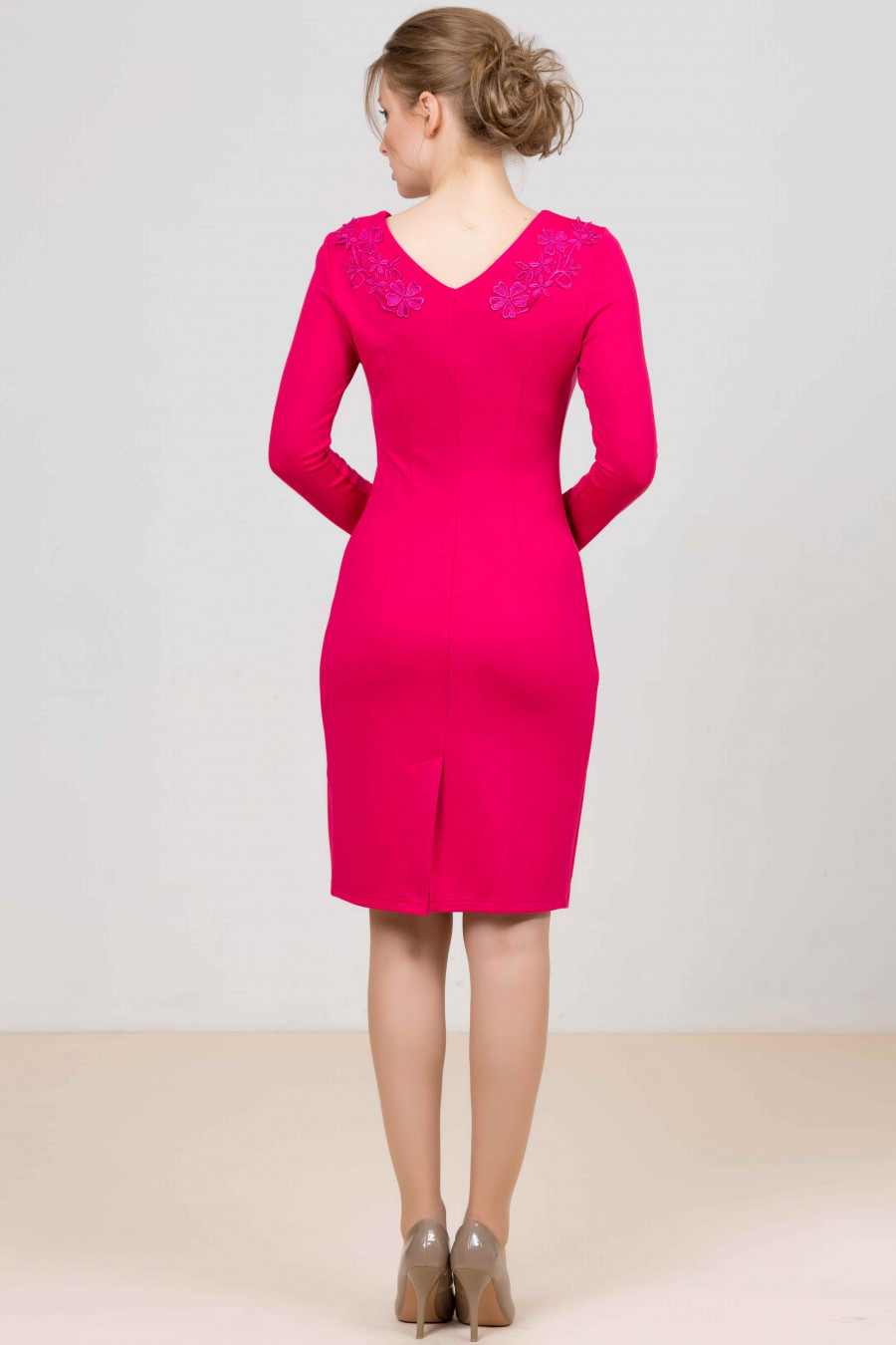 Платье облегающего покроя. Модель с длинными рукавами. Изделие украшено цветочным декором.