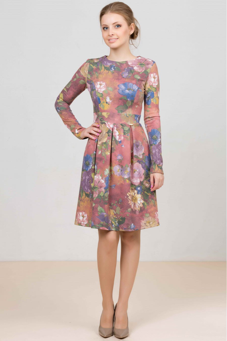 Прекрасное платье модного кроя. Модель выполнена из высококачественного материала приятной расцветки, оформленной рисунком. Отличный вариант для повседневного использования. Материал: джерси
