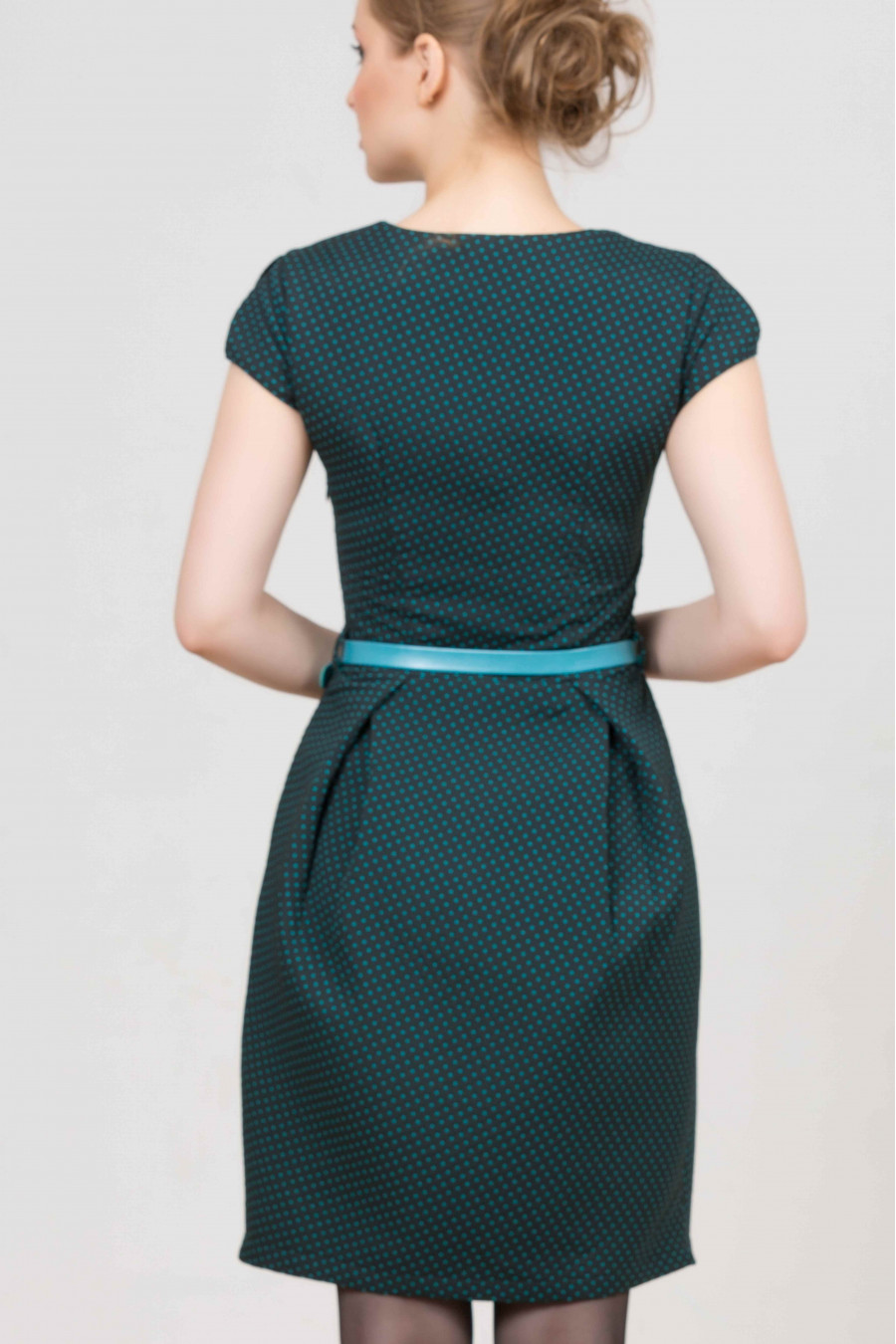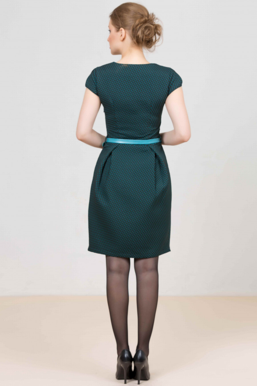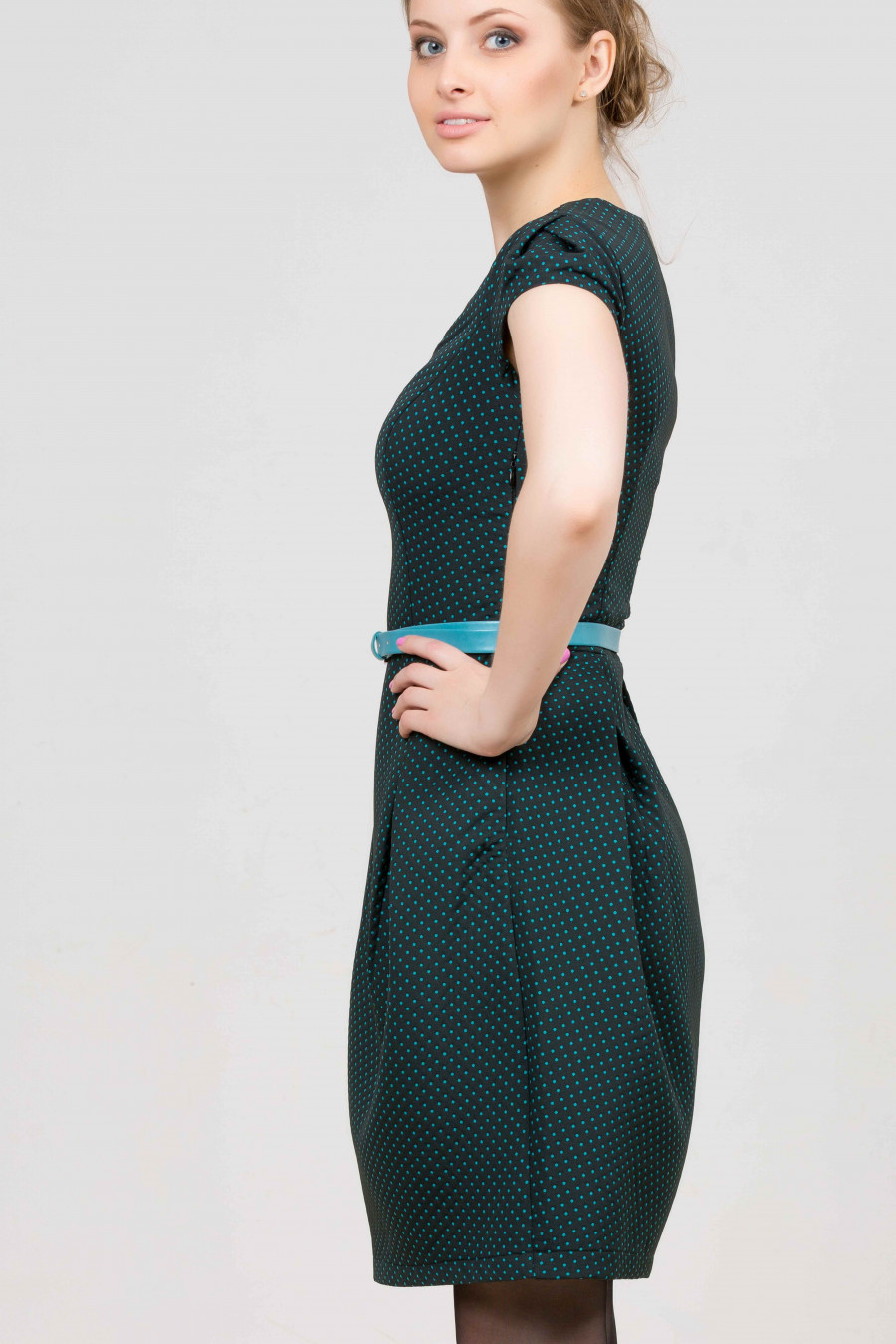 Привлекательное платье модного дизайна. Модель с короткими рукавами выполнена из ткани актуального цвета. Эта вещь станет прекрасной составляющей Вашего повседневного гардероба. Платье с ремнем. Материал: джерси