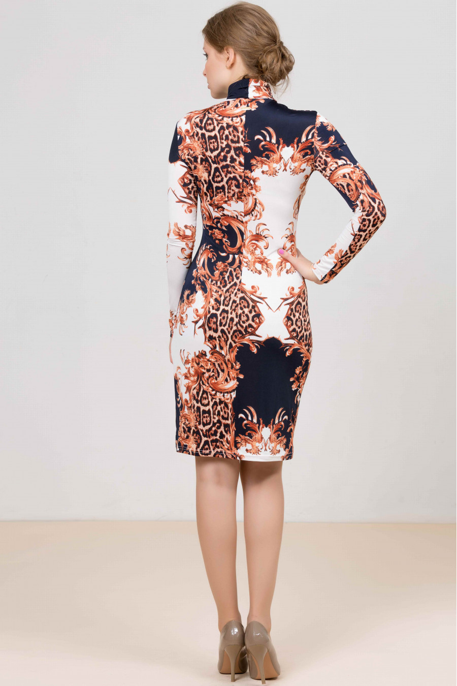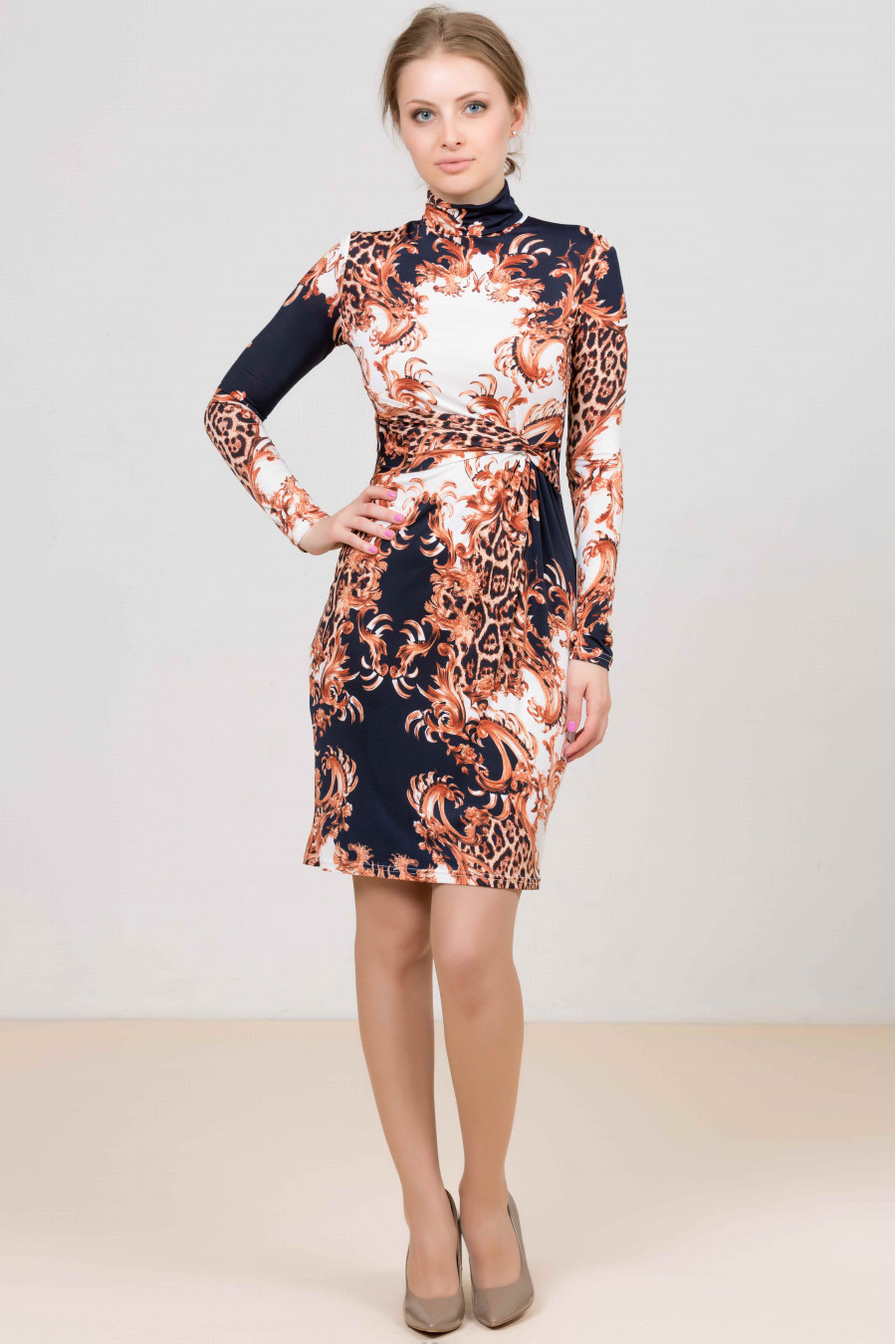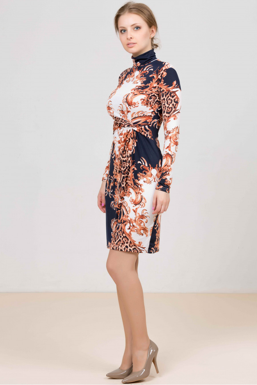 Превосходное платье эффектной контрастной расцветки. Модель с воротником ""гольф"". Отличное повседневное решение. Материал: венеция