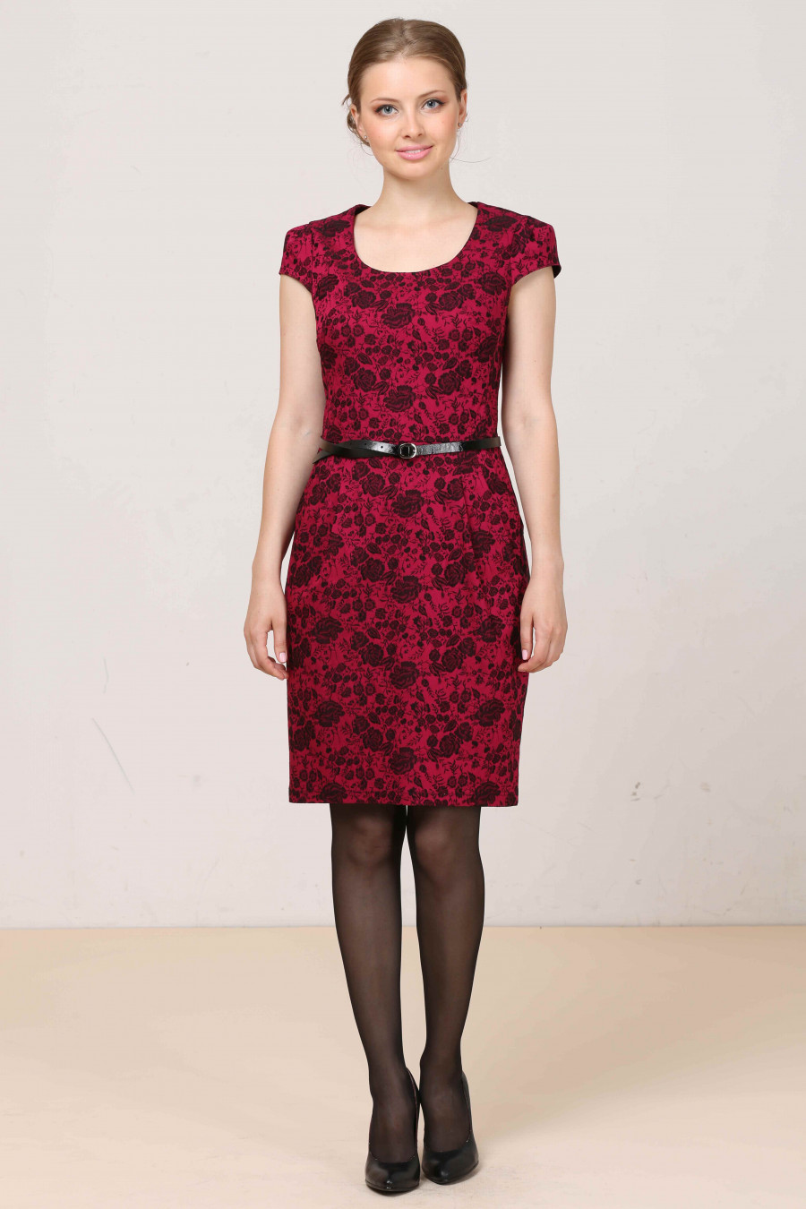 Платье с ремнем. Стильное платье с округлым вырезом горловины. Модель выполнена из качественного материала насыщенной расцветки. Отличный вариант на каждый день. Материал: жаккард