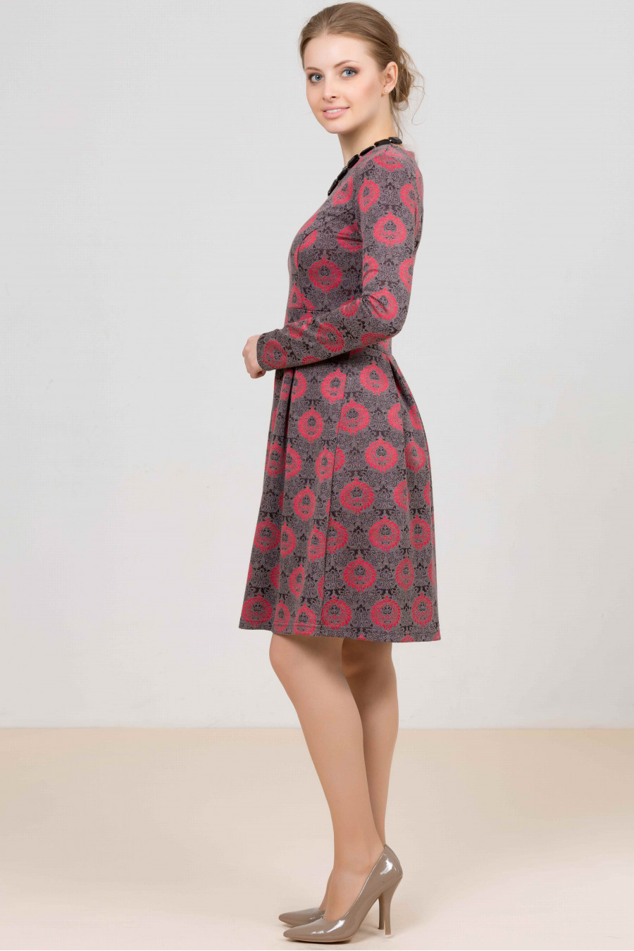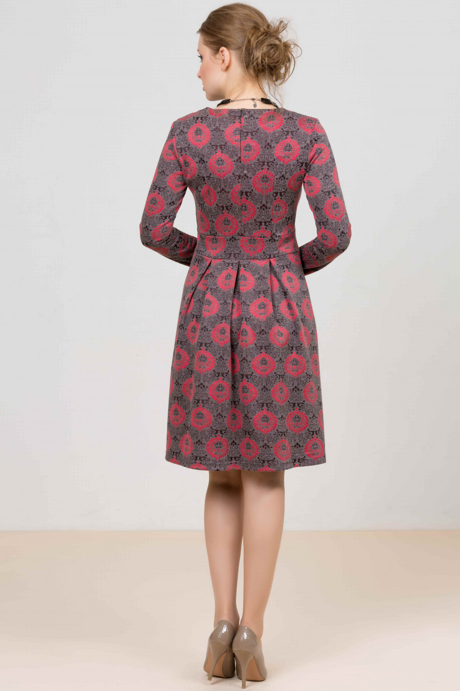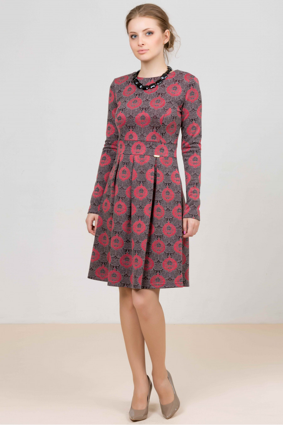 Прекрасная модель платья, украшенная актуальным цветочным рисунком. Приталенный силуэт выгодно подчеркнет достоинства фигуры.