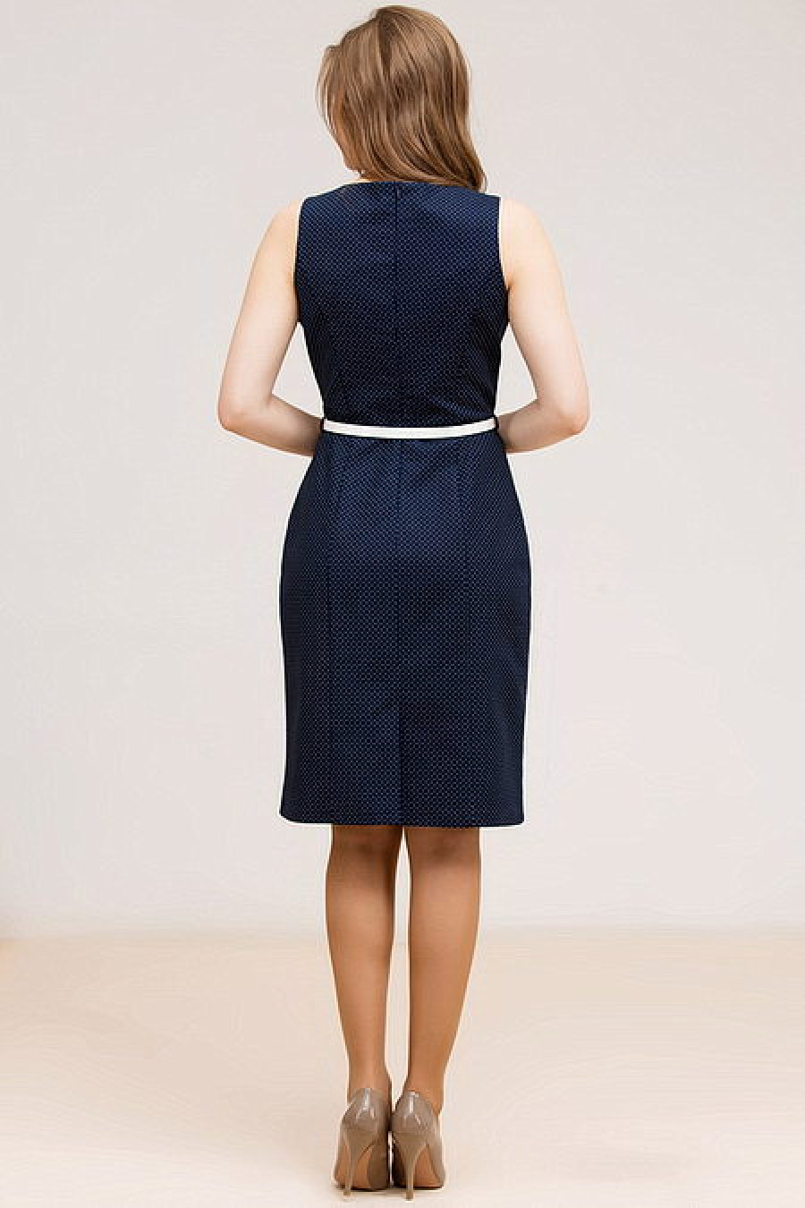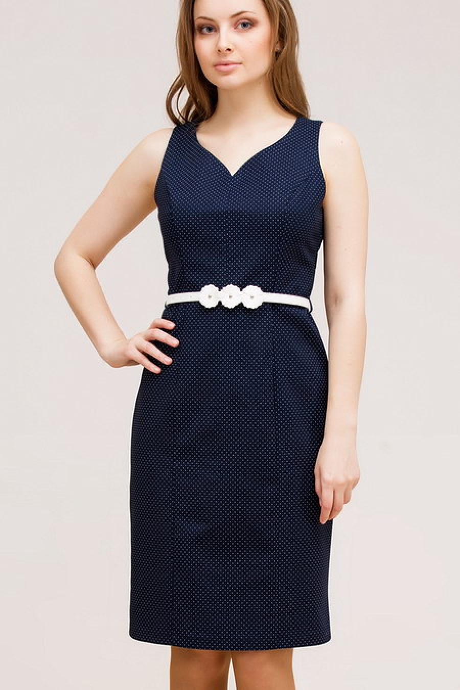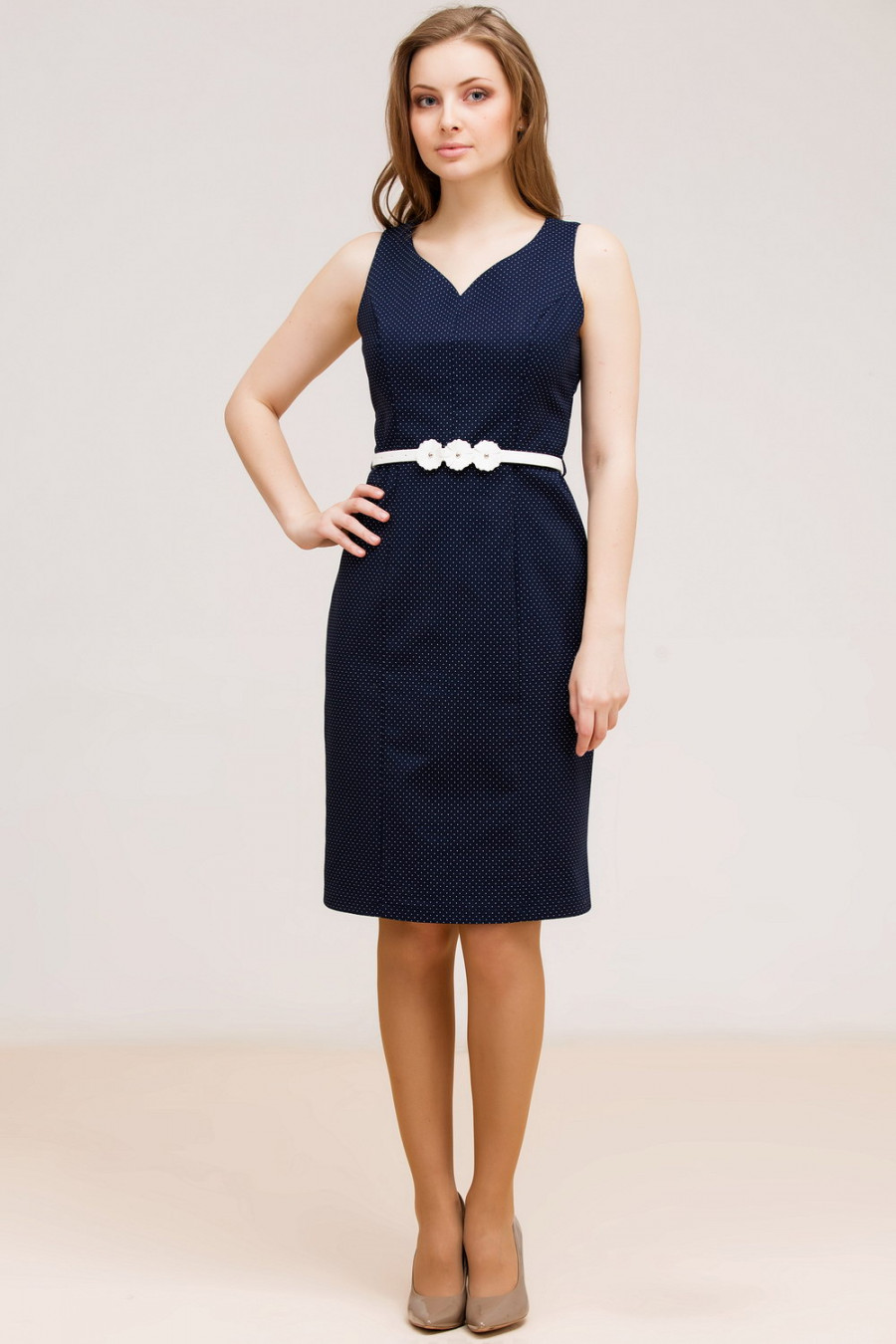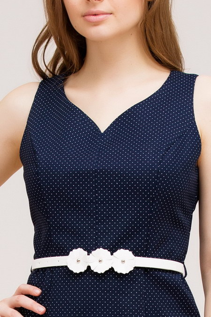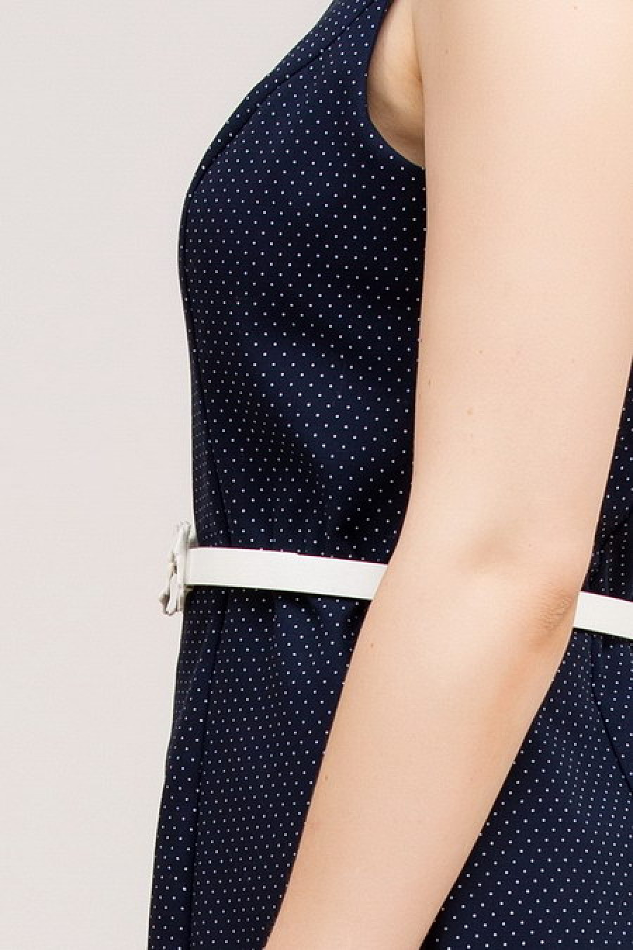 Элегантное платье модного дизайна. Платье-миди приталенного силуэта без рукавов с оригинальным вырезом. Дополнено контрастным поясом.