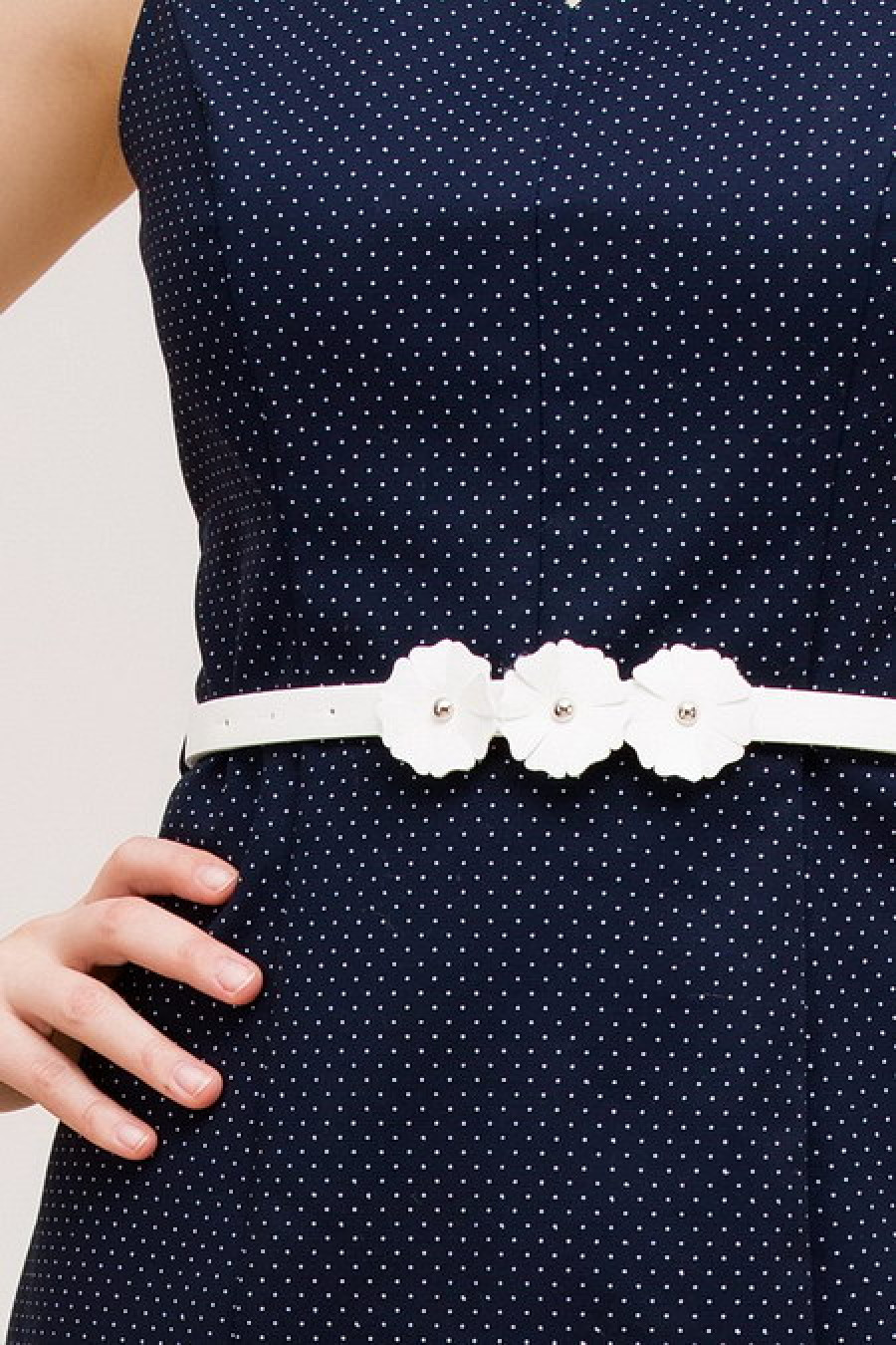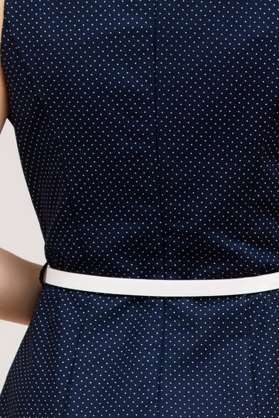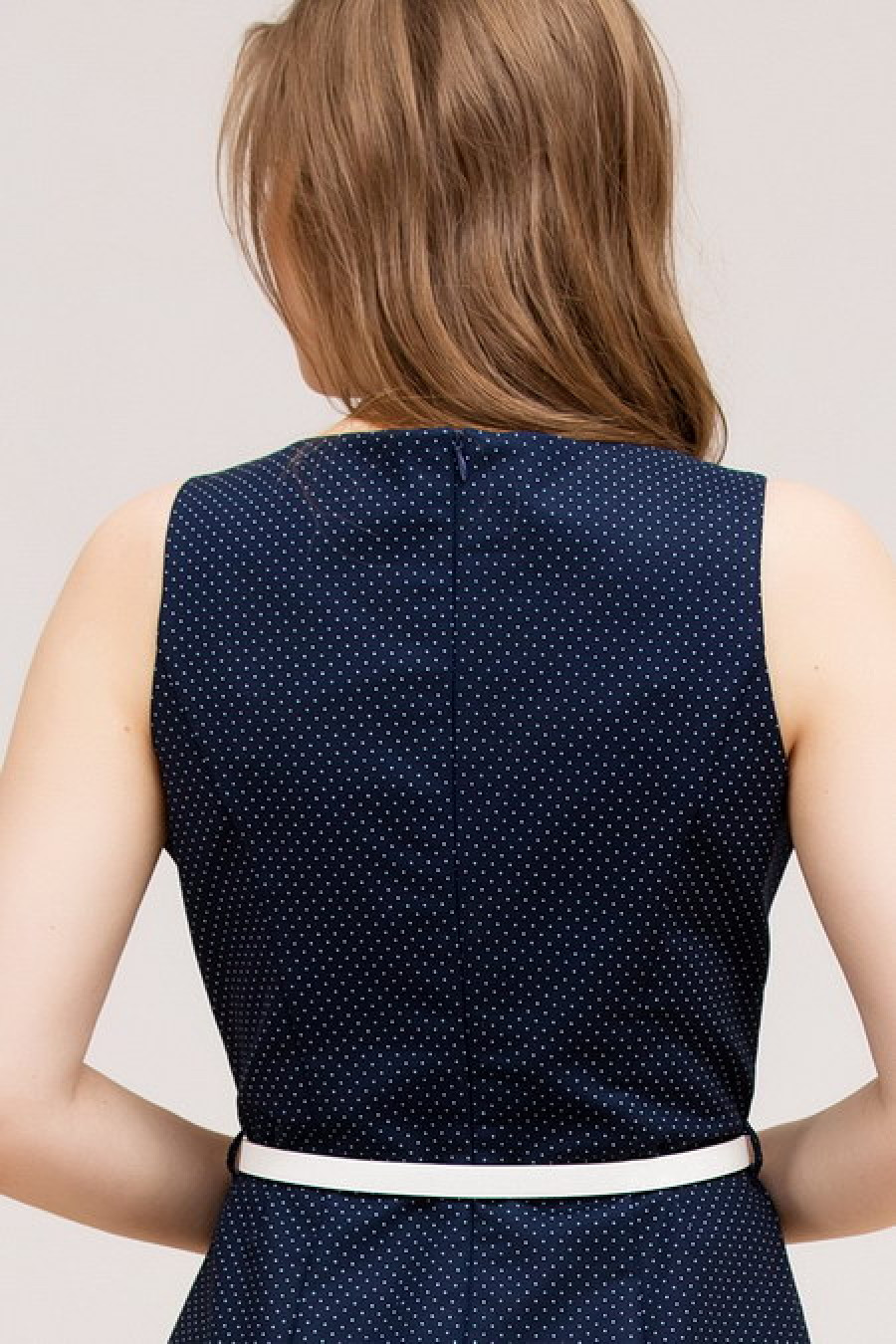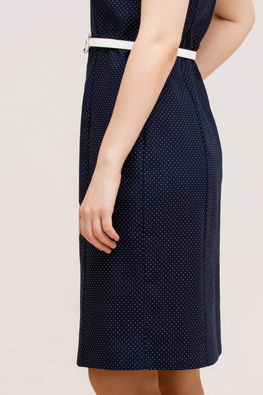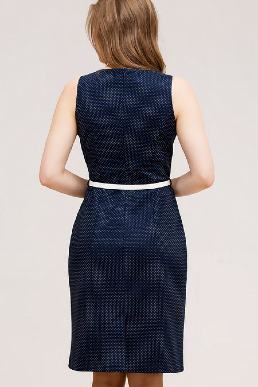 Элегантное платье модного дизайна. Платье-миди приталенного силуэта без рукавов с оригинальным вырезом. Дополнено контрастным поясом.