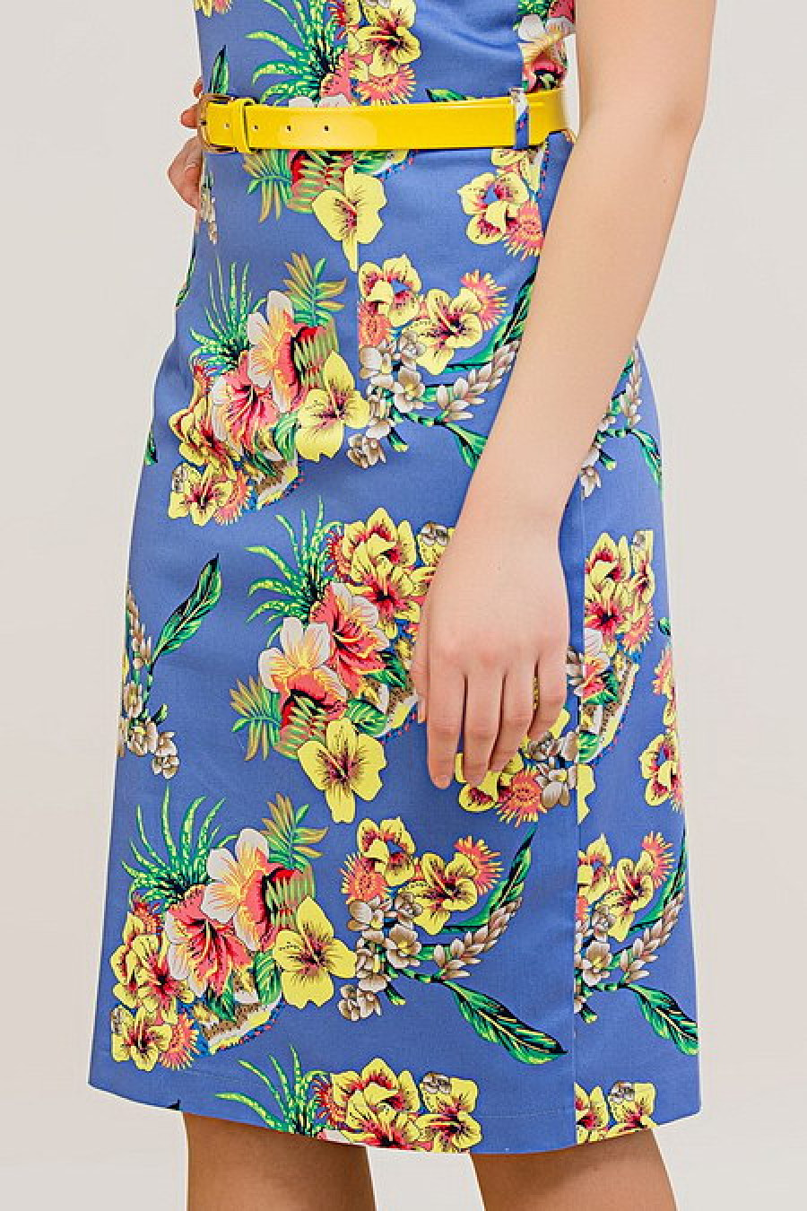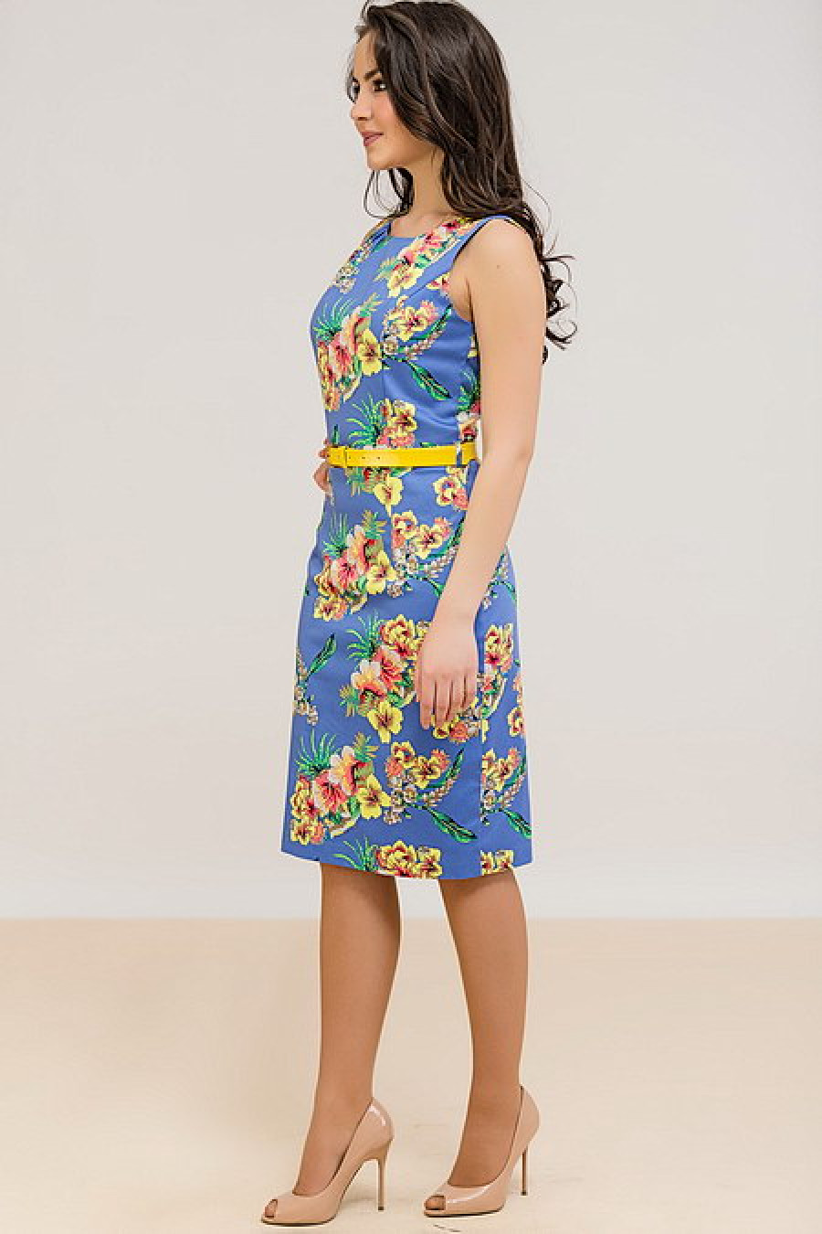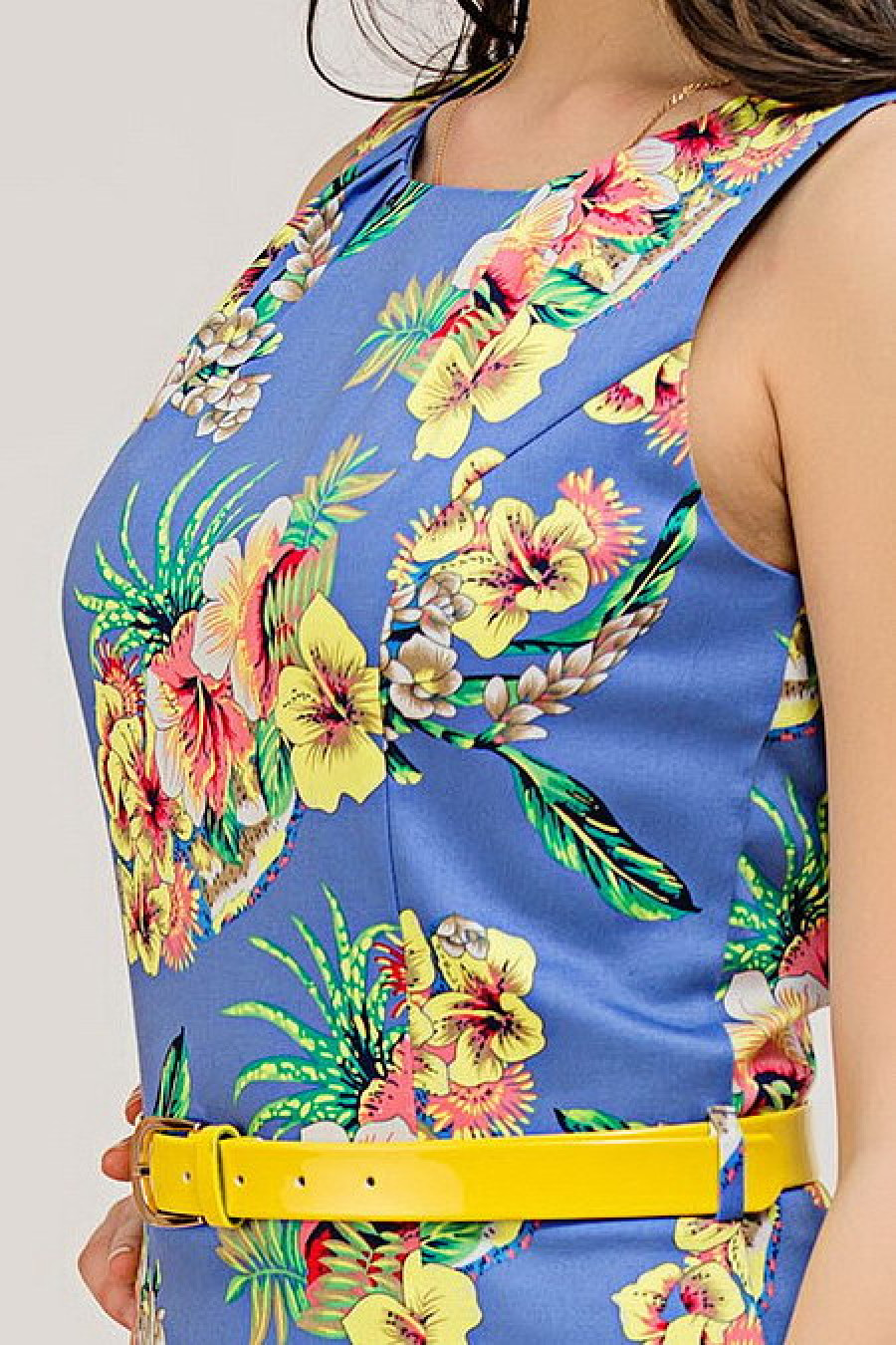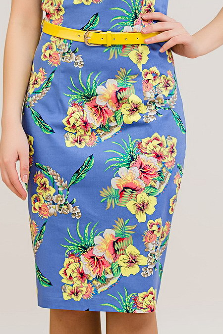 Стильное платье-футляр из легкой ткани с огруглым вырезом горловины. Вид застежки - на молнии. Длина изделия по спинке: 97 см. Без подкладки. Ремень в комплекте.