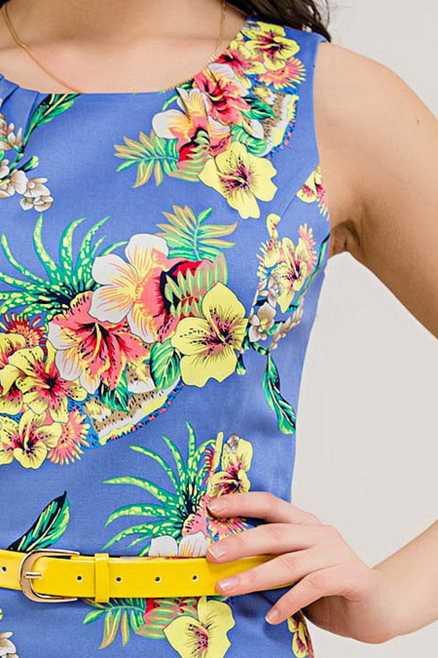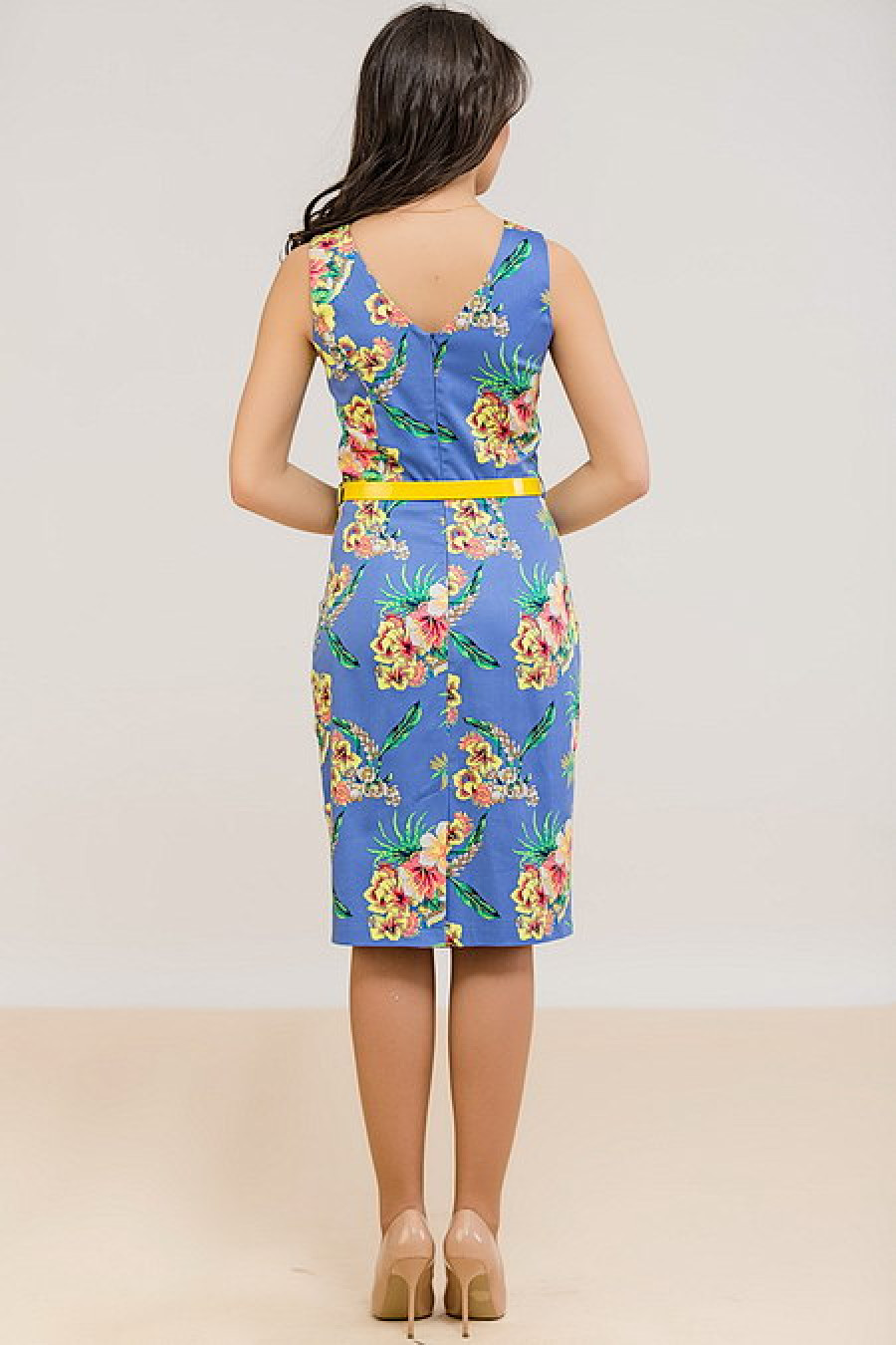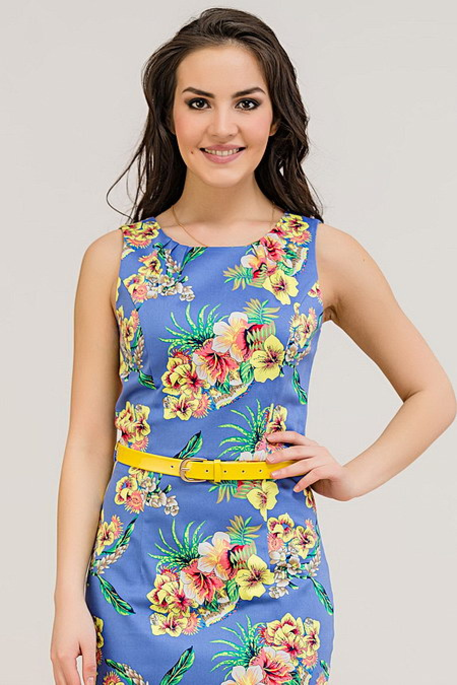 Стильное платье-футляр из легкой ткани с огруглым вырезом горловины. Вид застежки - на молнии. Длина изделия по спинке: 97 см. Без подкладки. Ремень в комплекте.