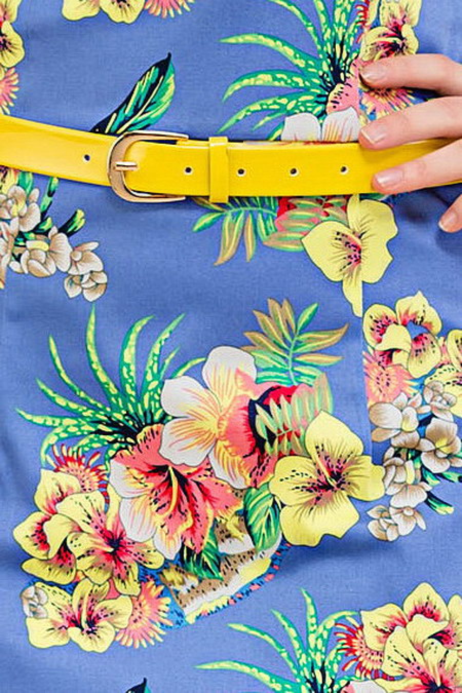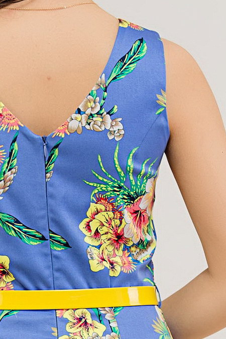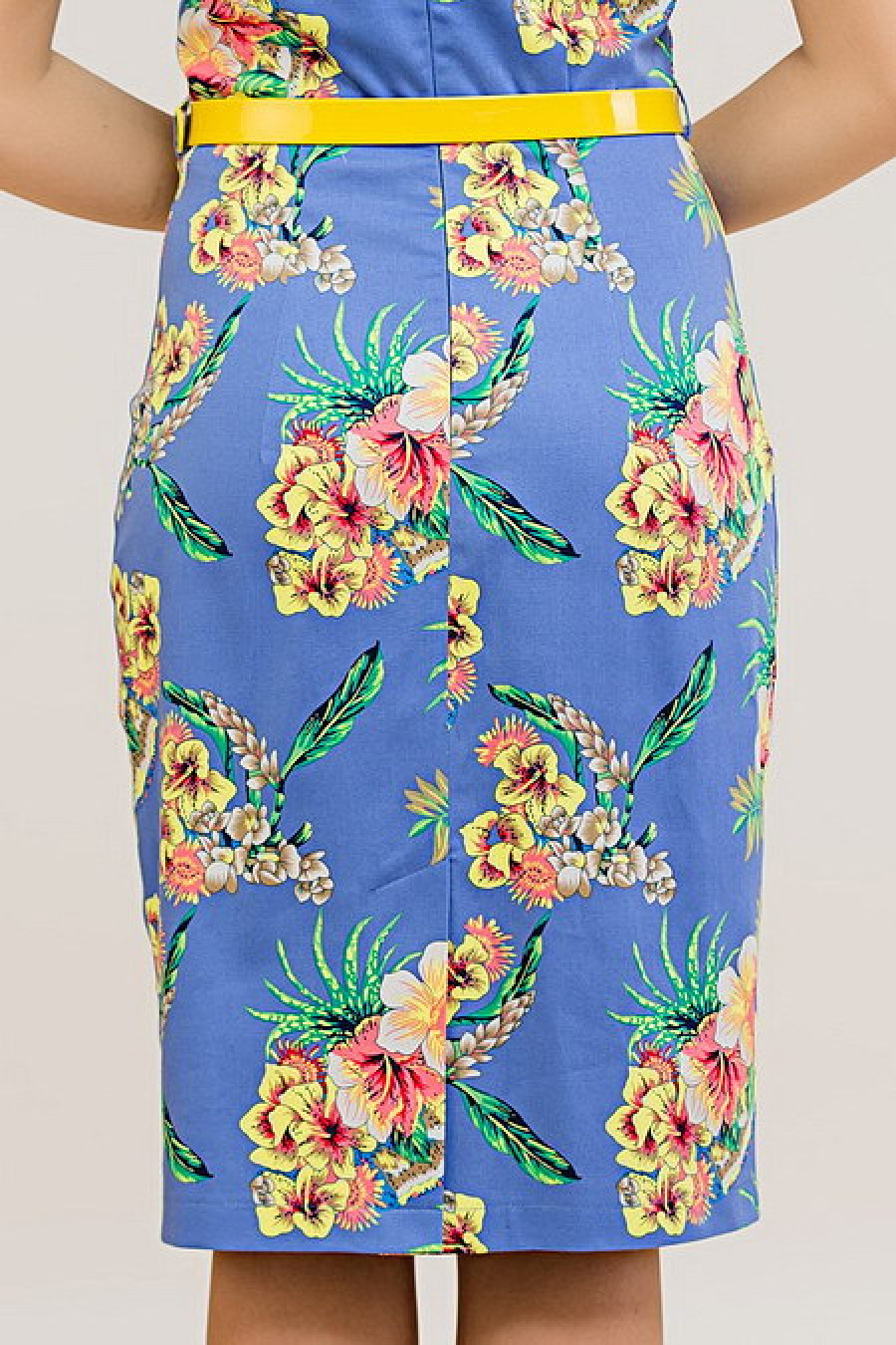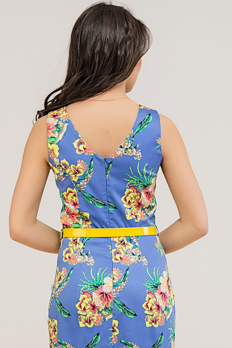 Стильное платье-футляр из легкой ткани с огруглым вырезом горловины. Вид застежки - на молнии. Длина изделия по спинке: 97 см. Без подкладки. Ремень в комплекте.