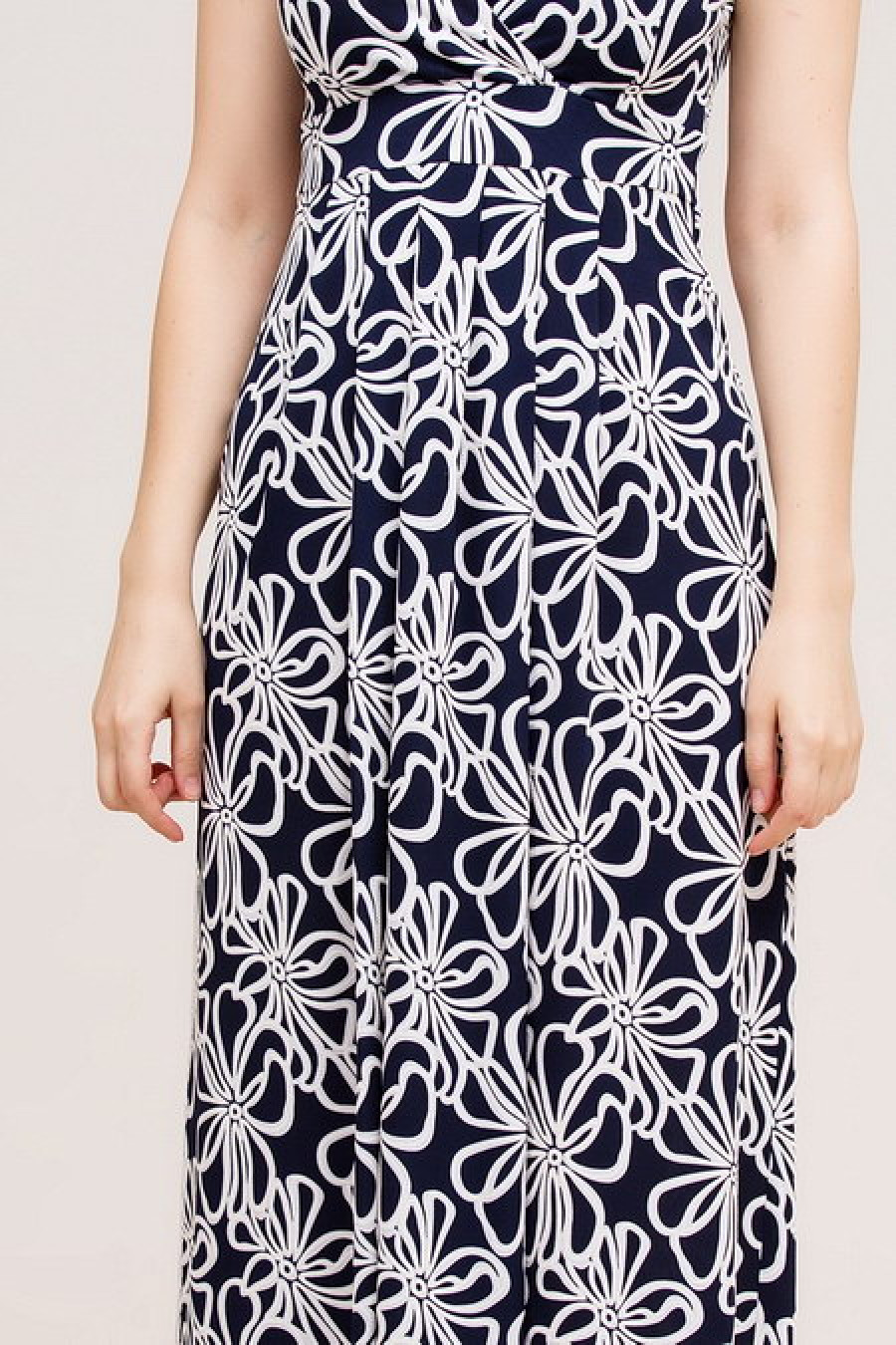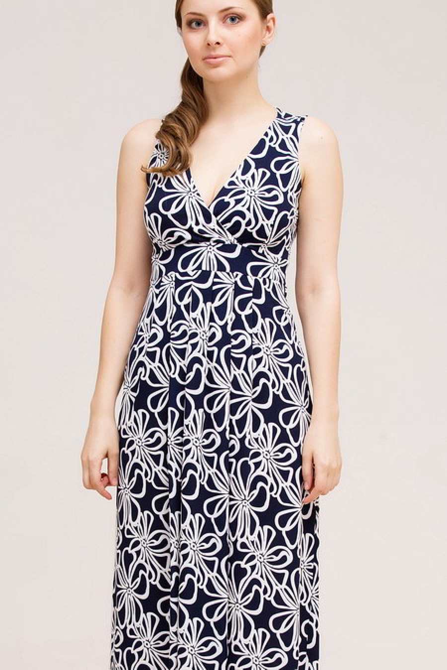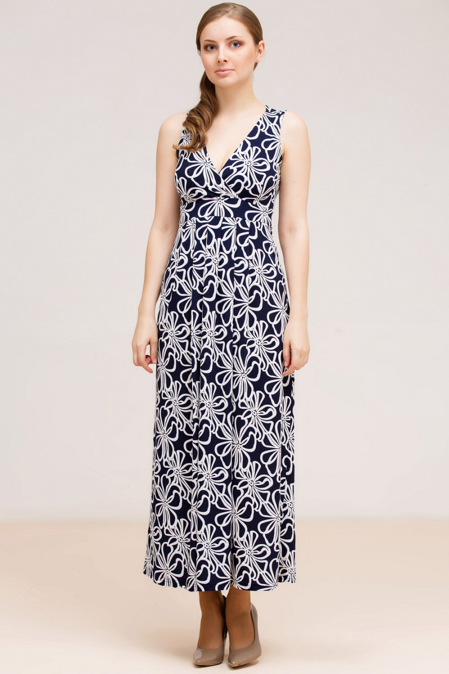 Восхитительный вариант на лето - длинное платье. Изделие приталенного силуэта, на широких бретелях. Декорировано платье контрастным рисунком.