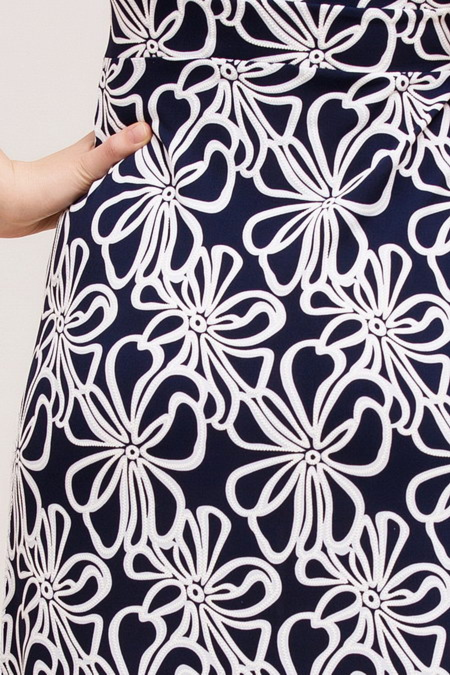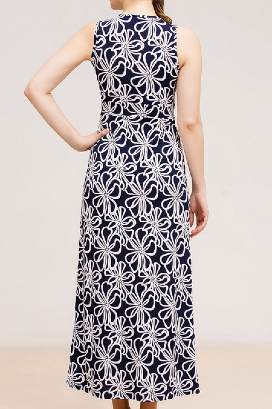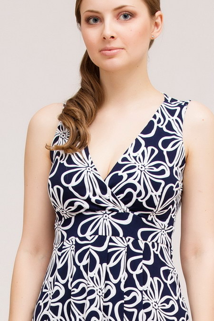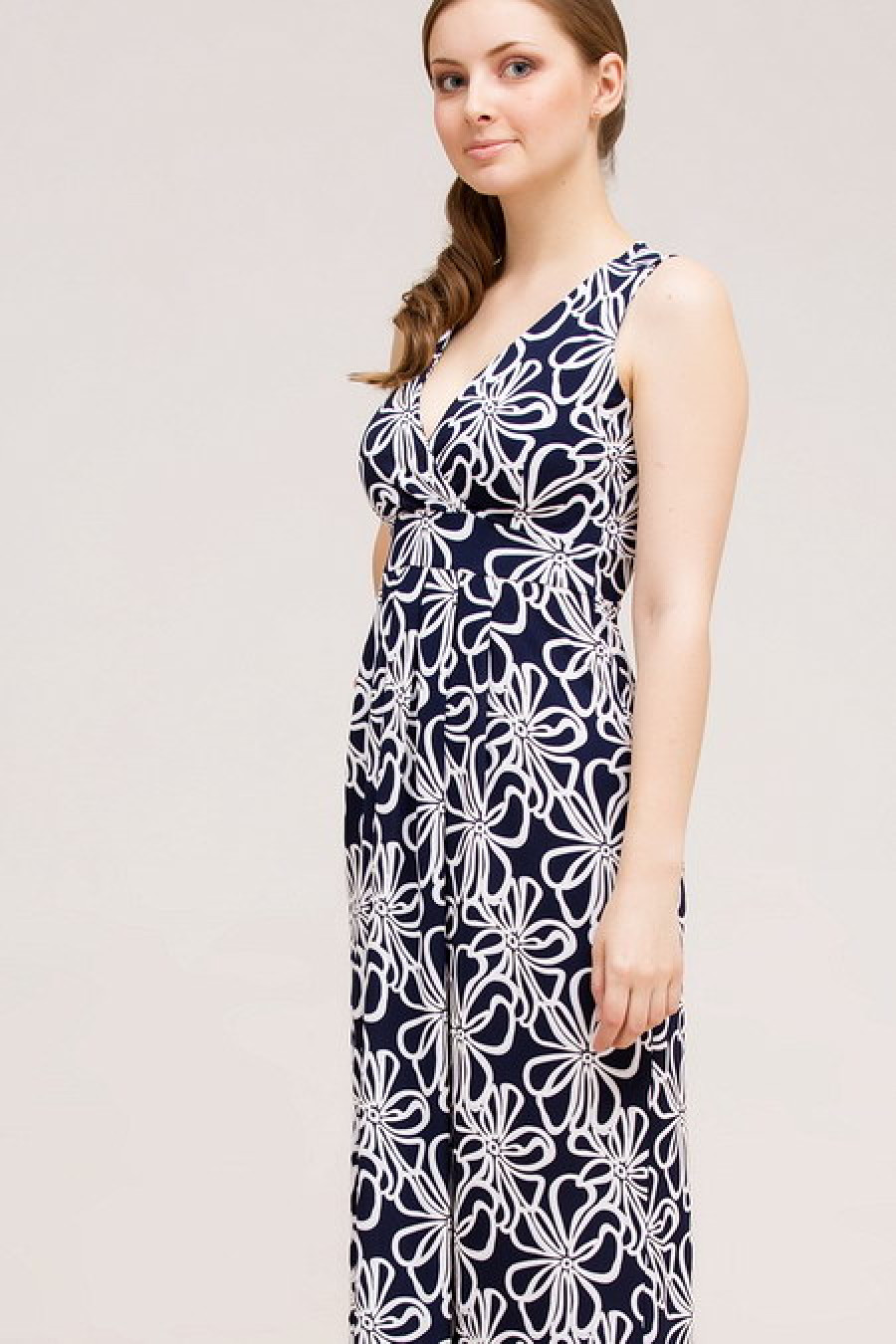 Восхитительный вариант на лето - длинное платье. Изделие приталенного силуэта, на широких бретелях. Декорировано платье контрастным рисунком.
