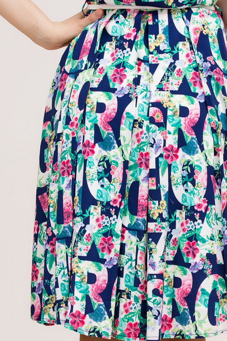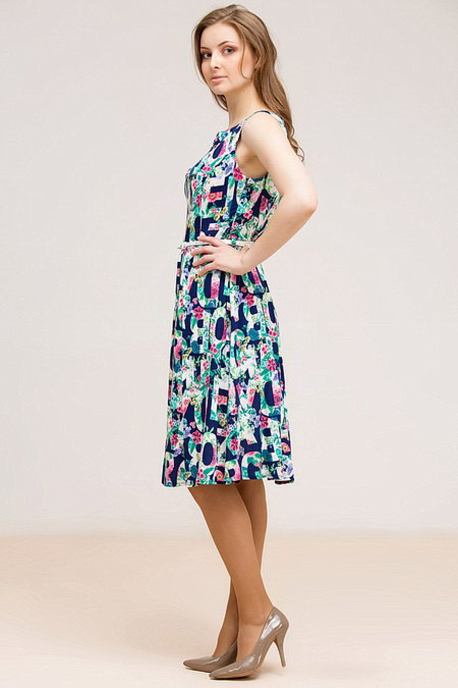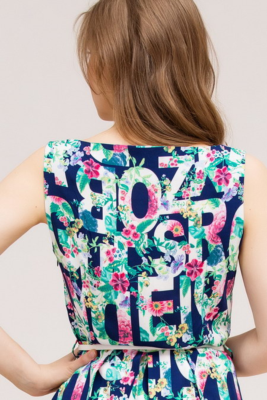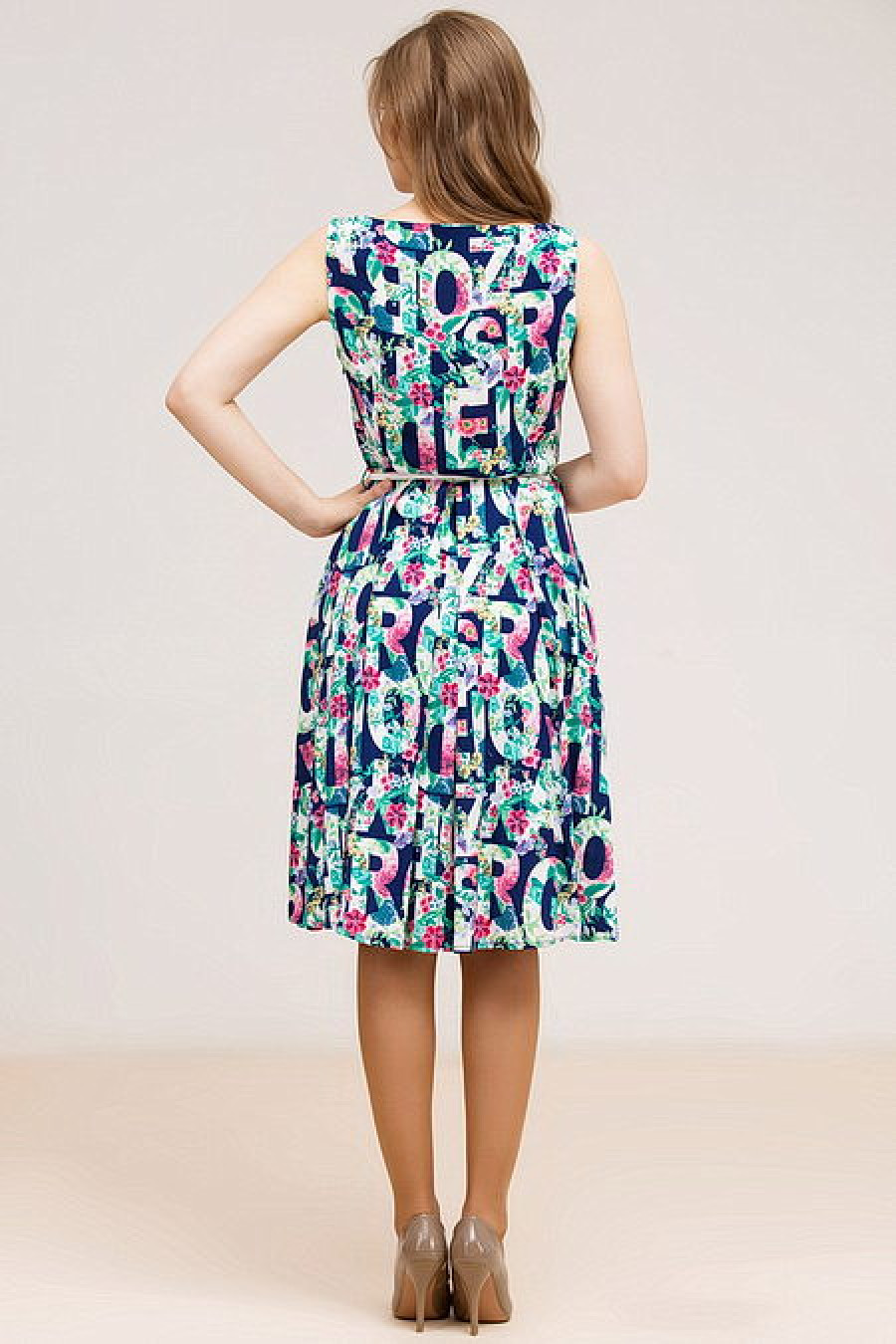 Платье с округлым вырезом горловины. Модель выполнена из легкого материала и украшена рисунком. Пояс входит в комплект.