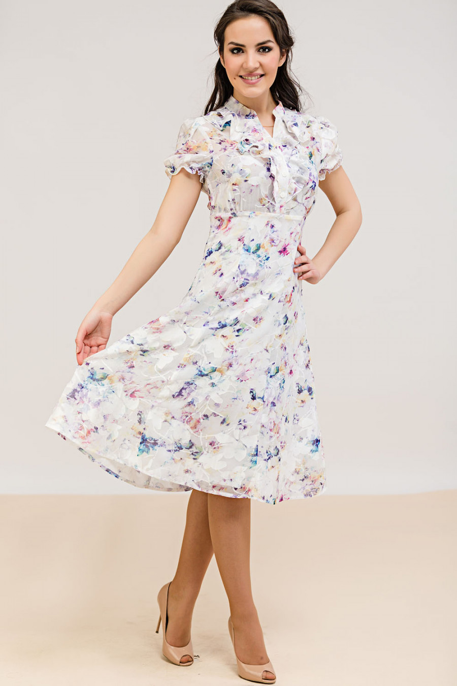 Стильное платье с округлым вырезом горловины. Лаконичный и изысканный дизайн придется Вам по вкусу. Потрясающий повседневный вариант. Длина по спинке 104 см., длина рукава 17 см.