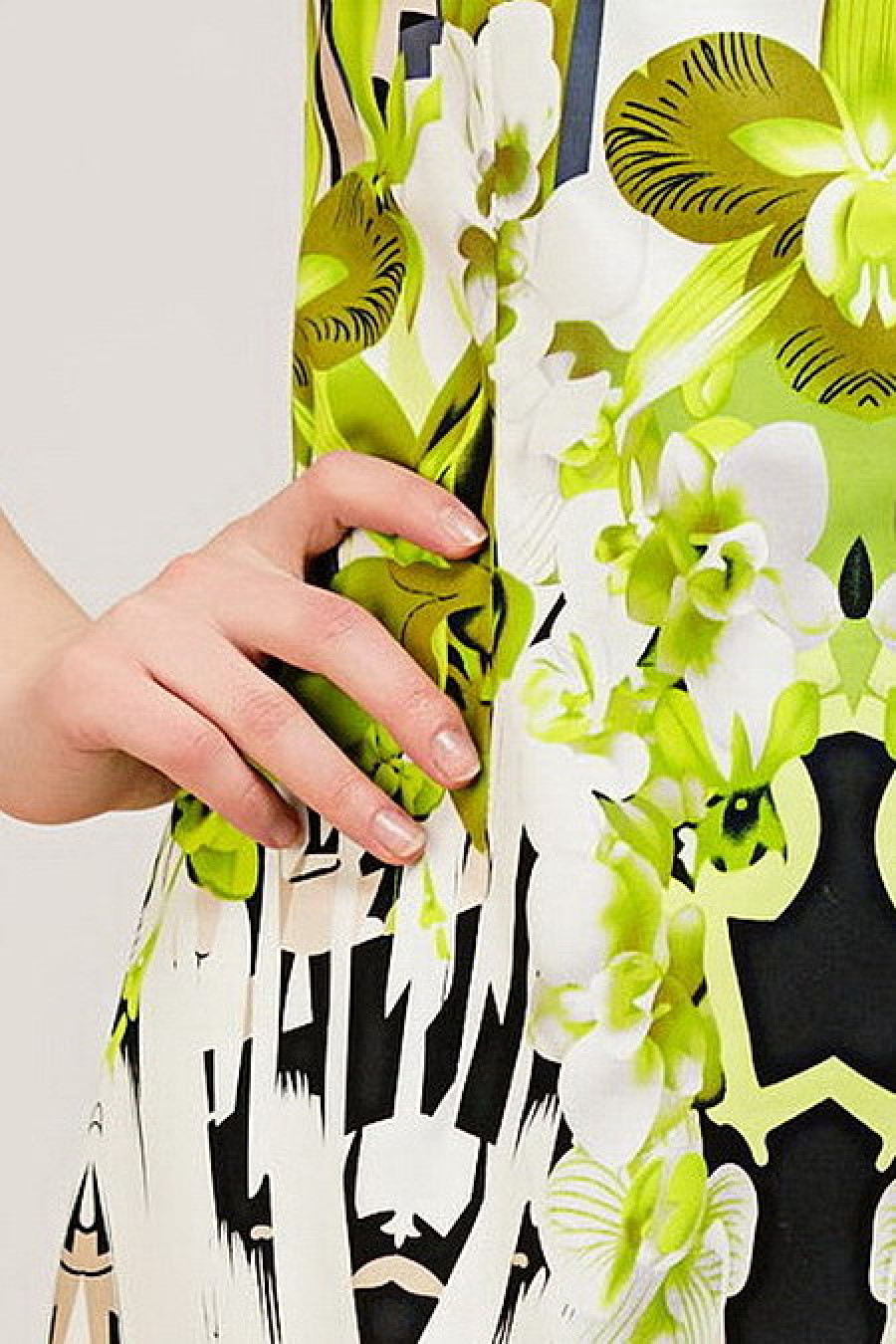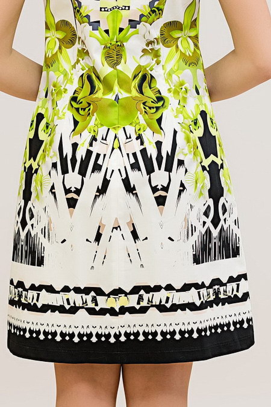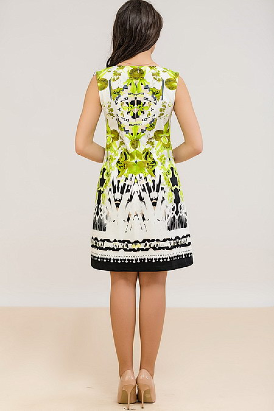 Стильное платье с оригинальным принтом. Лаконичный и изысканный дизайн придется Вам по вкусу. Длина по спинке 87 см.