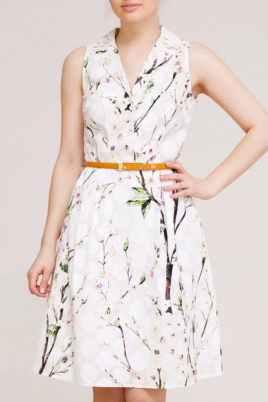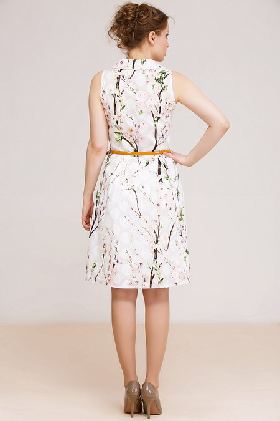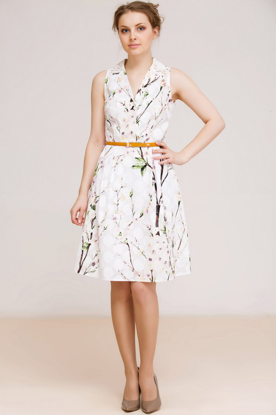 Хлопковое платье без рукавов, с откидным воротником. Идеальный вариант для жаркого летнего дня в офисе. Ремень входит в комплект.