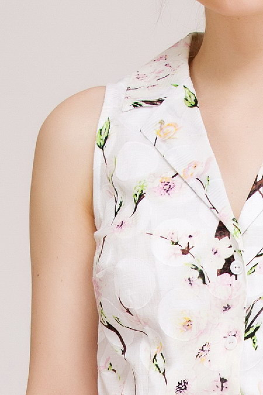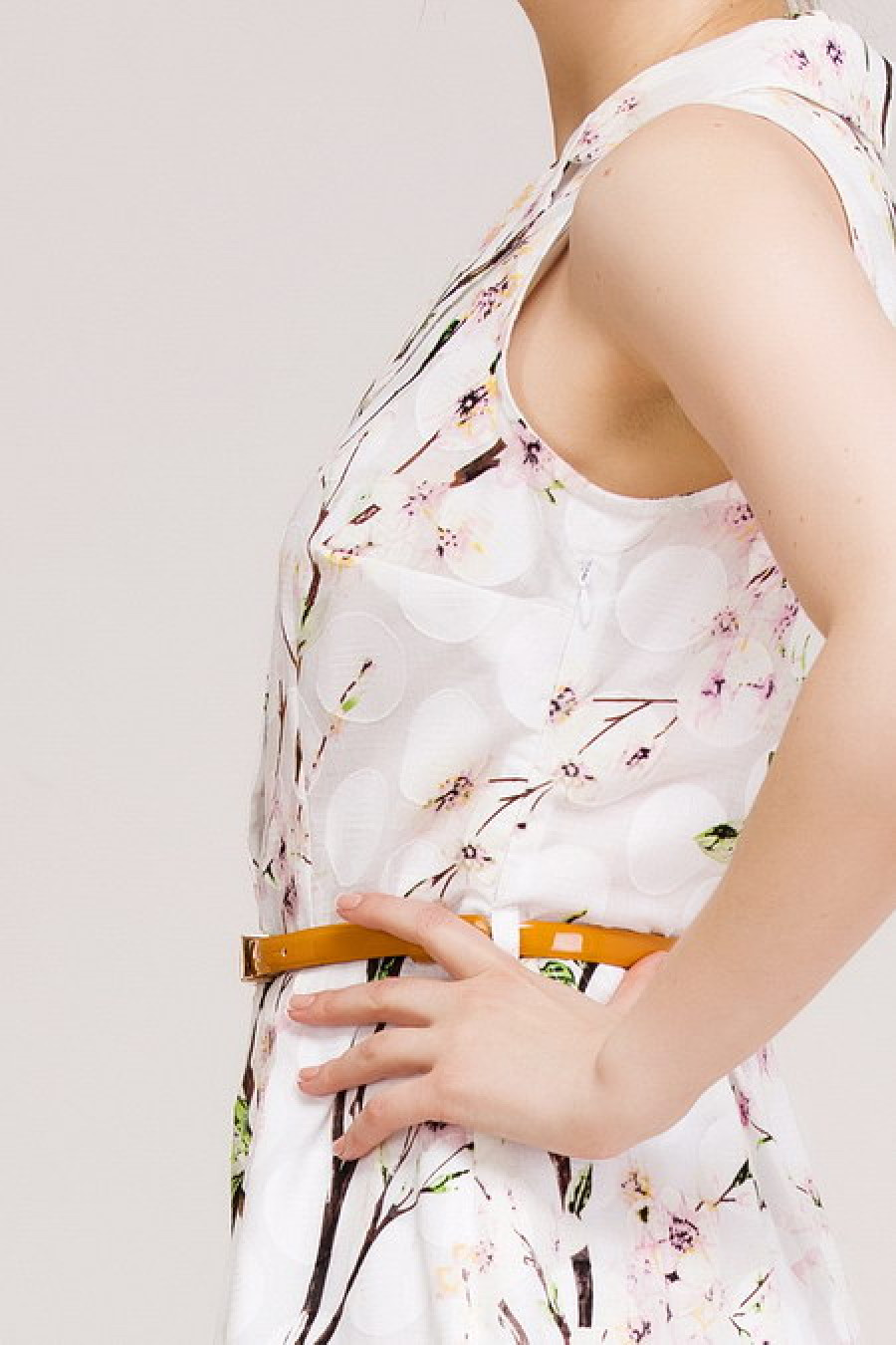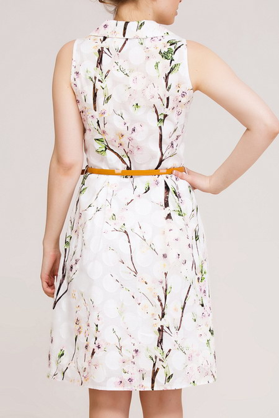 Хлопковое платье без рукавов, с откидным воротником. Идеальный вариант для жаркого летнего дня в офисе. Ремень входит в комплект.