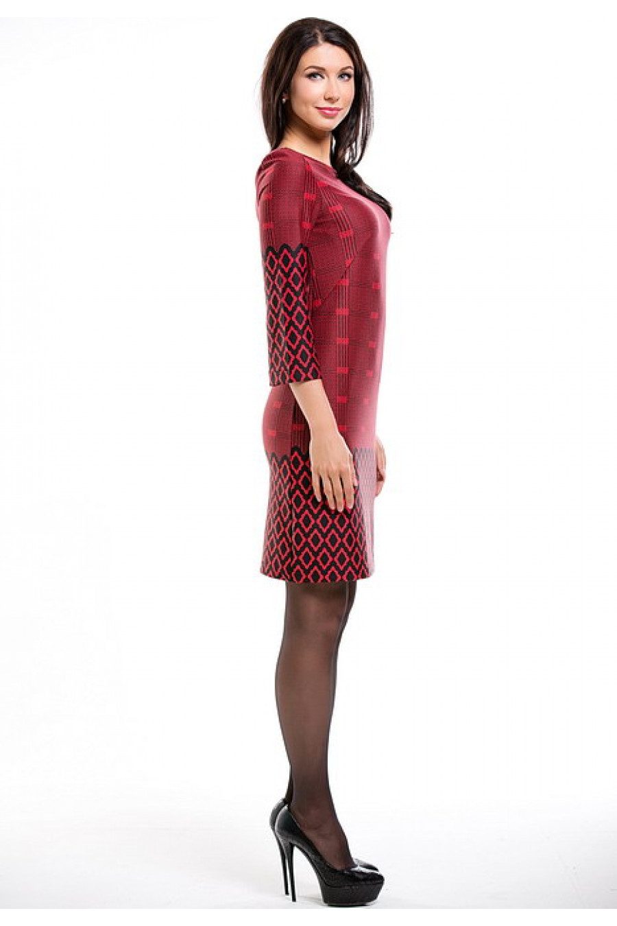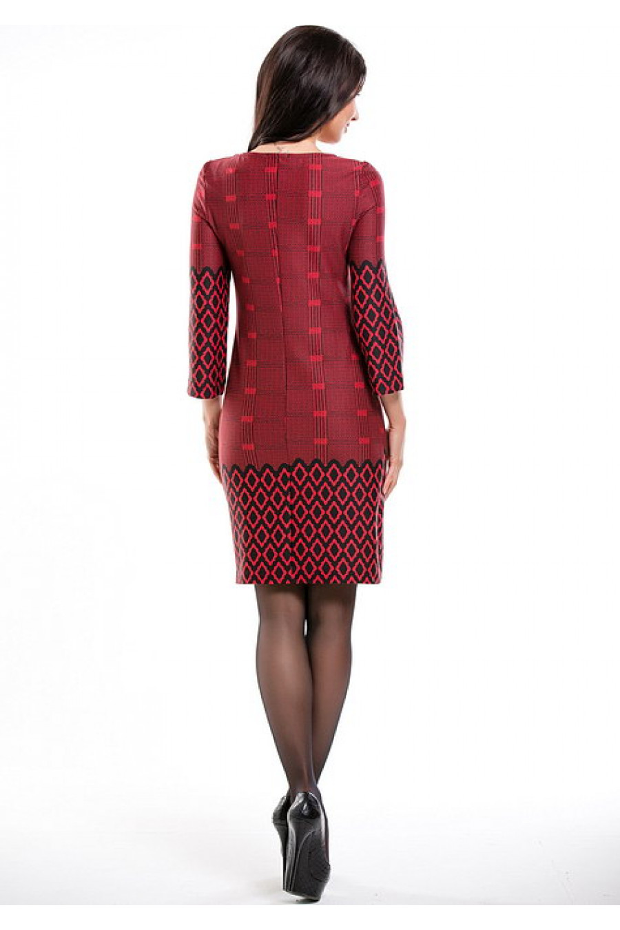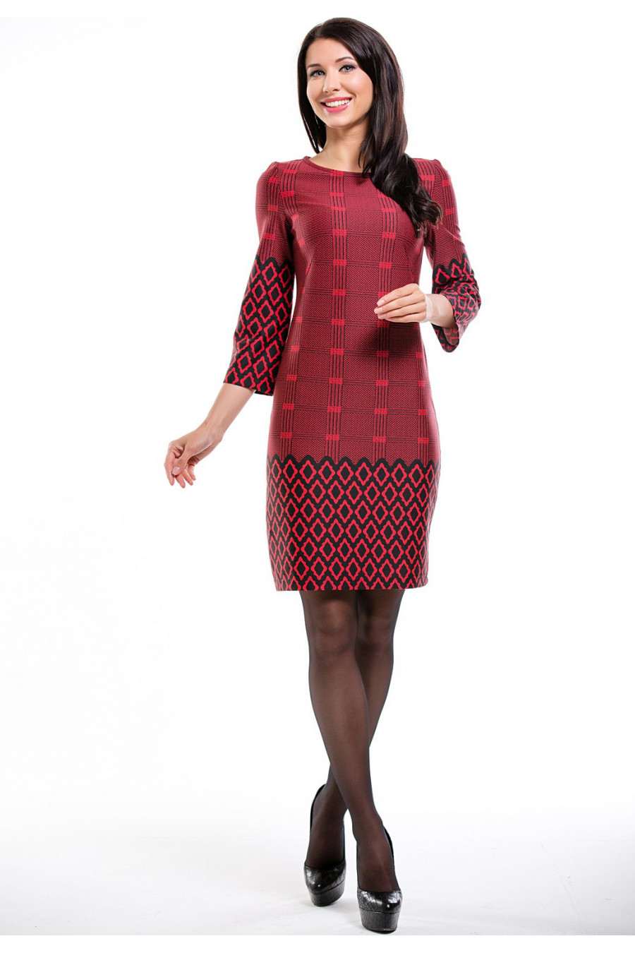 Прямое платье с интересным орнаментом. Рукав 3/4, расширен книзу.
