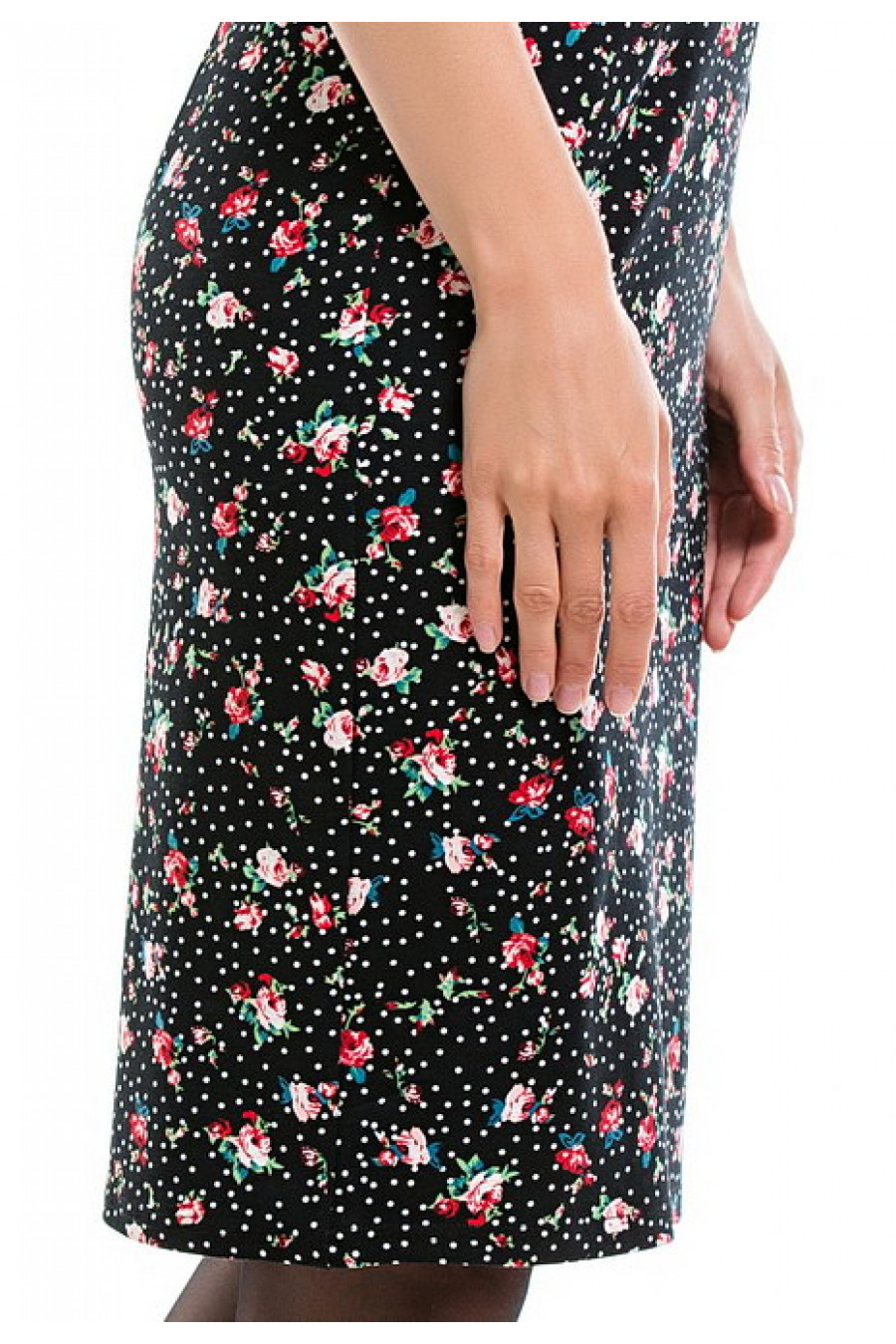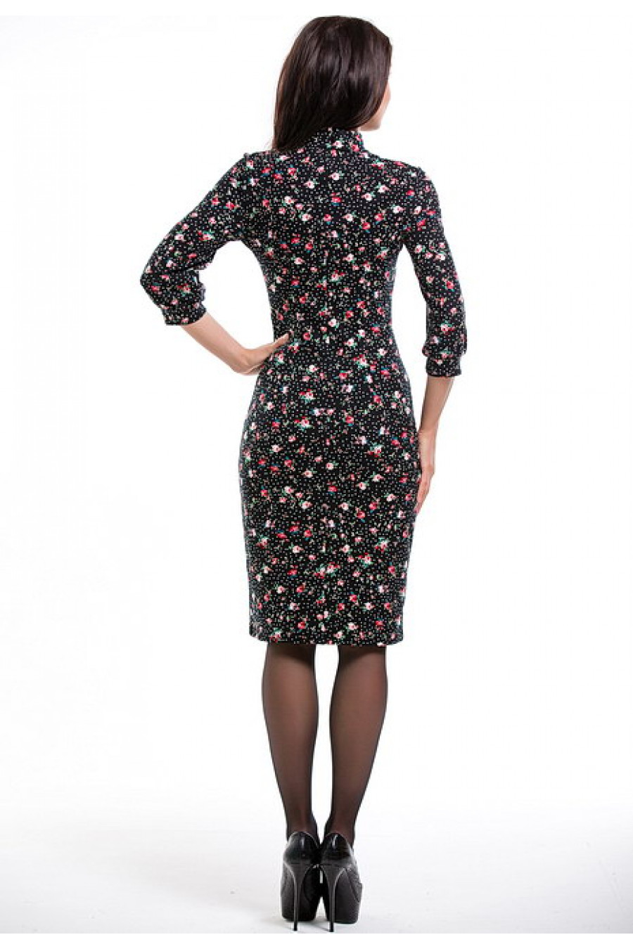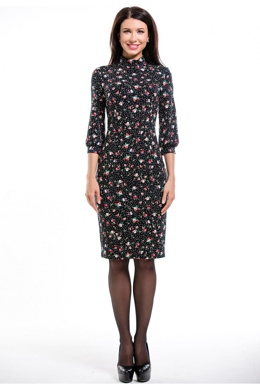Женственное платье с воротником-стойкой и рукавом 3/4.