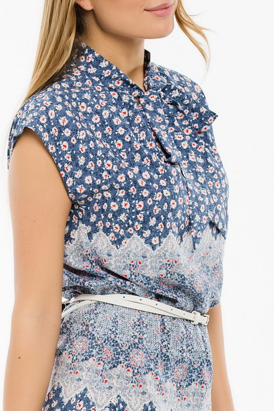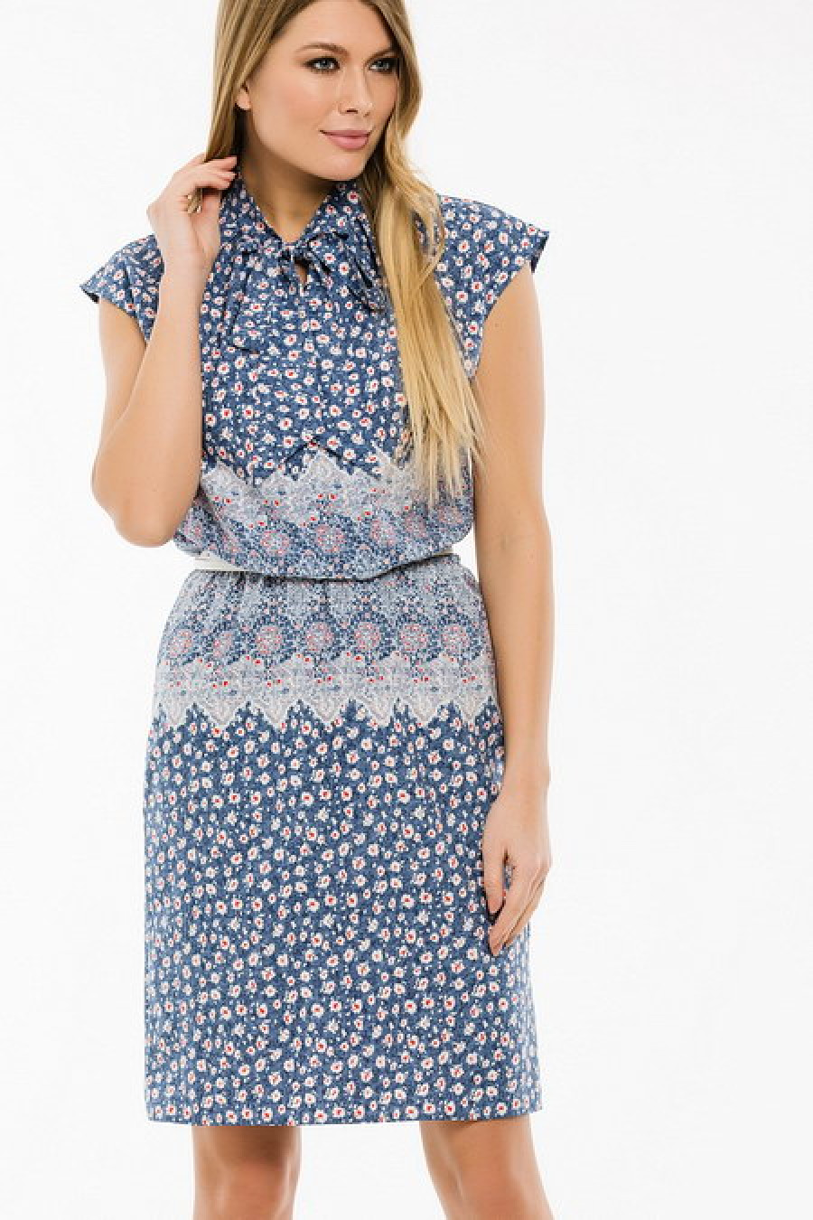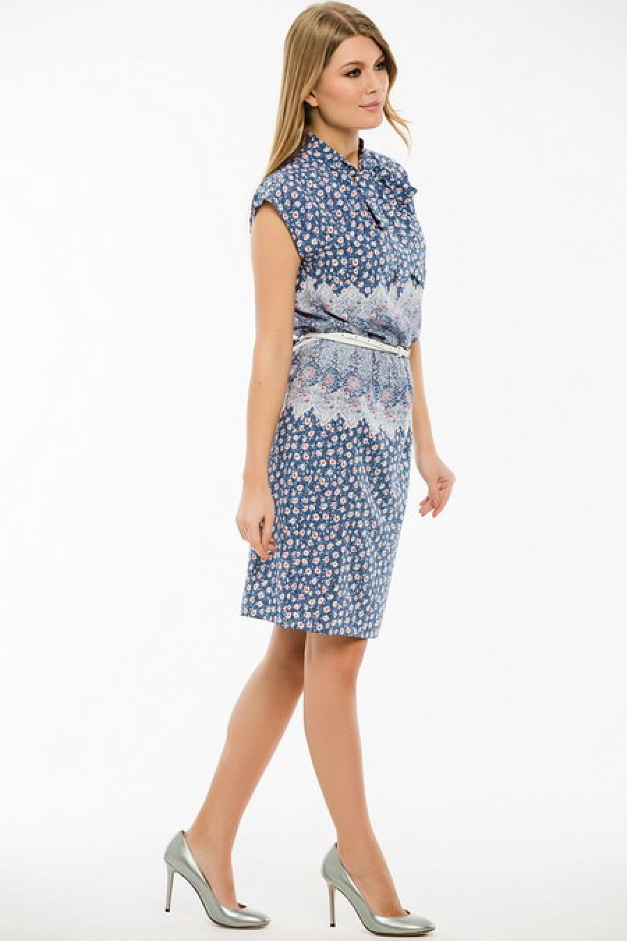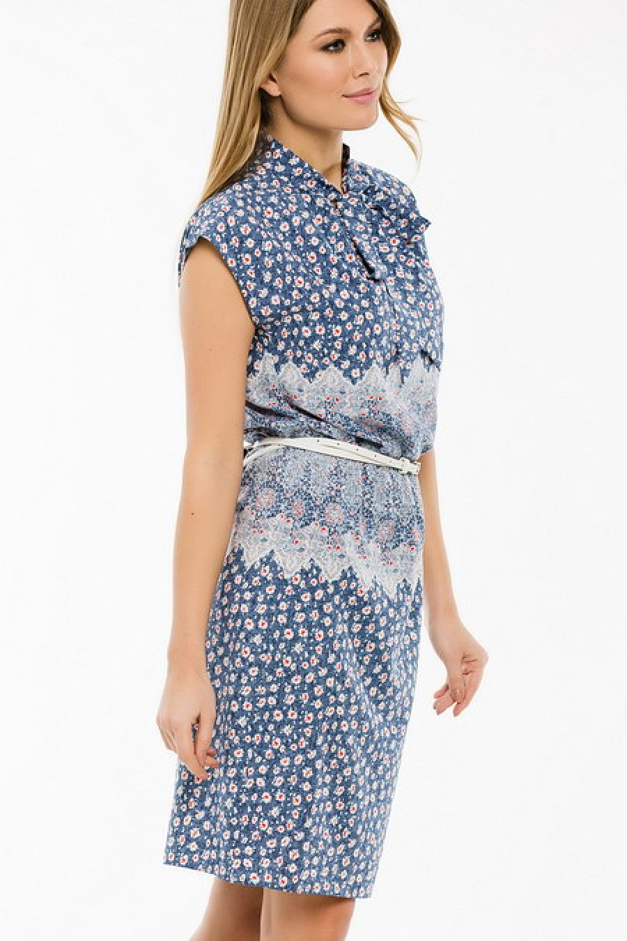 Легкое платье прямого кроя с коротким рукавом. Ремень входит в комплект и подчеркивает талию.