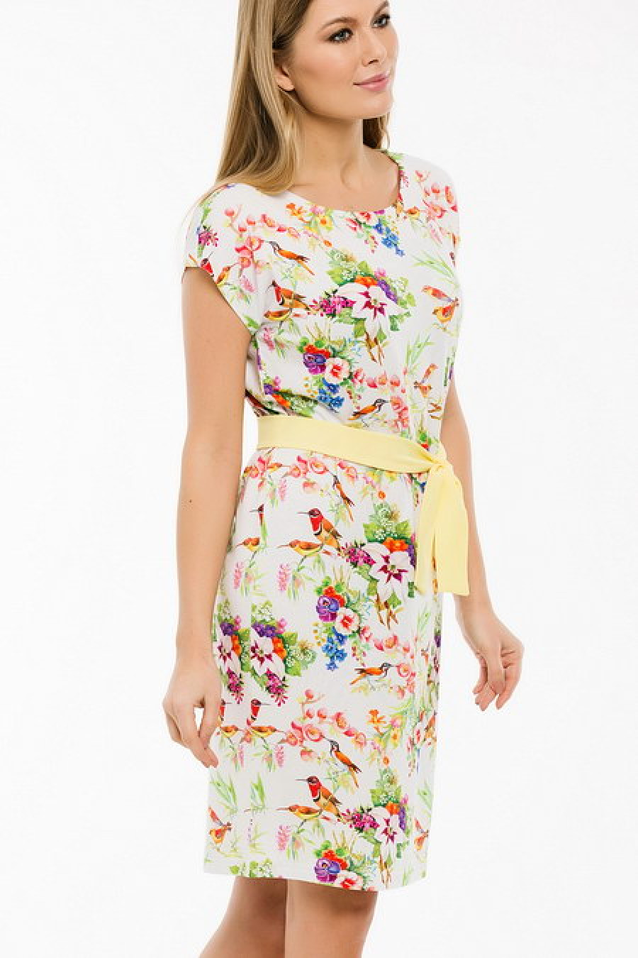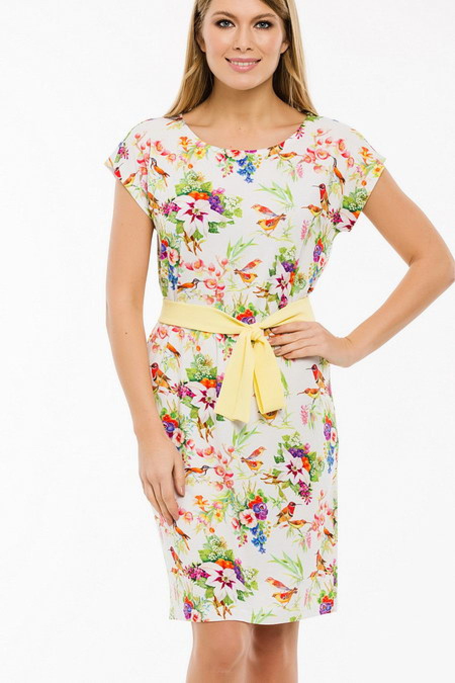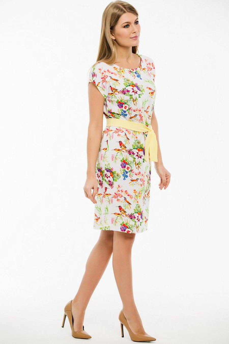 Легкое платье с тканевым поясом.