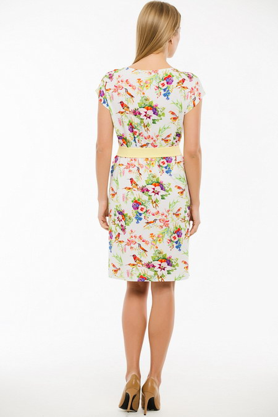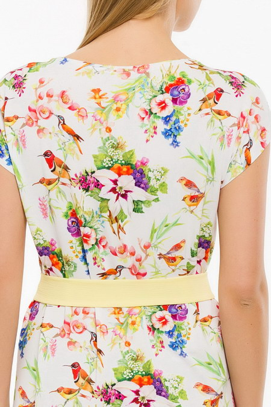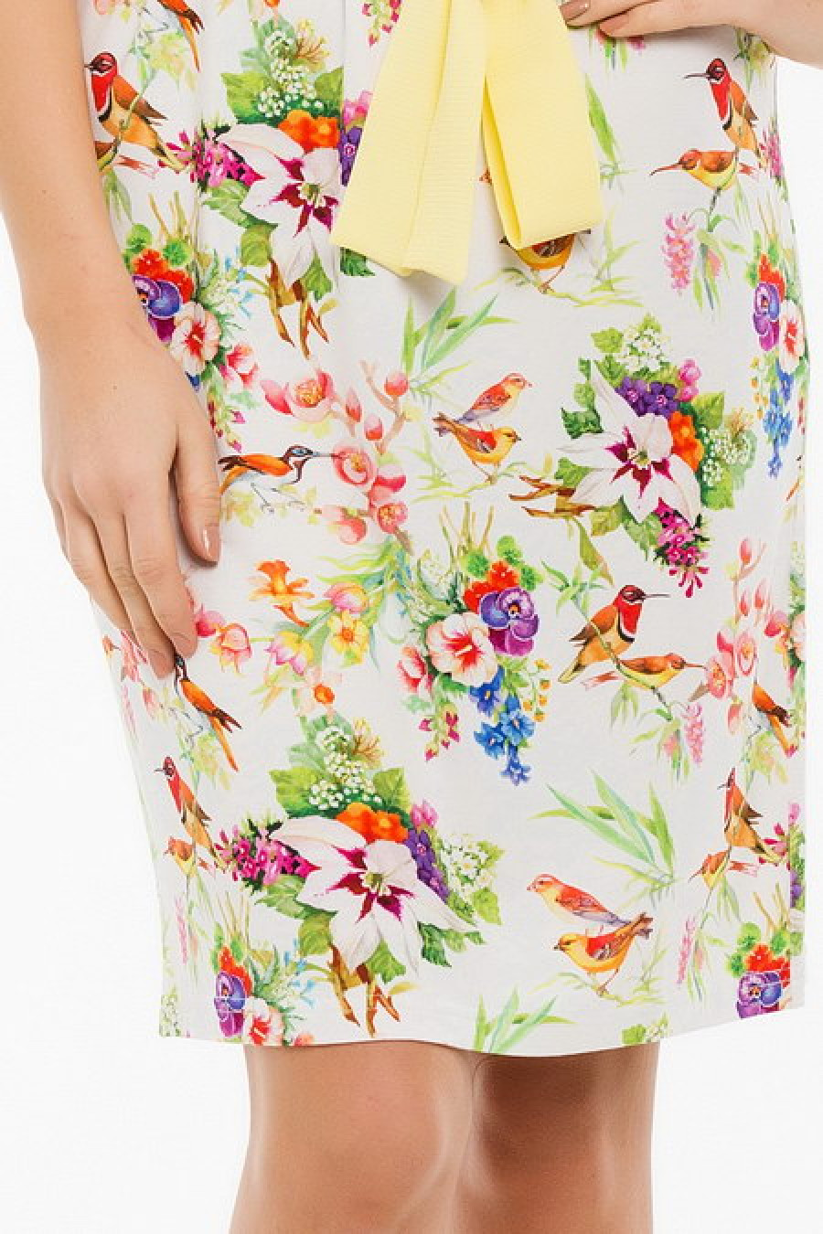 Легкое платье с тканевым поясом.
