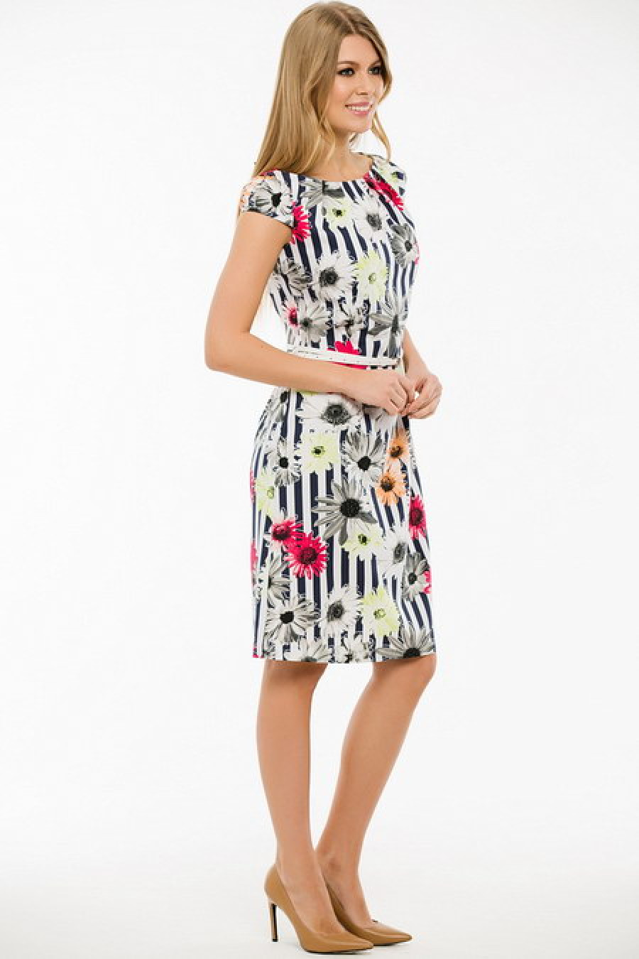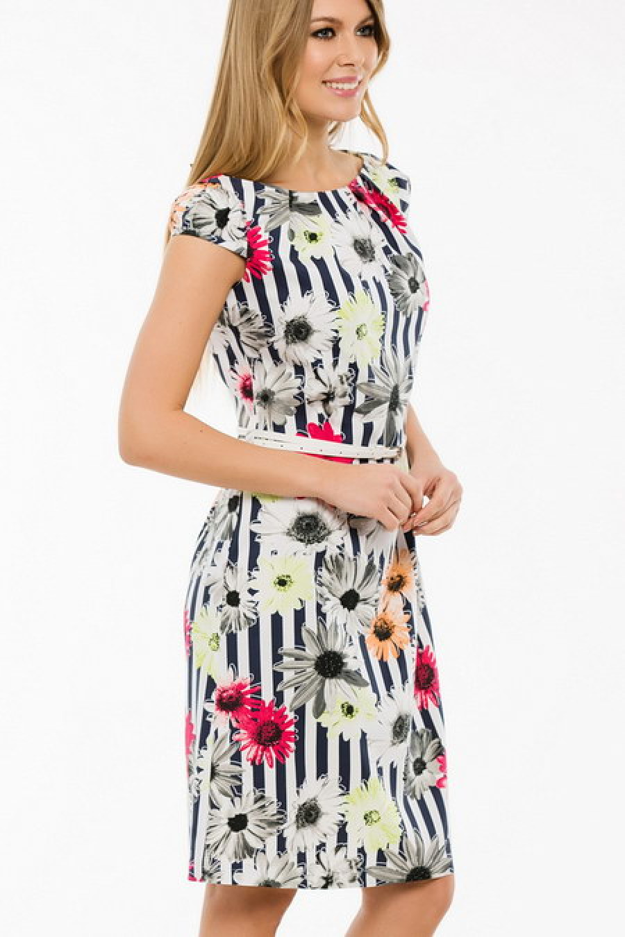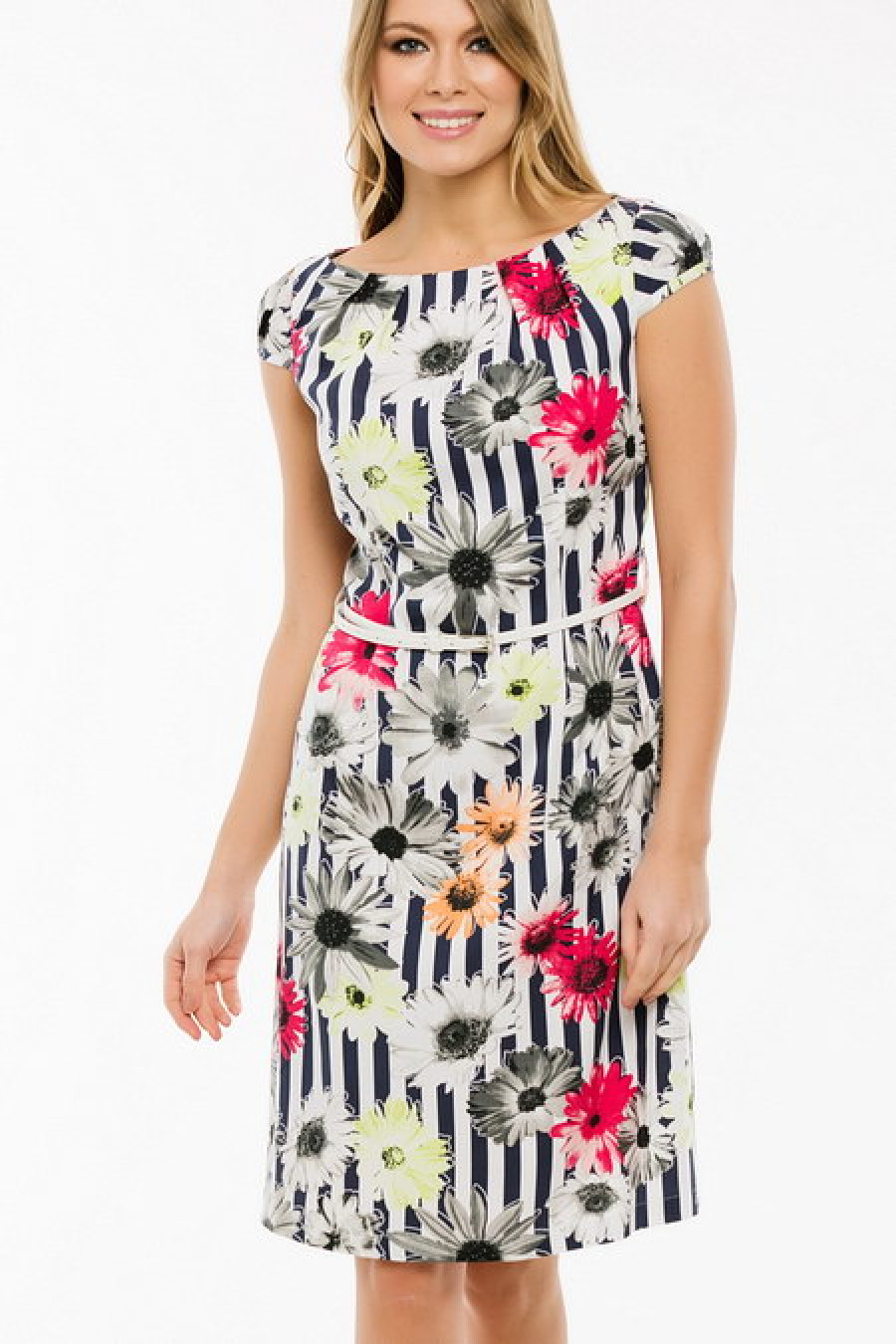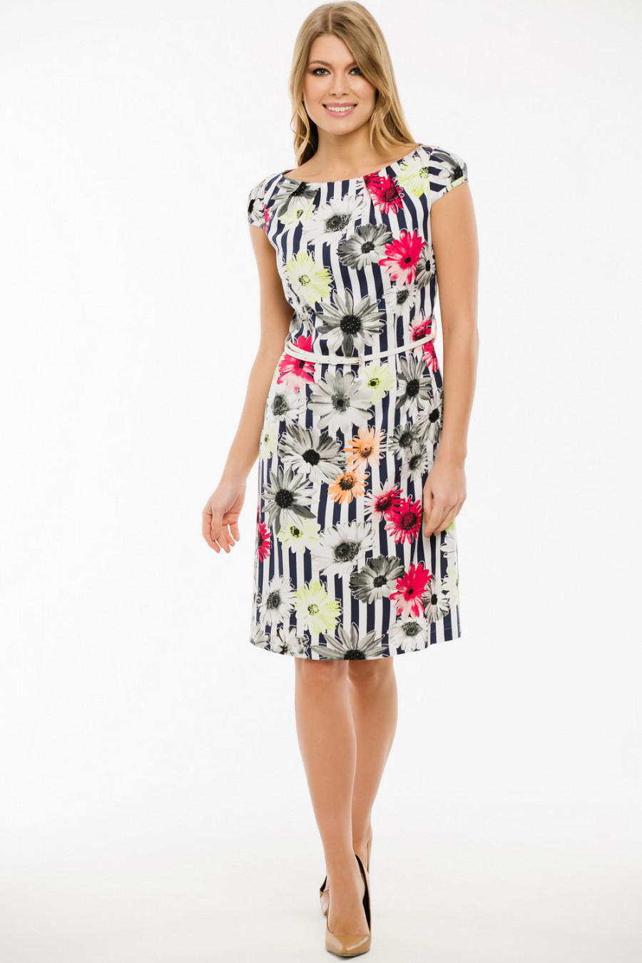 Летнее платье с коротким рукавом. Ремень входит в комплект.