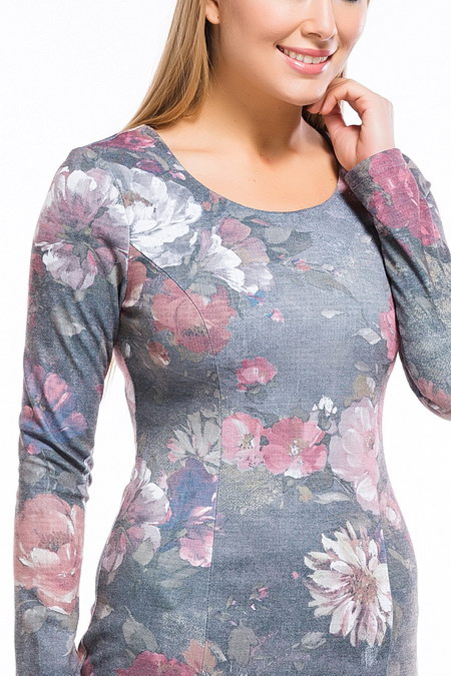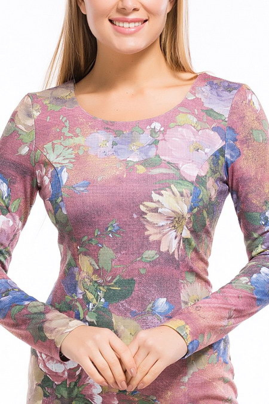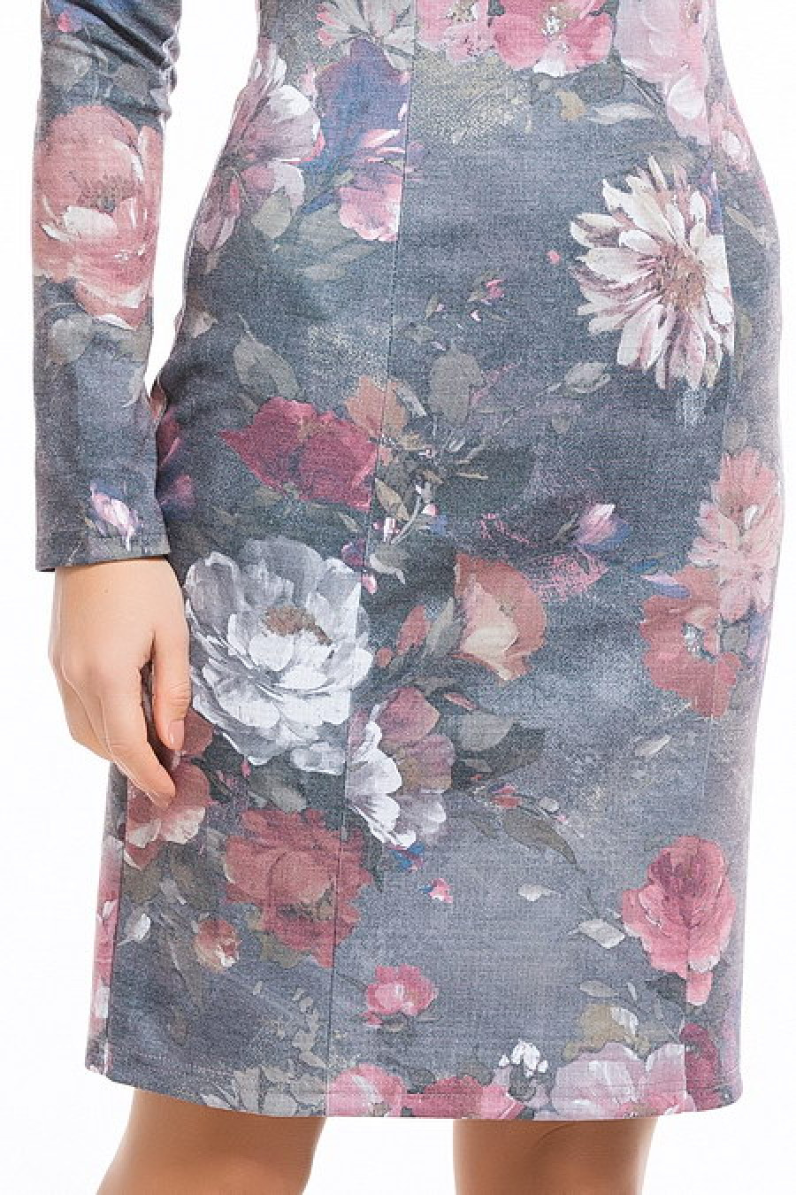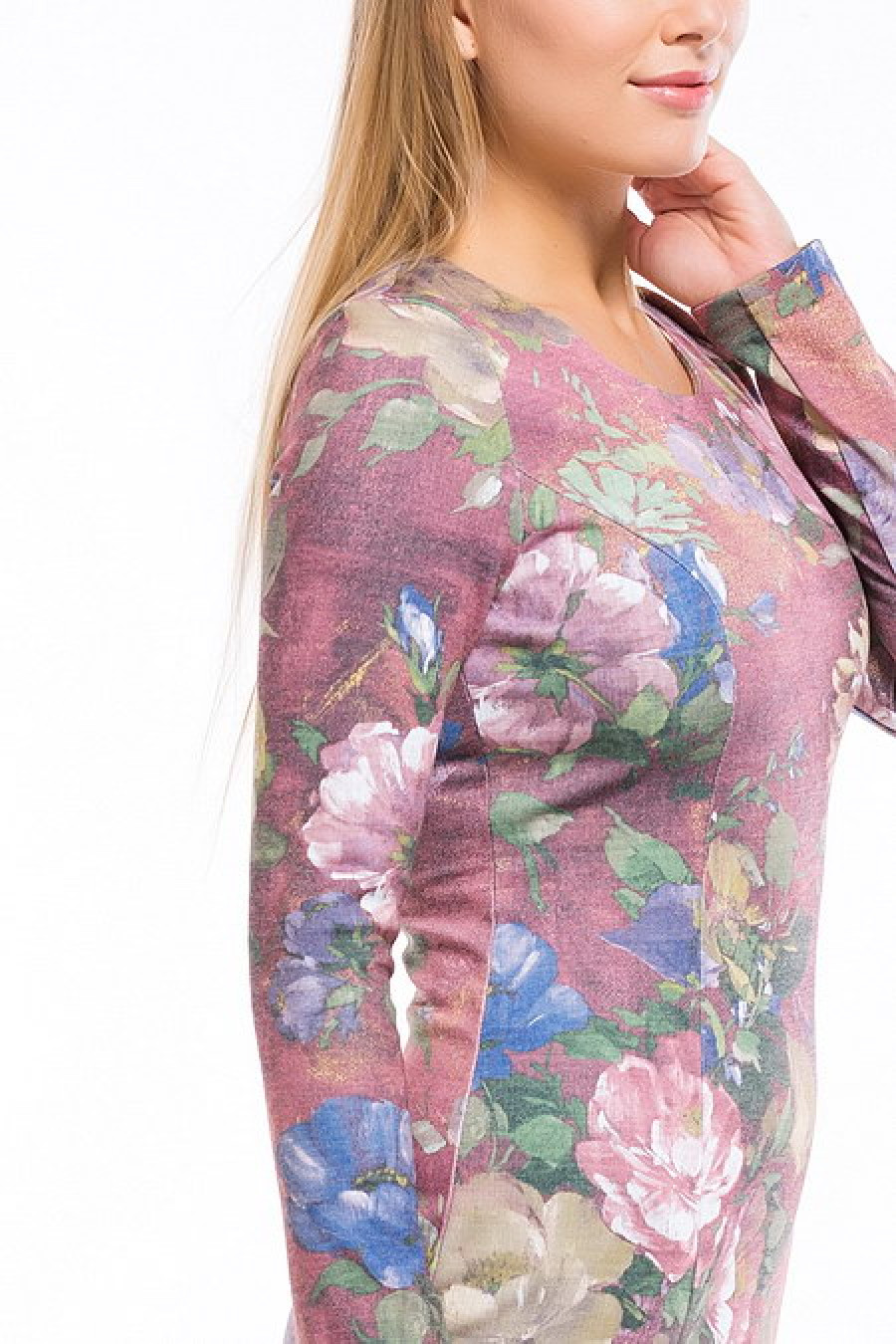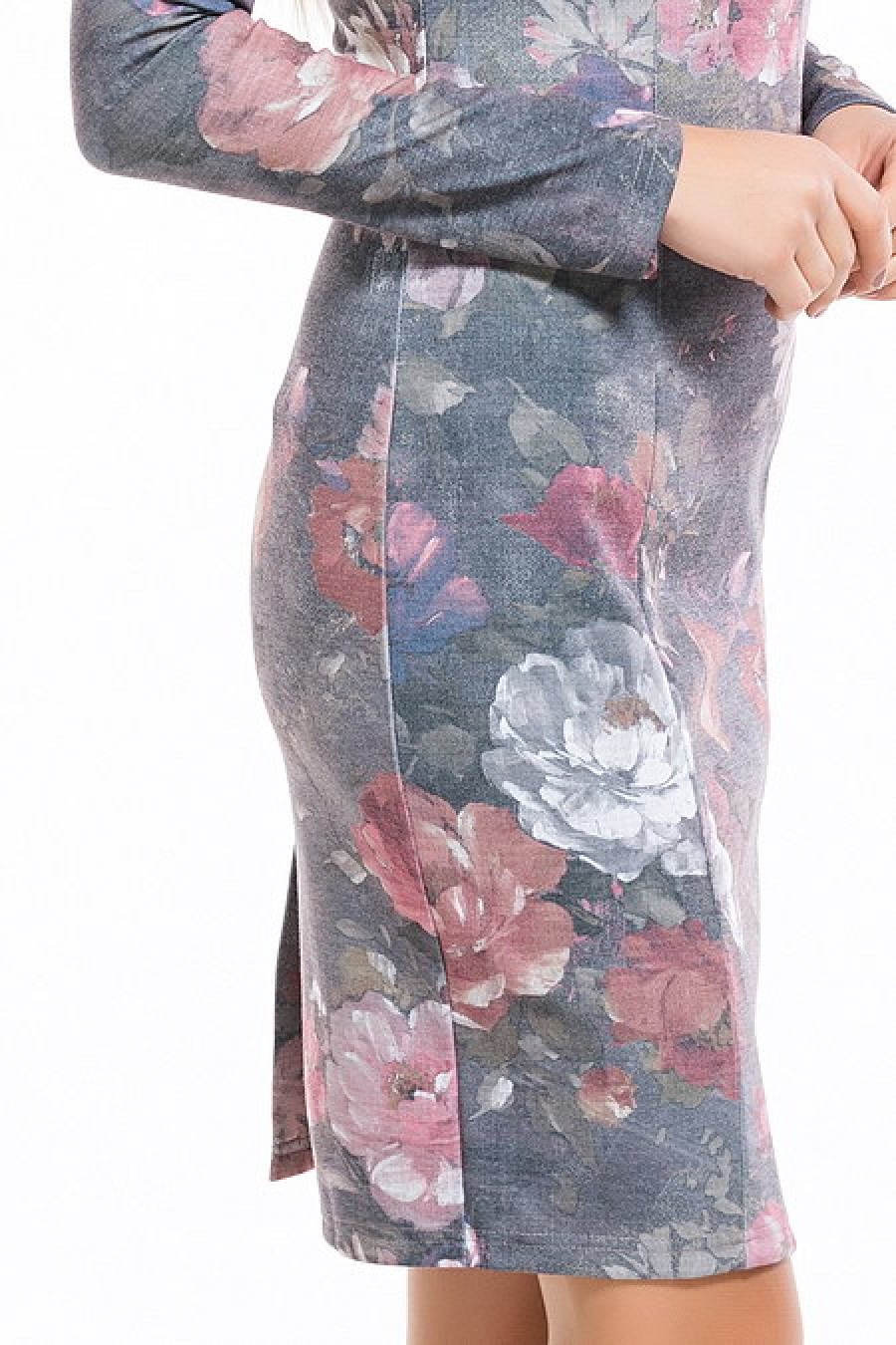 Элегантное уютное платье с цветочным принтом. Рукав длинный. Для идеальной посадки на платье есть вытачки в районе груди и талии. Сзади имеется игривый разрез.