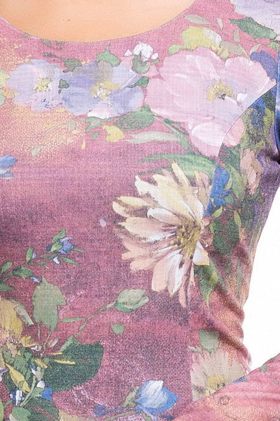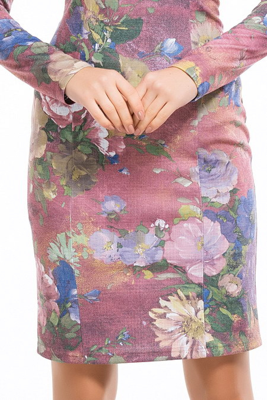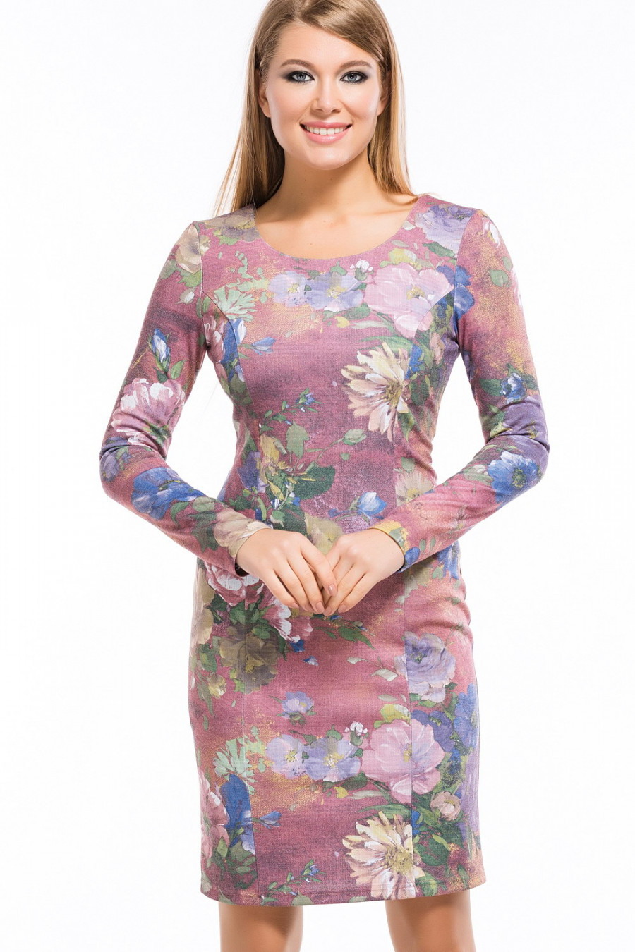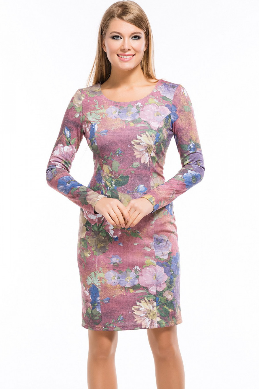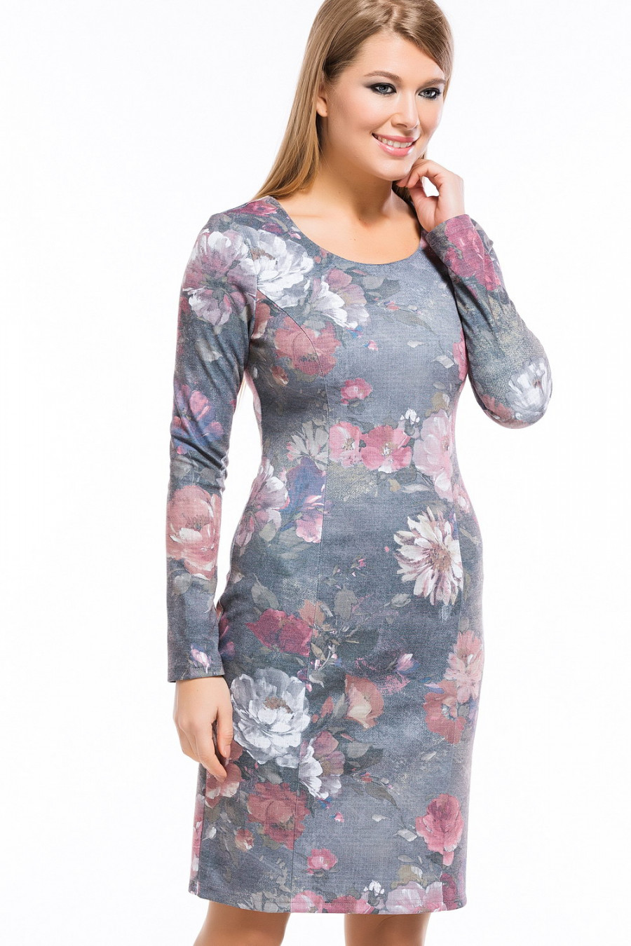 Элегантное уютное платье с цветочным принтом. Рукав длинный. Для идеальной посадки на платье есть вытачки в районе груди и талии. Сзади имеется игривый разрез.