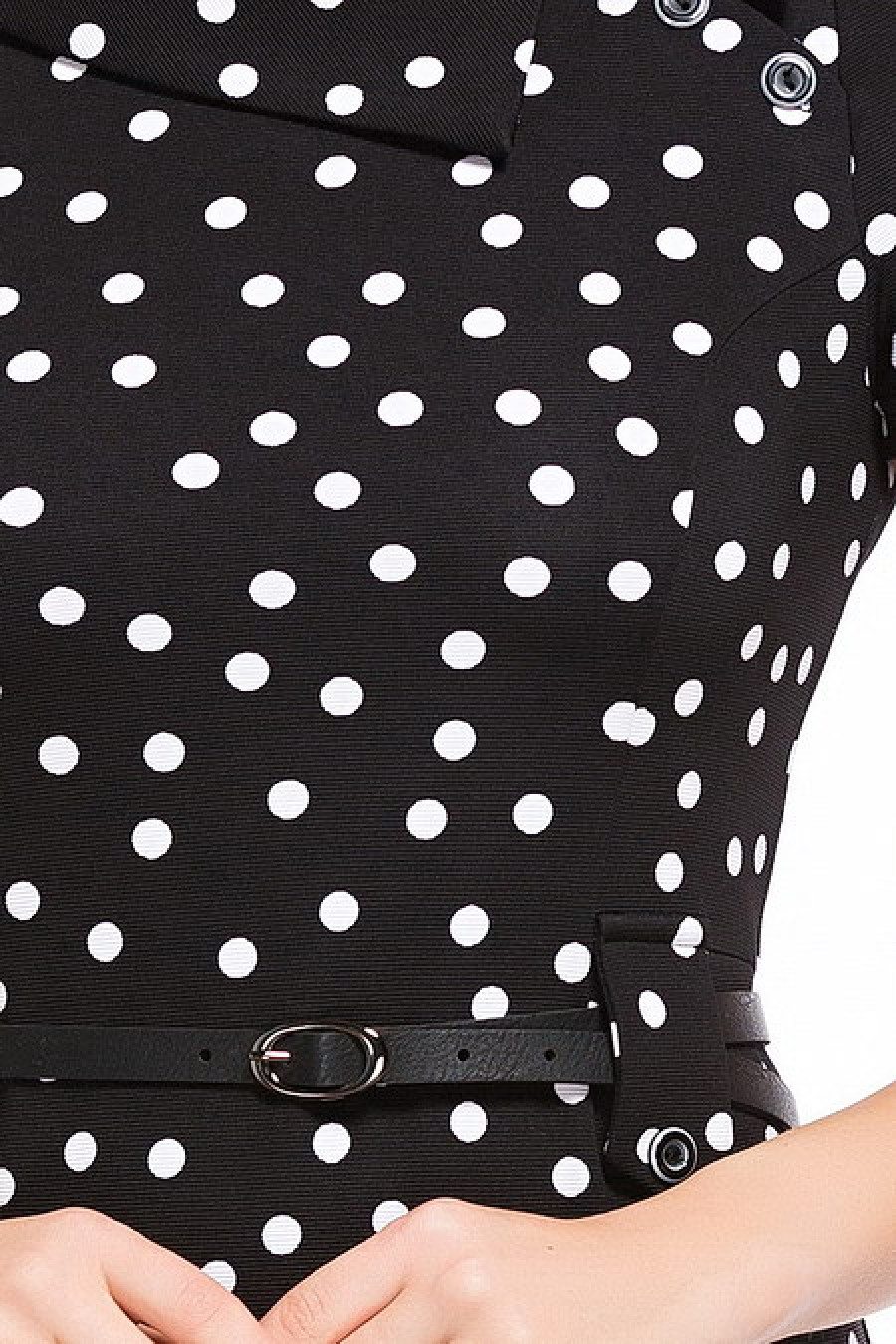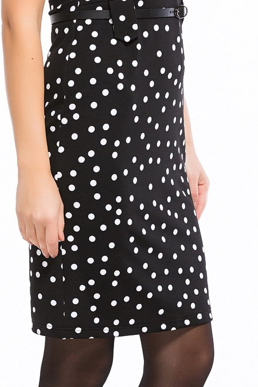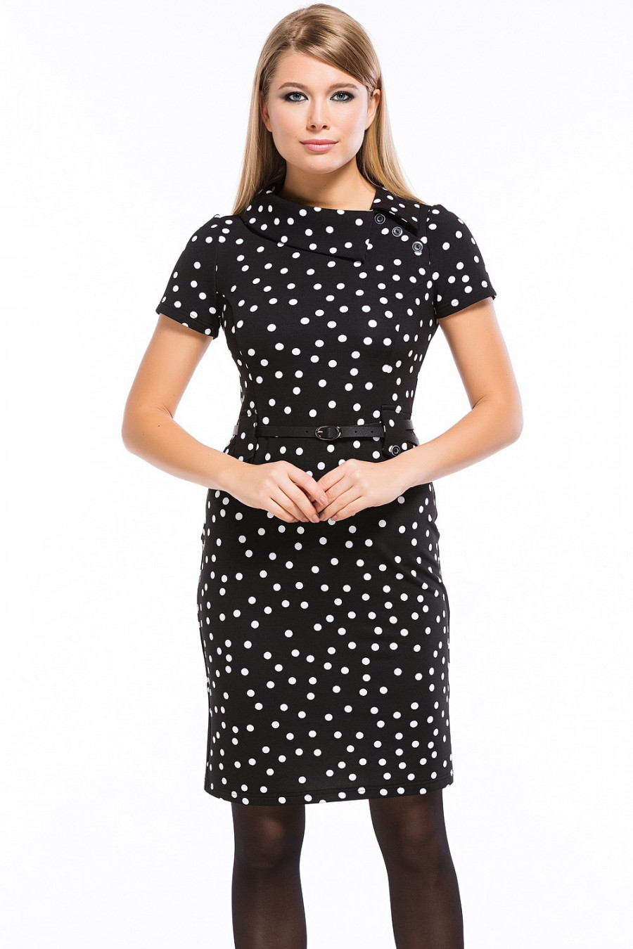 Стильное офисное платье, приталенное, с коротким рукавом. Тонкий ремень входит в комплект и подчеркивает талию.
