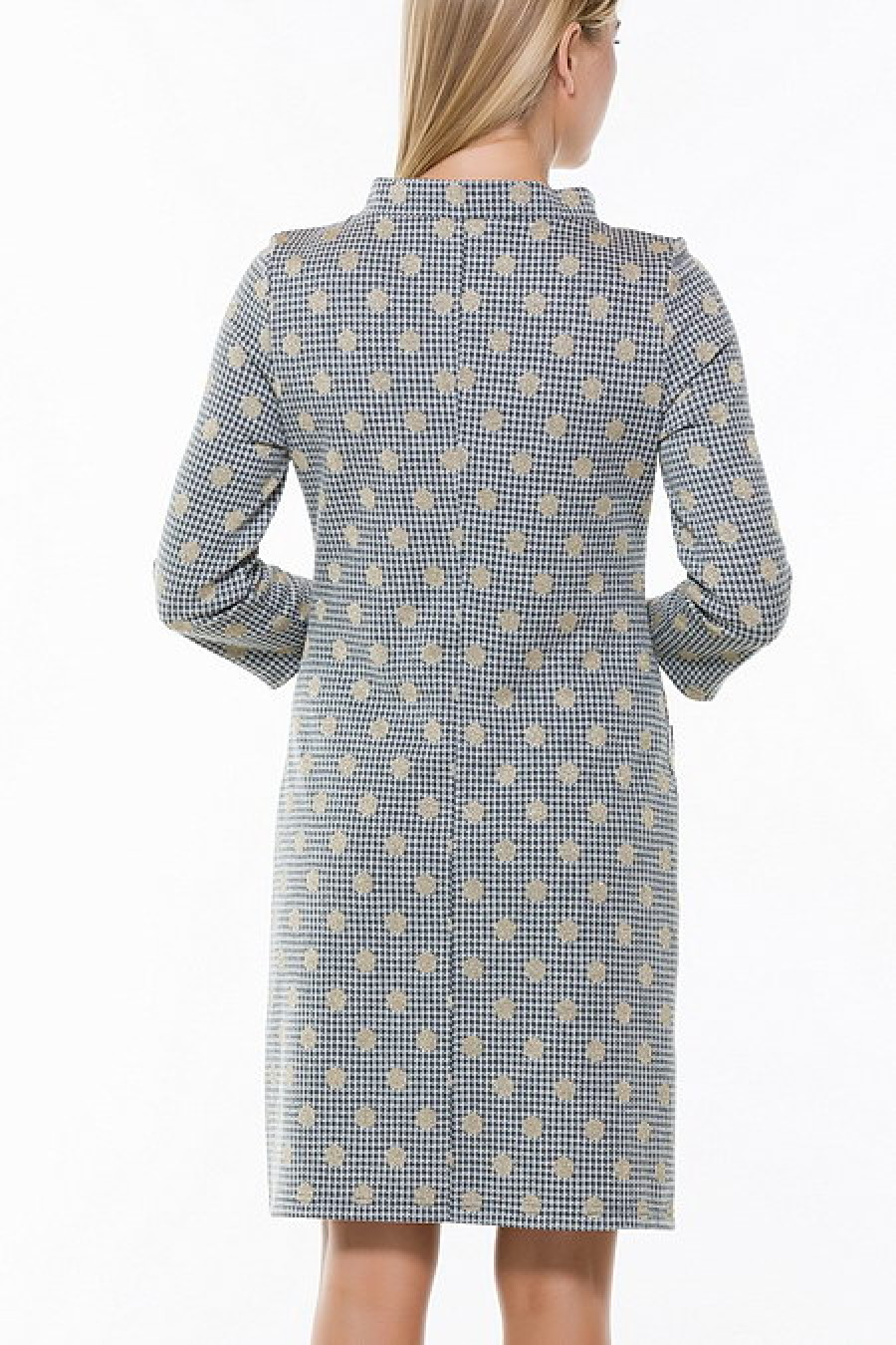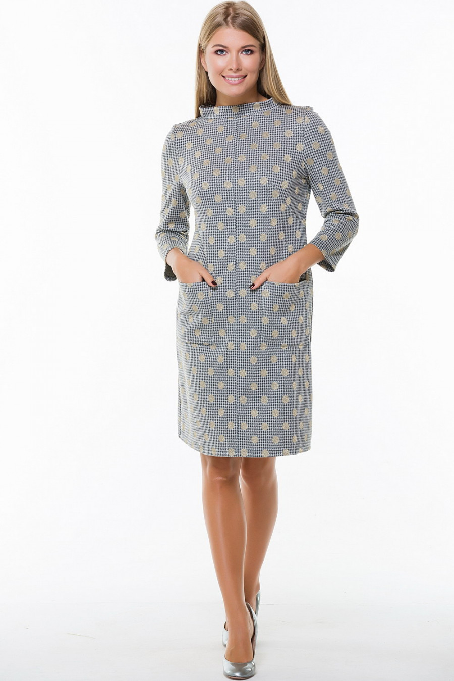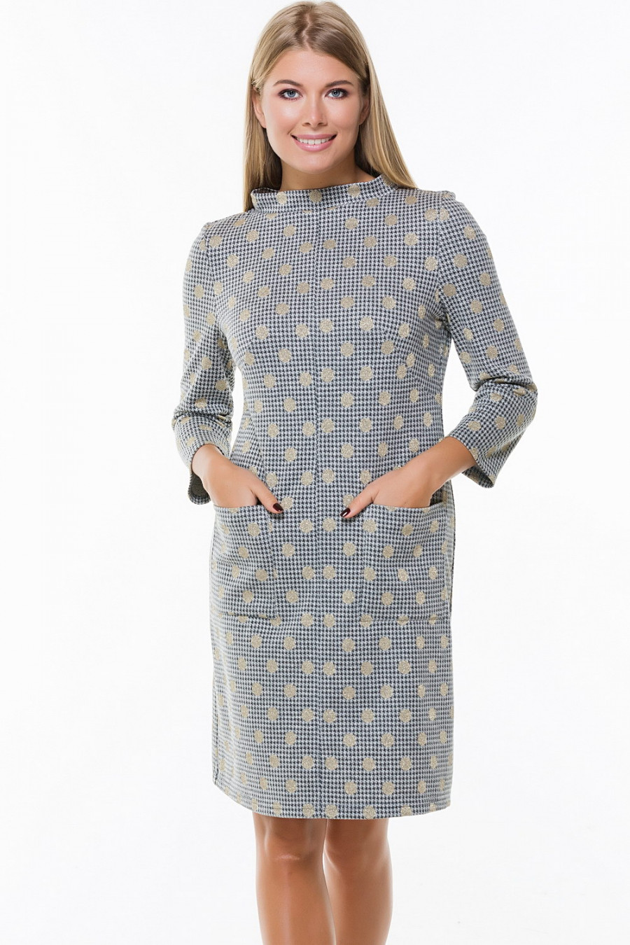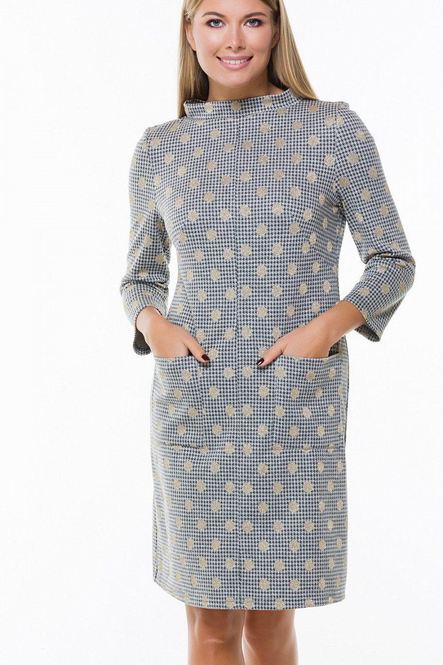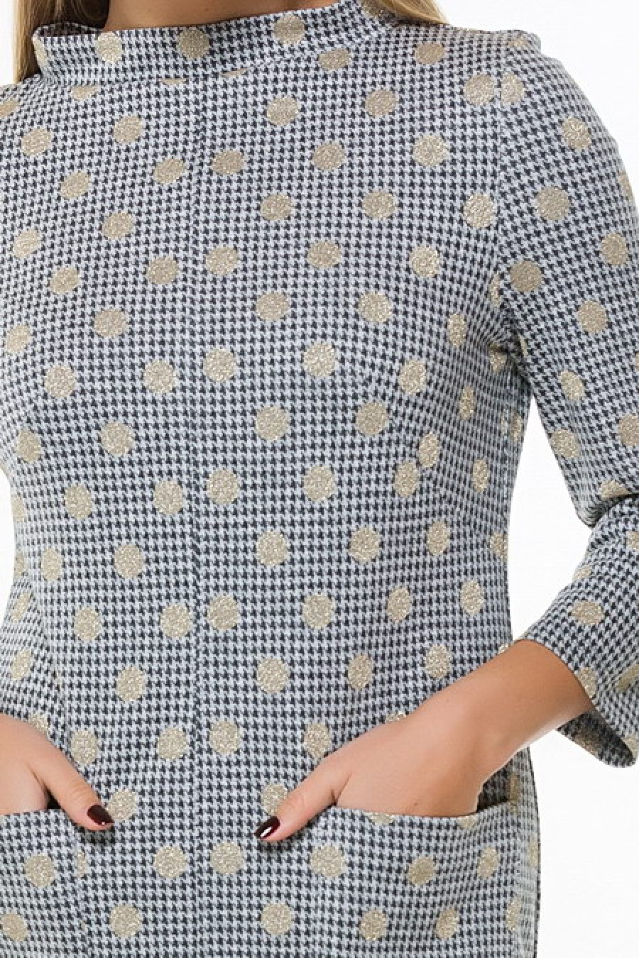 Платье с длинным рукавом и воротником-стойкой. Орнамент "гусиная лапка". Спереди функциональные карманы. Ткань тонкая, мягкая, приятная к телу.