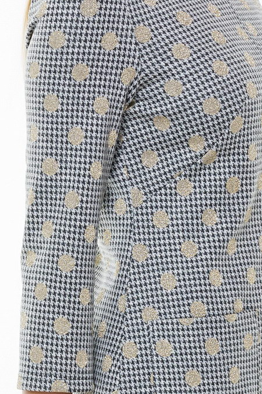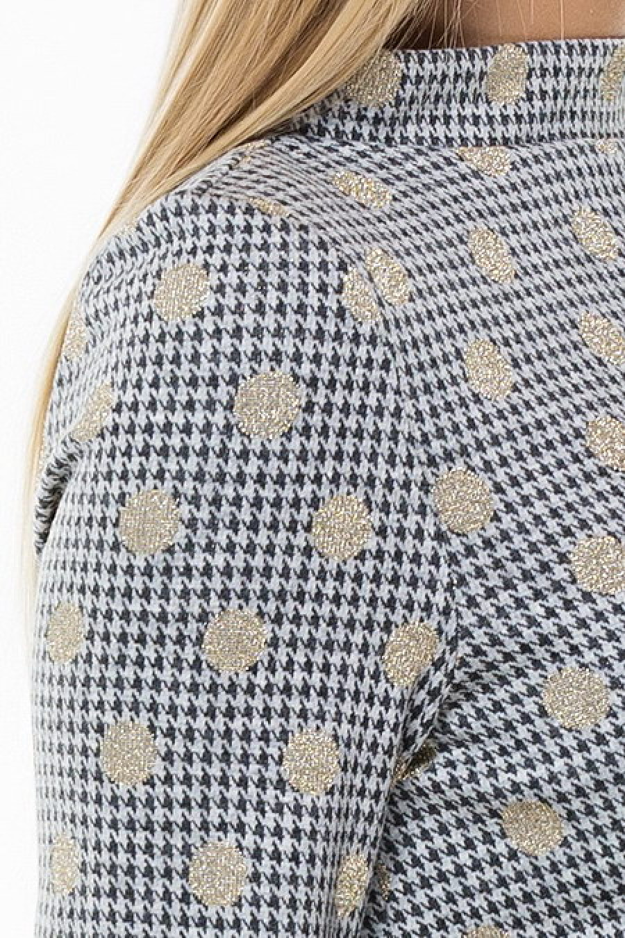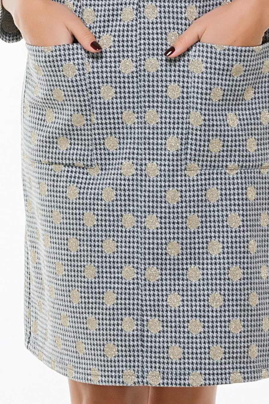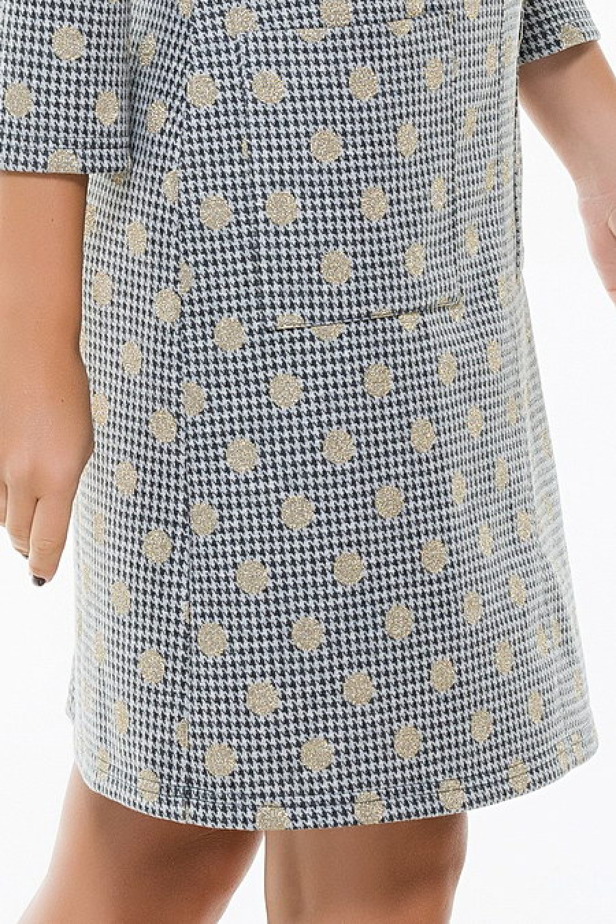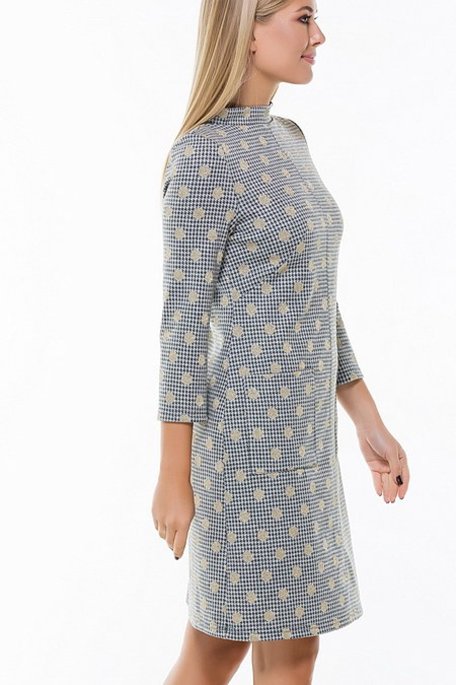 Платье с длинным рукавом и воротником-стойкой. Орнамент "гусиная лапка". Спереди функциональные карманы. Ткань тонкая, мягкая, приятная к телу.