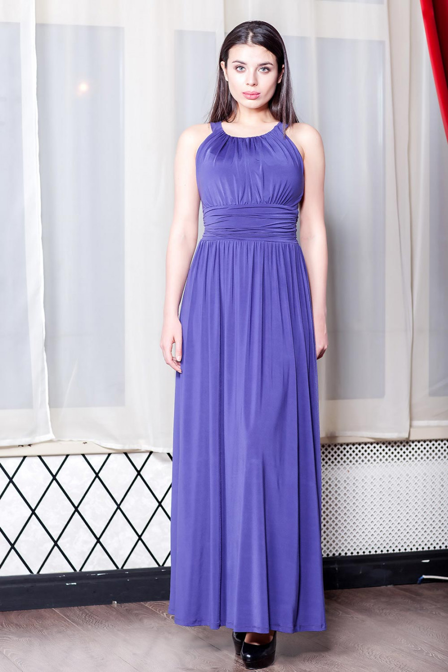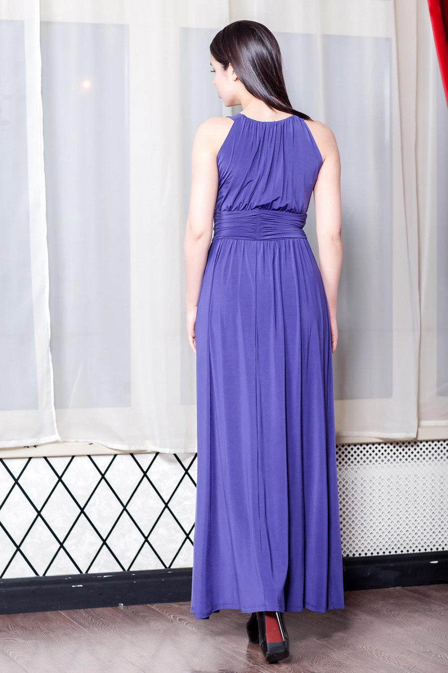 Эффектное платье без рукавов из струящегося трикотажа длиной в пол. Лиф и пояс украшены драпировкой. Изящная и нарядная модель для создания женственного образа.