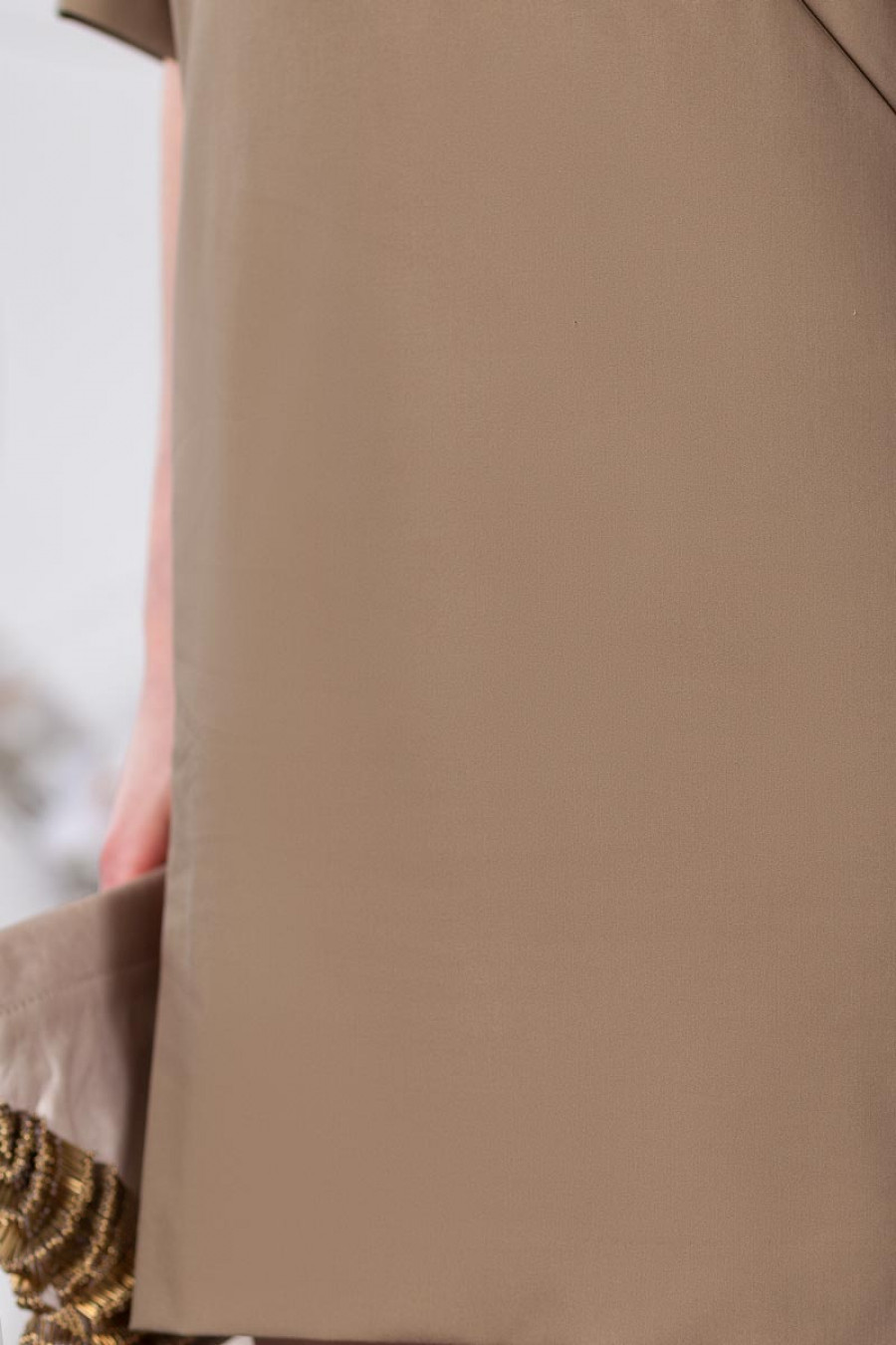 Элегантное платье прямого силуэта из однотонной ткани костюмной группы. Модель с округлым вырезом горловины и рукавом 3/4 со складками. Впереди выполнены карманы в швах от бока.Сзади застежка на пуговицы. Такое платье - визуально скроет недостатки вашей ...