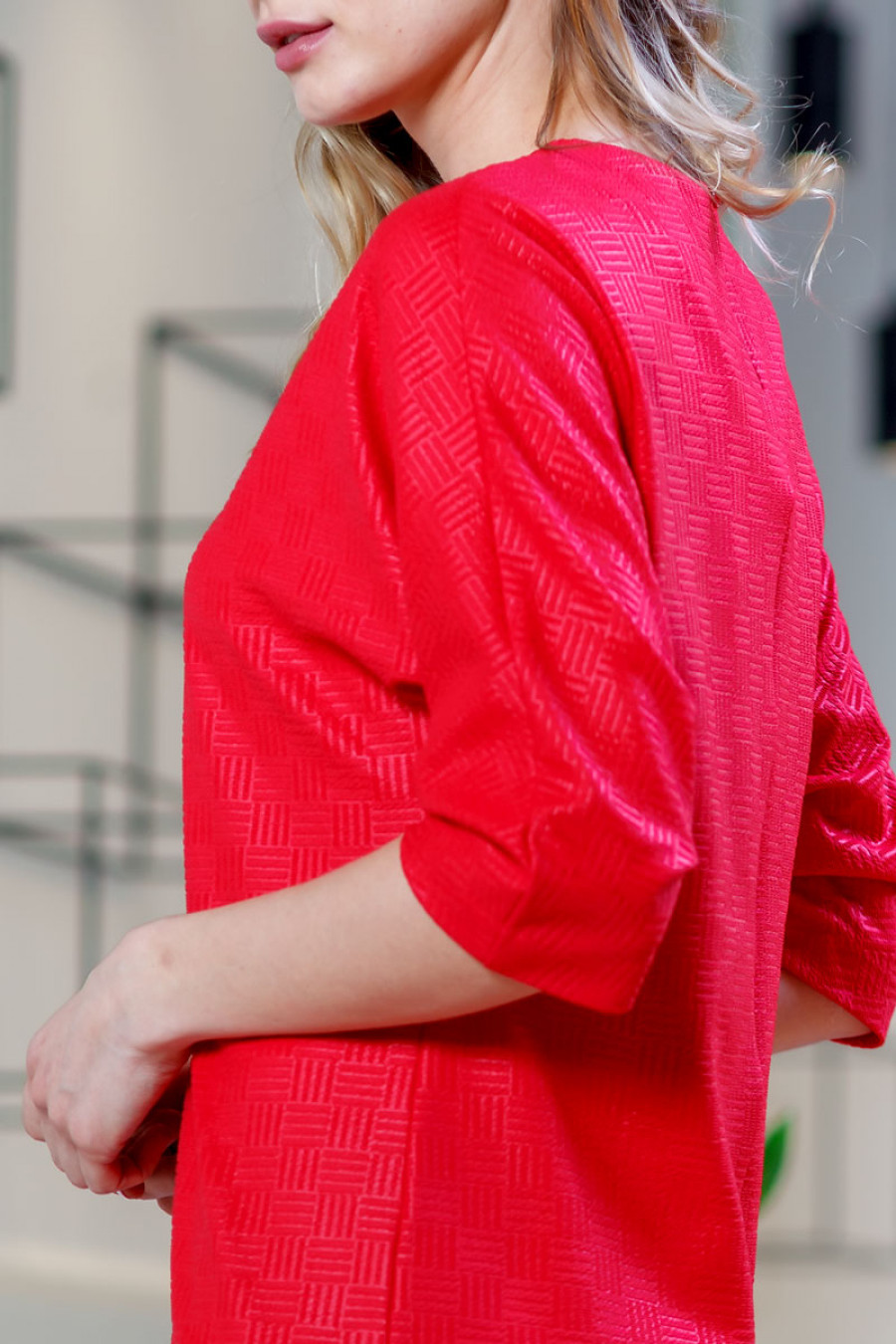 Элегантное и стильное платье из однотонного структурного трикотажа. Модель прямого силуэта длиной до колена. Рукав цельнокроенный 3/4 со складками по нижнему шву. Сзади застежка на пуговицу. Прекрасный вариант на каждый день или для прогулок с друзьями.