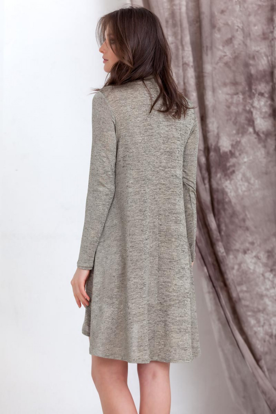 Стильное платье силуэта клеш отлично подойдет для торжественных мероприятий и других особых случаев. Платье выполнено из тонкого струящегося трикотажас умеренным блеском люрекса. Горловина оформлена небольшой стойкой. Платье отлично дополнит Ваш гардероб!