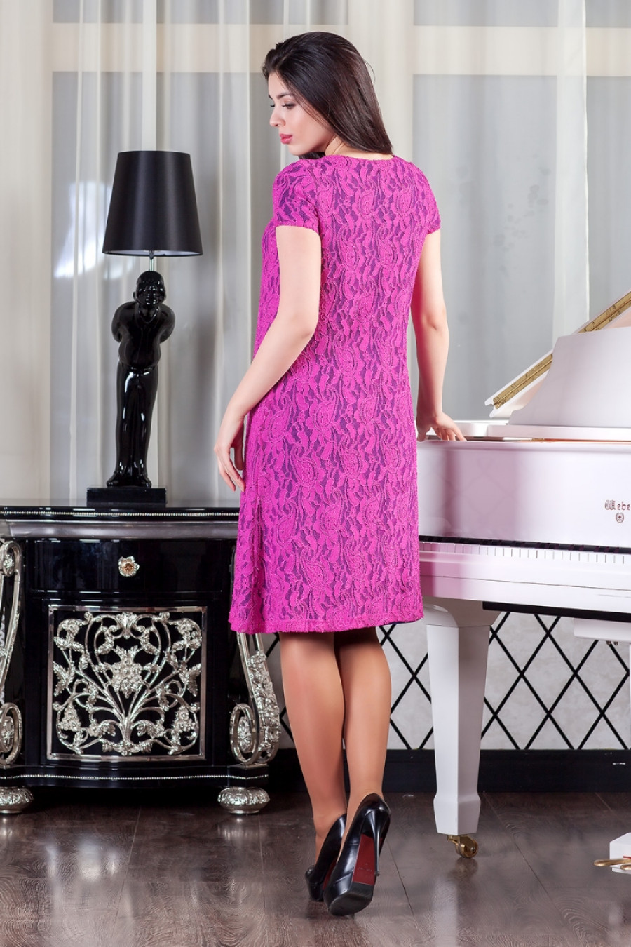 Элегантное платье клеш из гипюра на подкладке из тонкого трикотажа. Длина до колена. Короткий рукав.